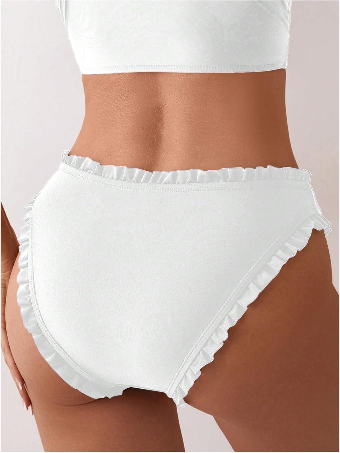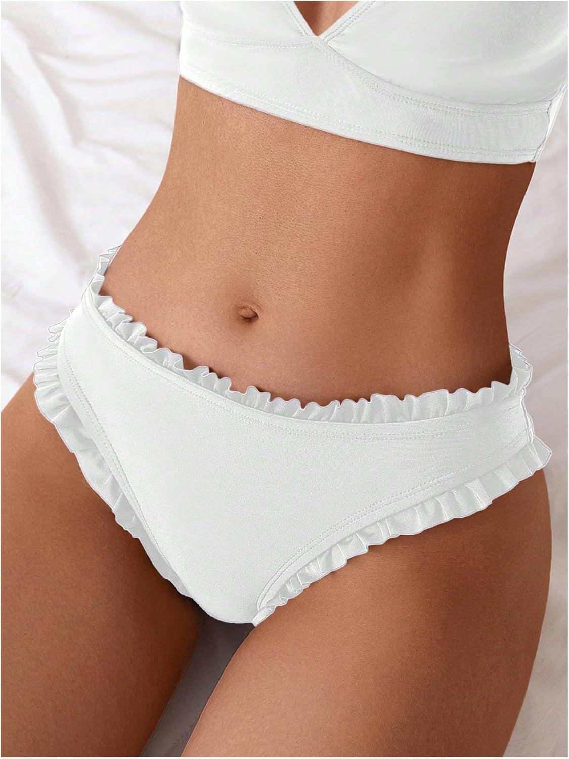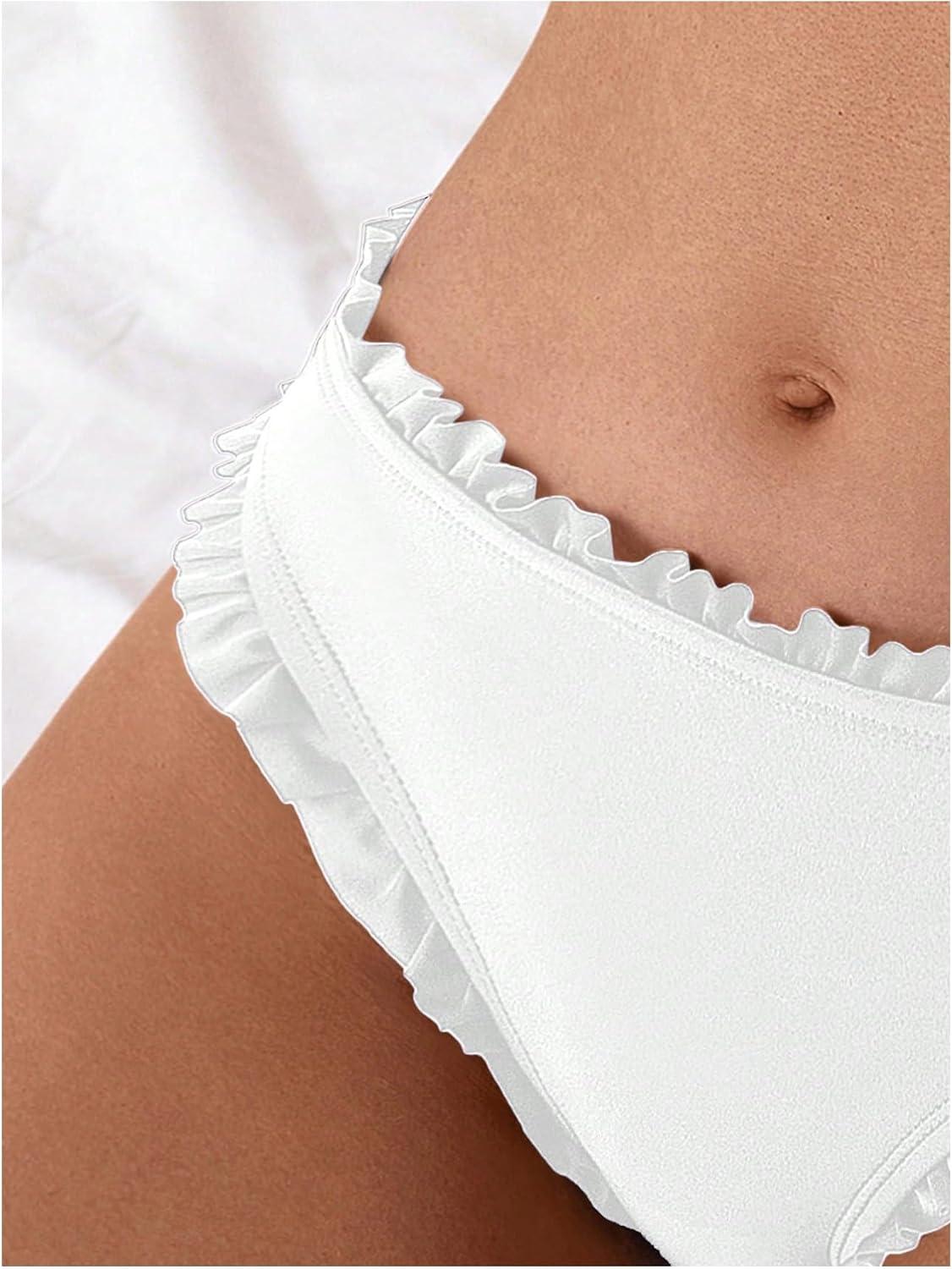 SOLY HUX Bikini Bottoms for Women Frill Trim Swimsuit Bottom Summer Beach Swim Briefs(Plain White)