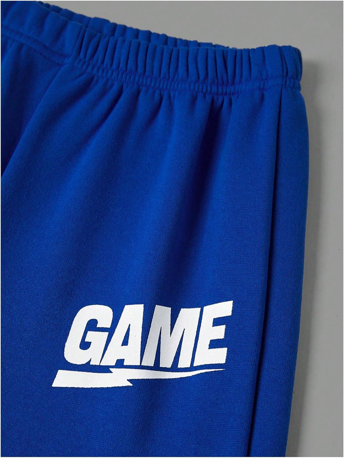 SOLY HUX Boy’s 2 Piece Sweatsuit Outfits Letter Graphic Hooides Sweatshirt and Jogger Sweatpants Set(Blue and White)