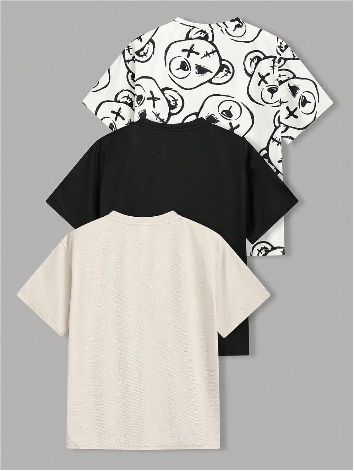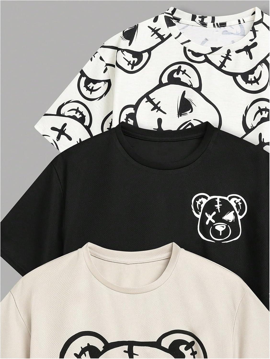 SOLY HUX Boy’s 3 Piece T Shirt Cartoon Print Graphic Tees Short Sleeve Summer Tops(Multicoloured Bear)