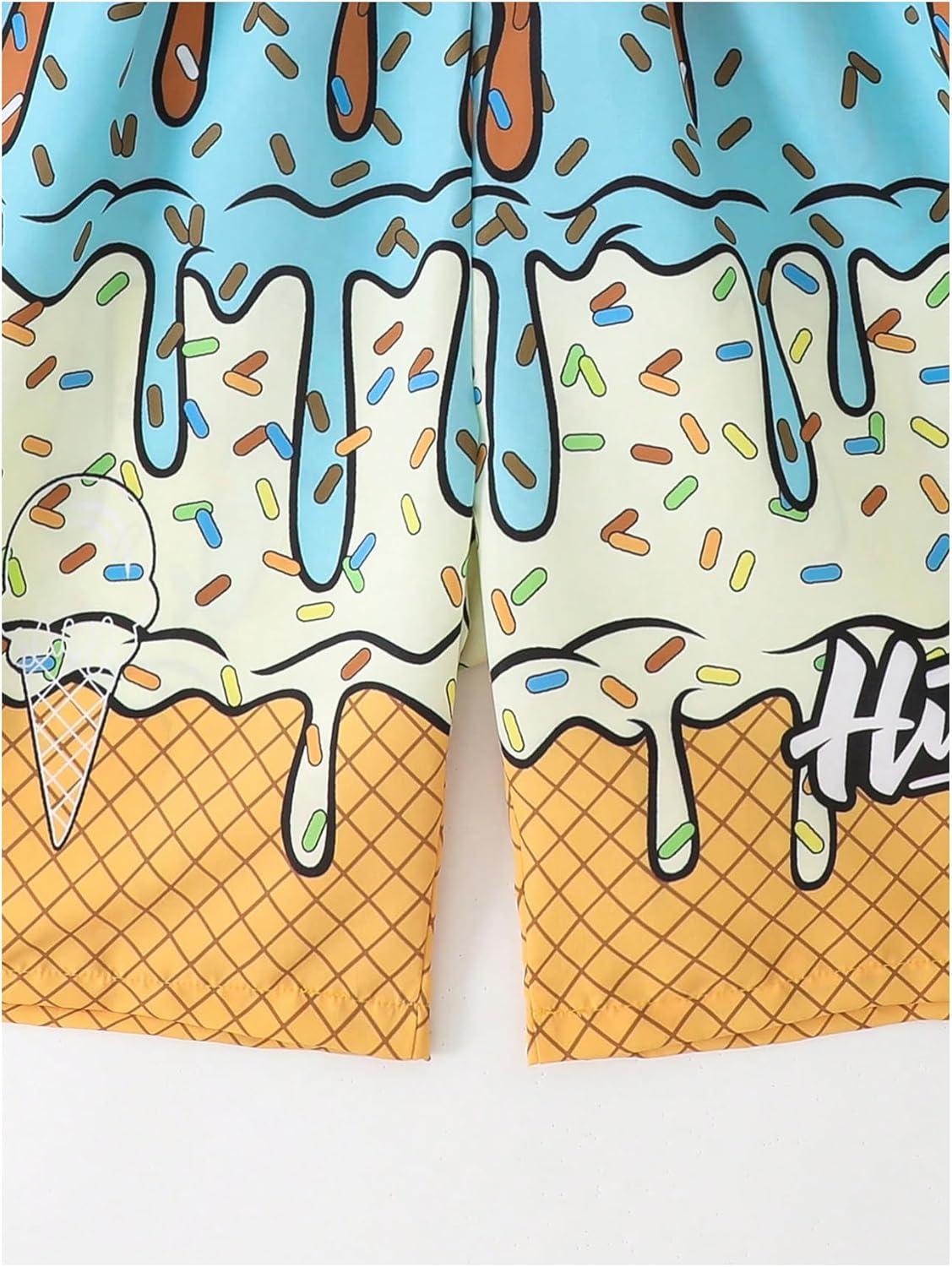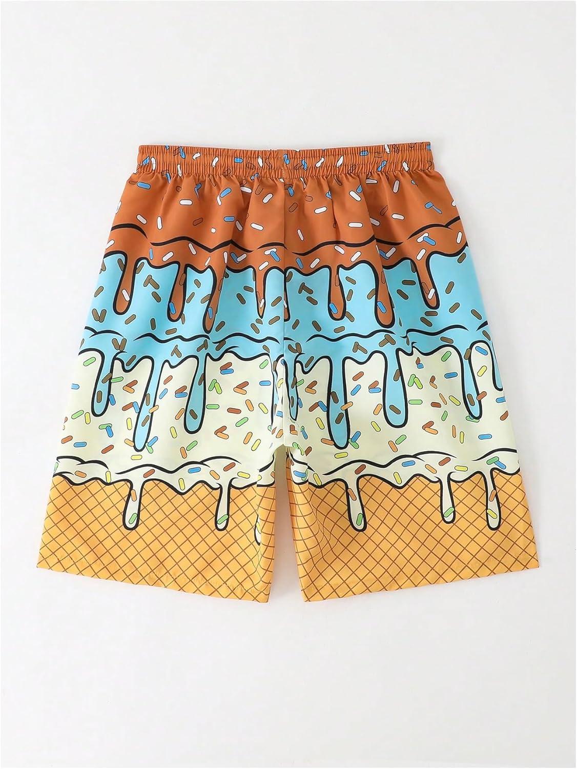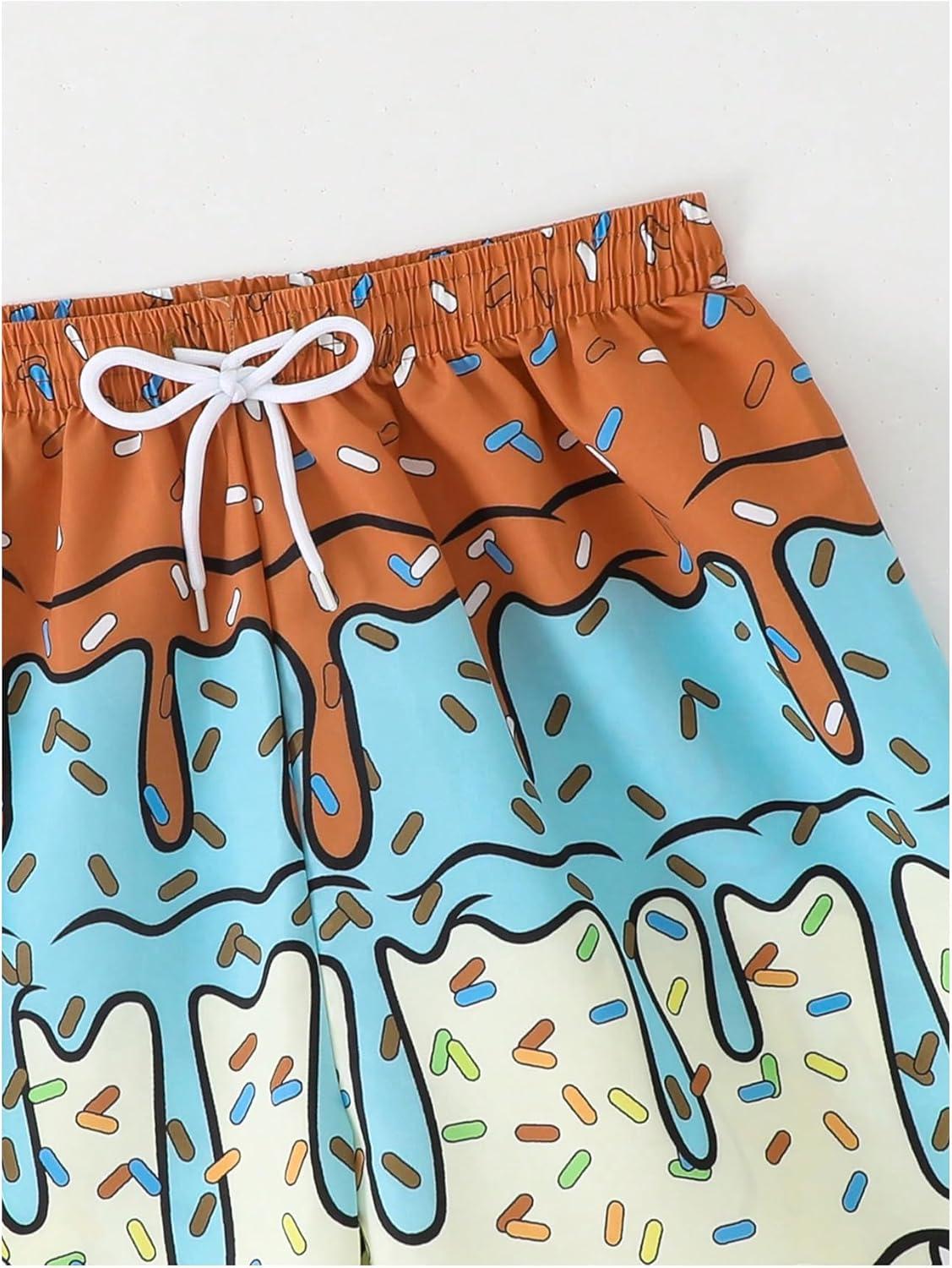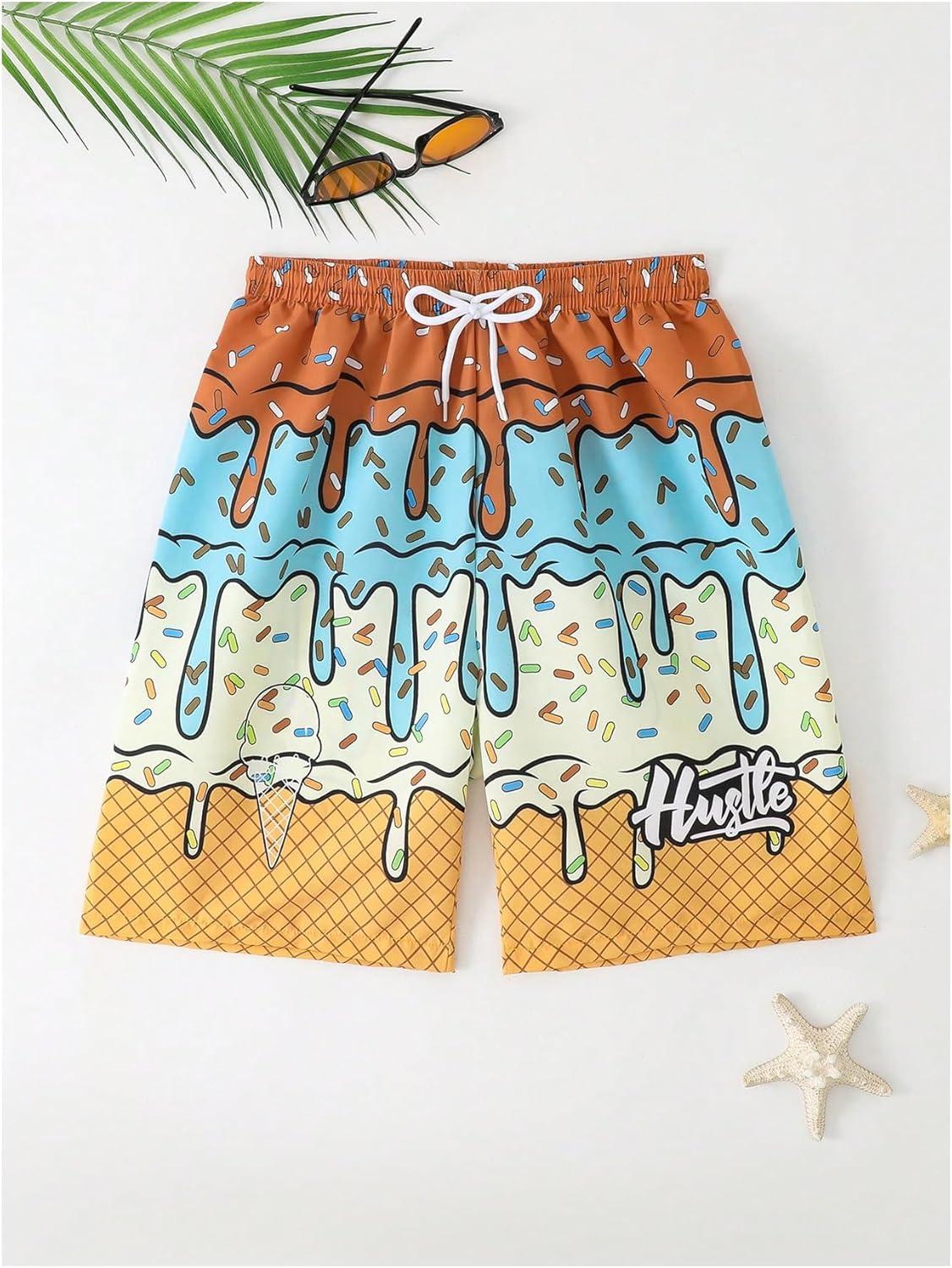 SOLY HUX Boy’s Beach Shorts Drawstring Waist Graphic Print Swim Trunks Summer Beachwear(Brown Graphic)