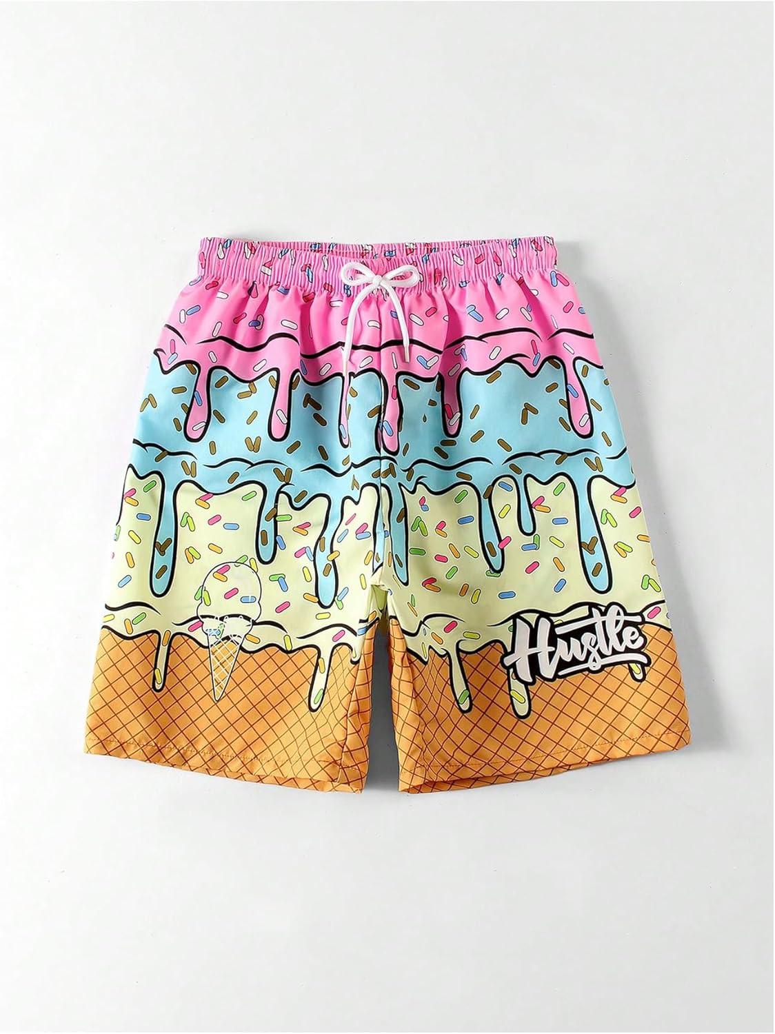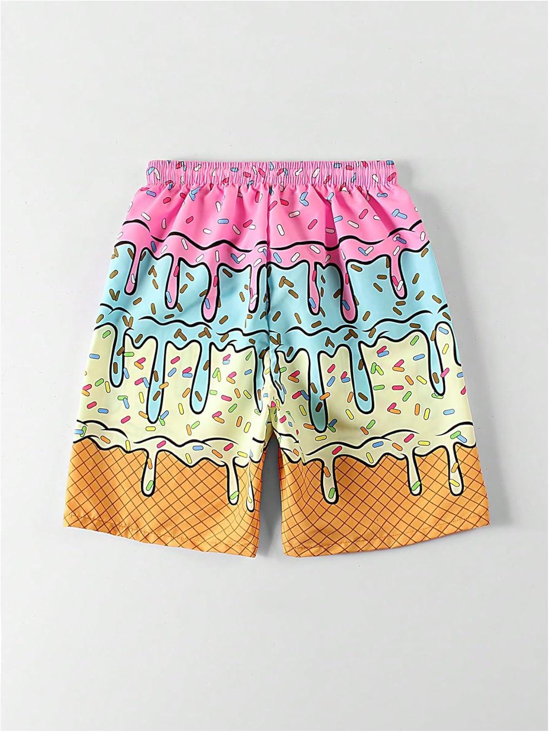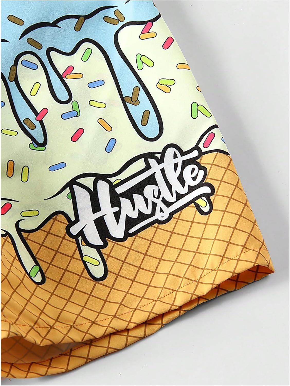 SOLY HUX Boy’s Beach Shorts Drawstring Waist Graphic Print Swim Trunks Summer Beachwear(Multi Printed)