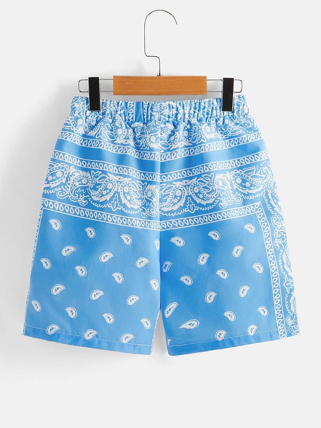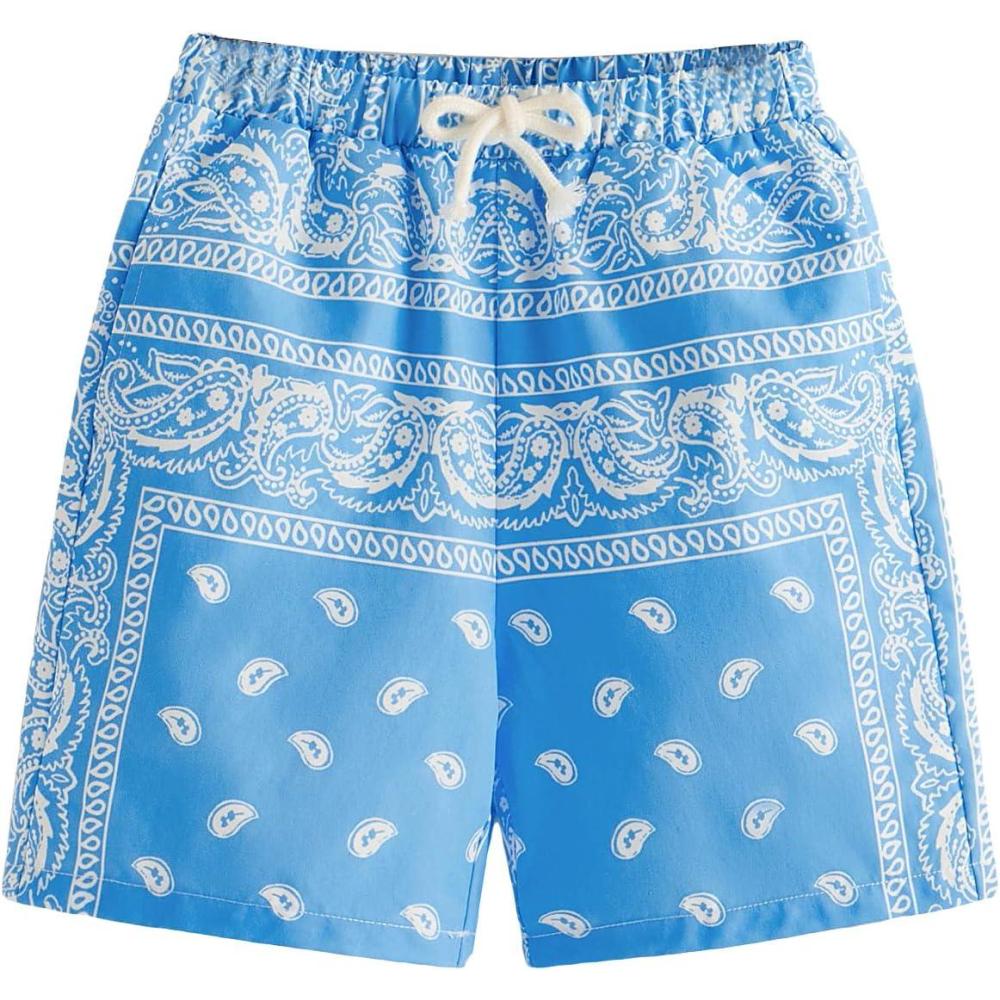 SOLY HUX Boys Boho Paisley Print Short Sleeve T Shirt and Shorts Set 2 Piece Outfits(Blue and White)