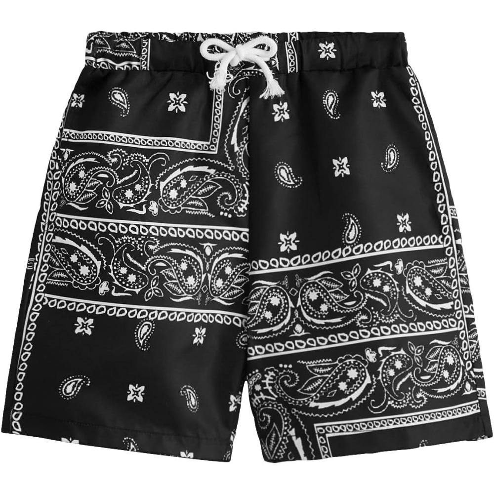 SOLY HUX Boys Boho Paisley Print Short Sleeve T Shirt and Shorts Set 2 Piece Outfits(Paisley Print Black and White)