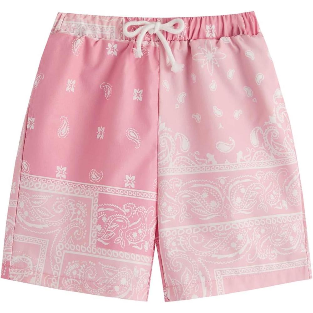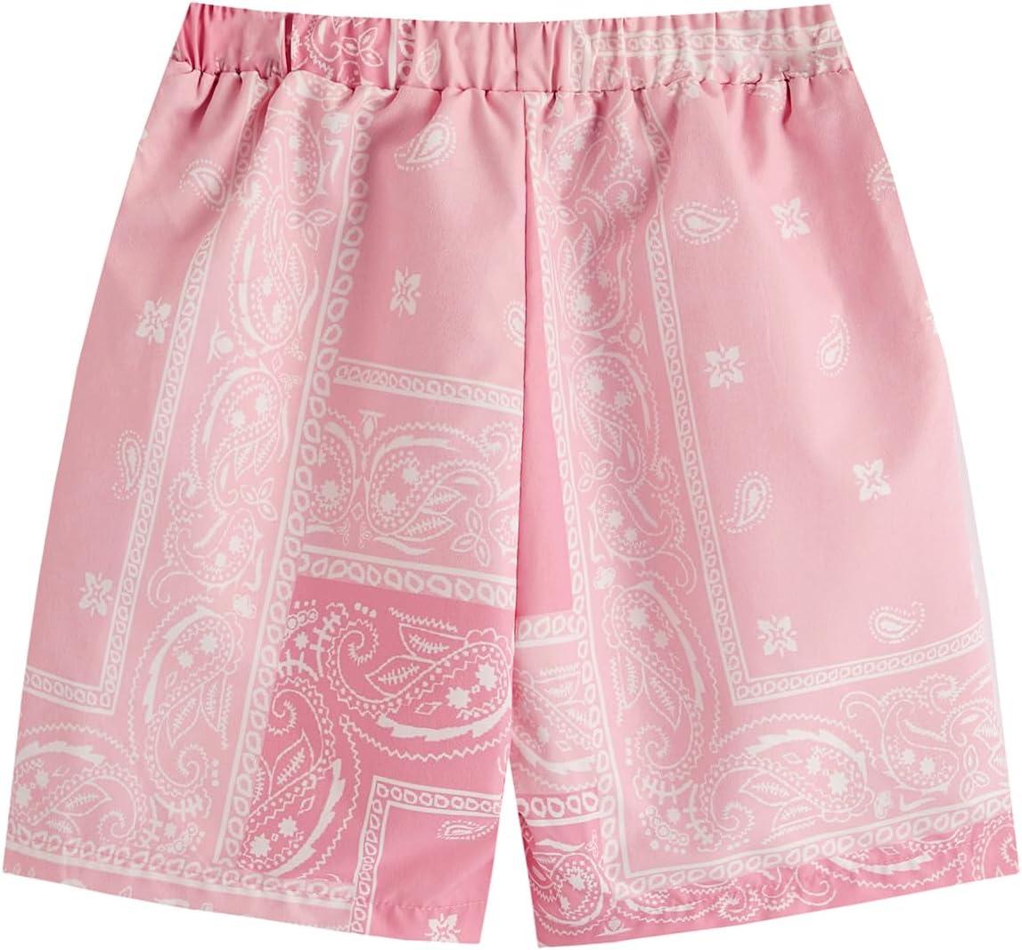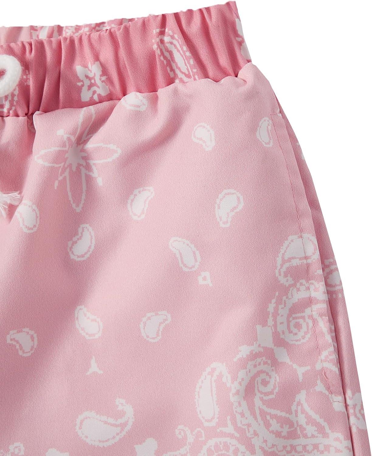 SOLY HUX Boys Boho Paisley Print Short Sleeve T Shirt and Shorts Set 2 Piece Outfits(Pink Paisley)