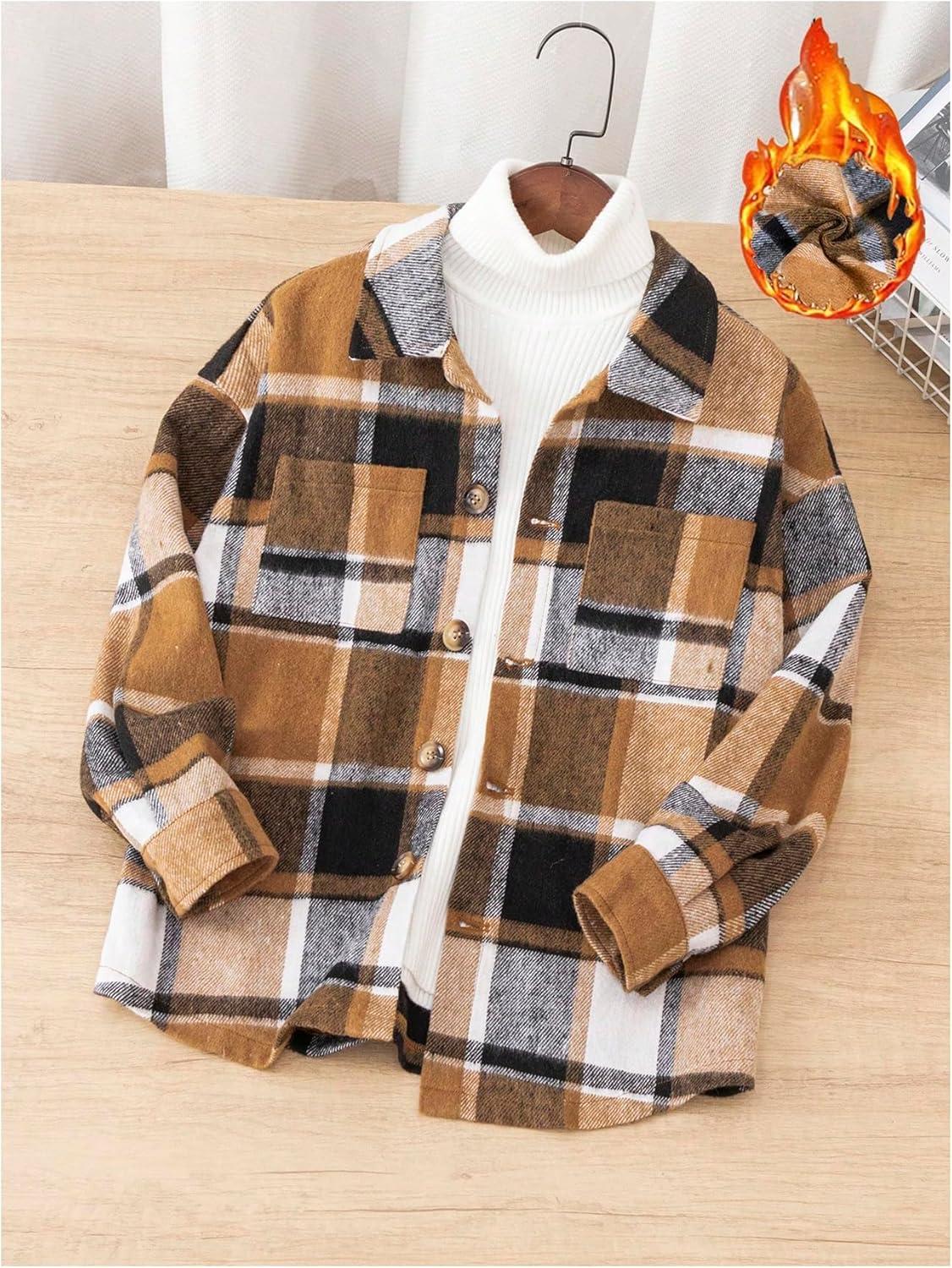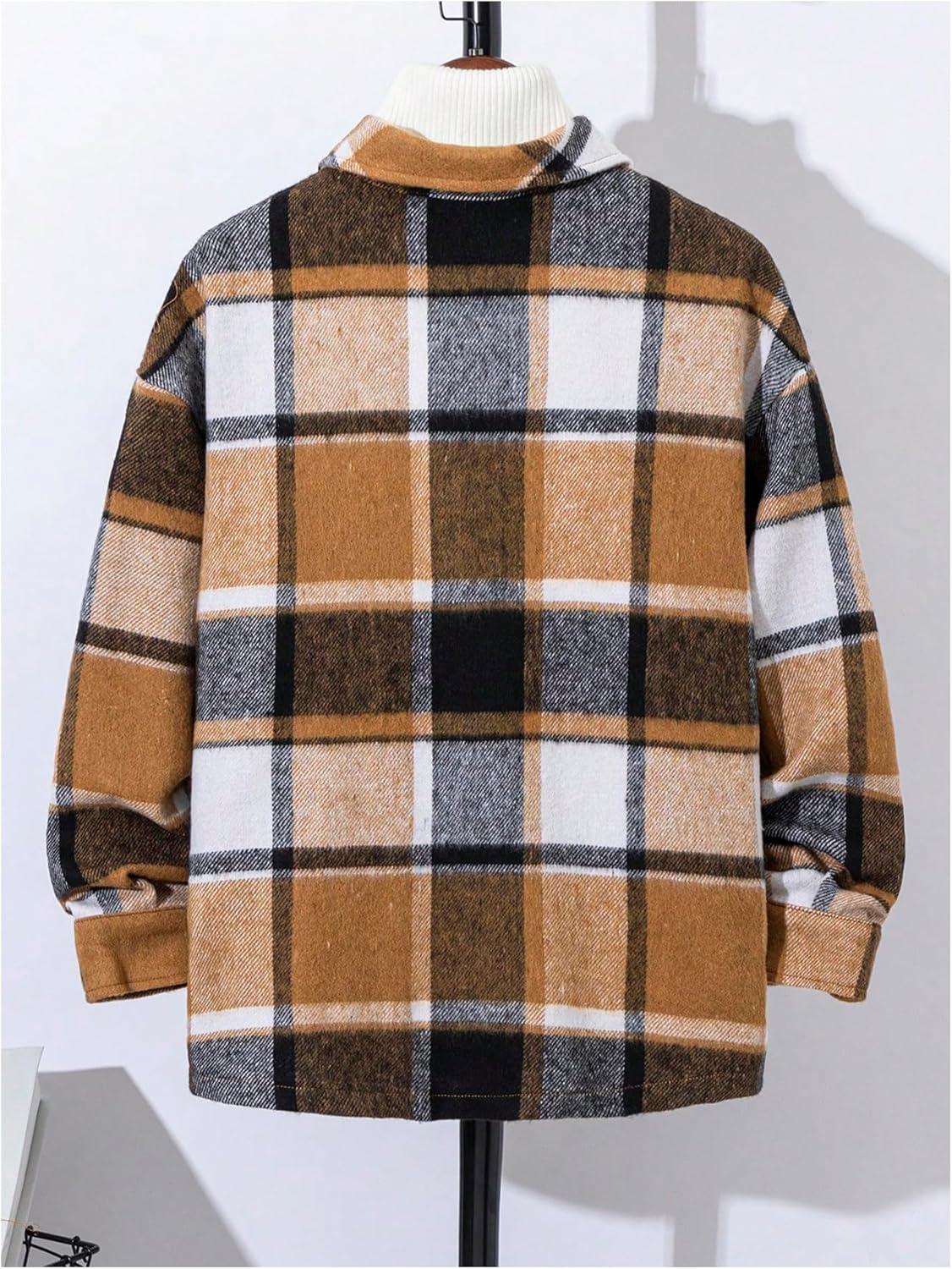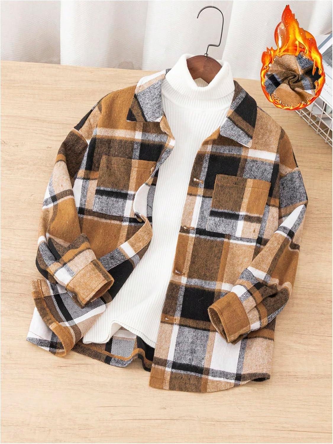 SOLY HUX Boy’s Plaid Jacket Button Down Collar Long Sleeve Shacket Fall Jacket Outerwear with Pockets(Multicoloured Plaid)