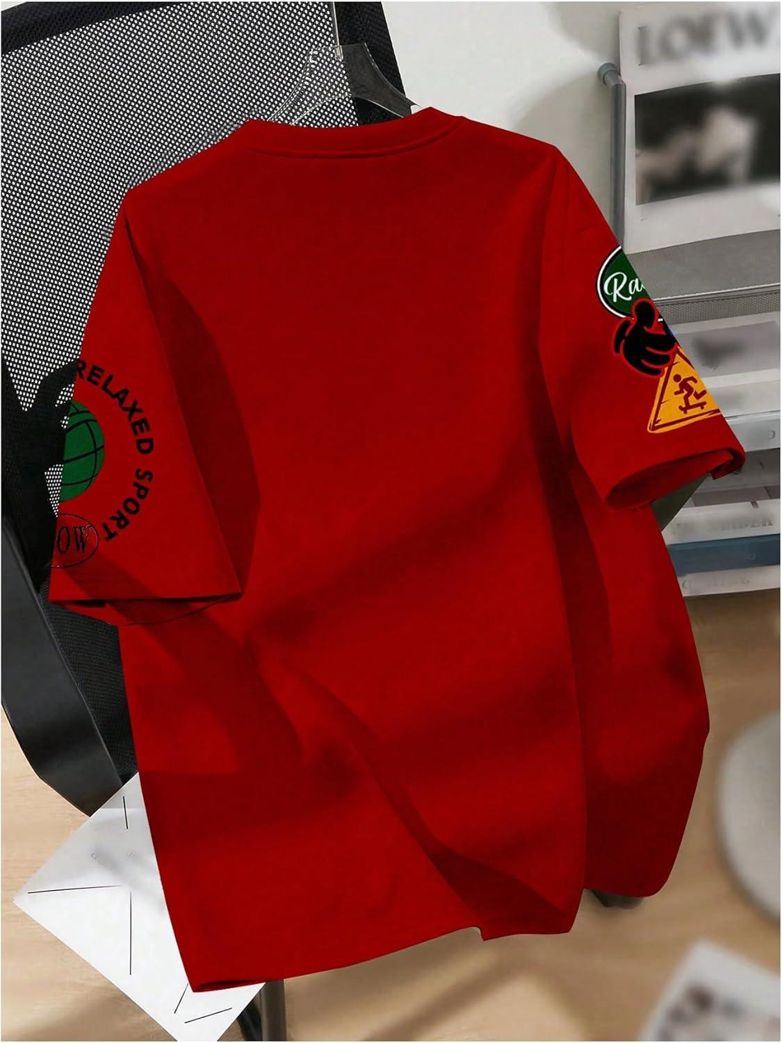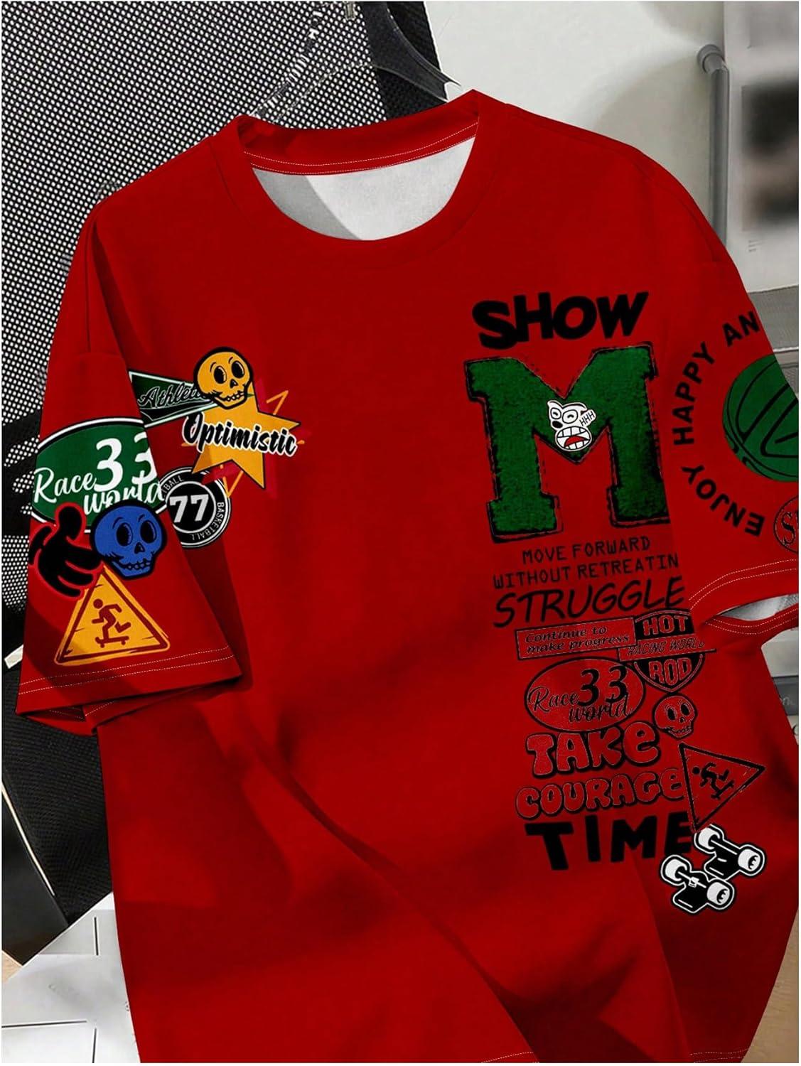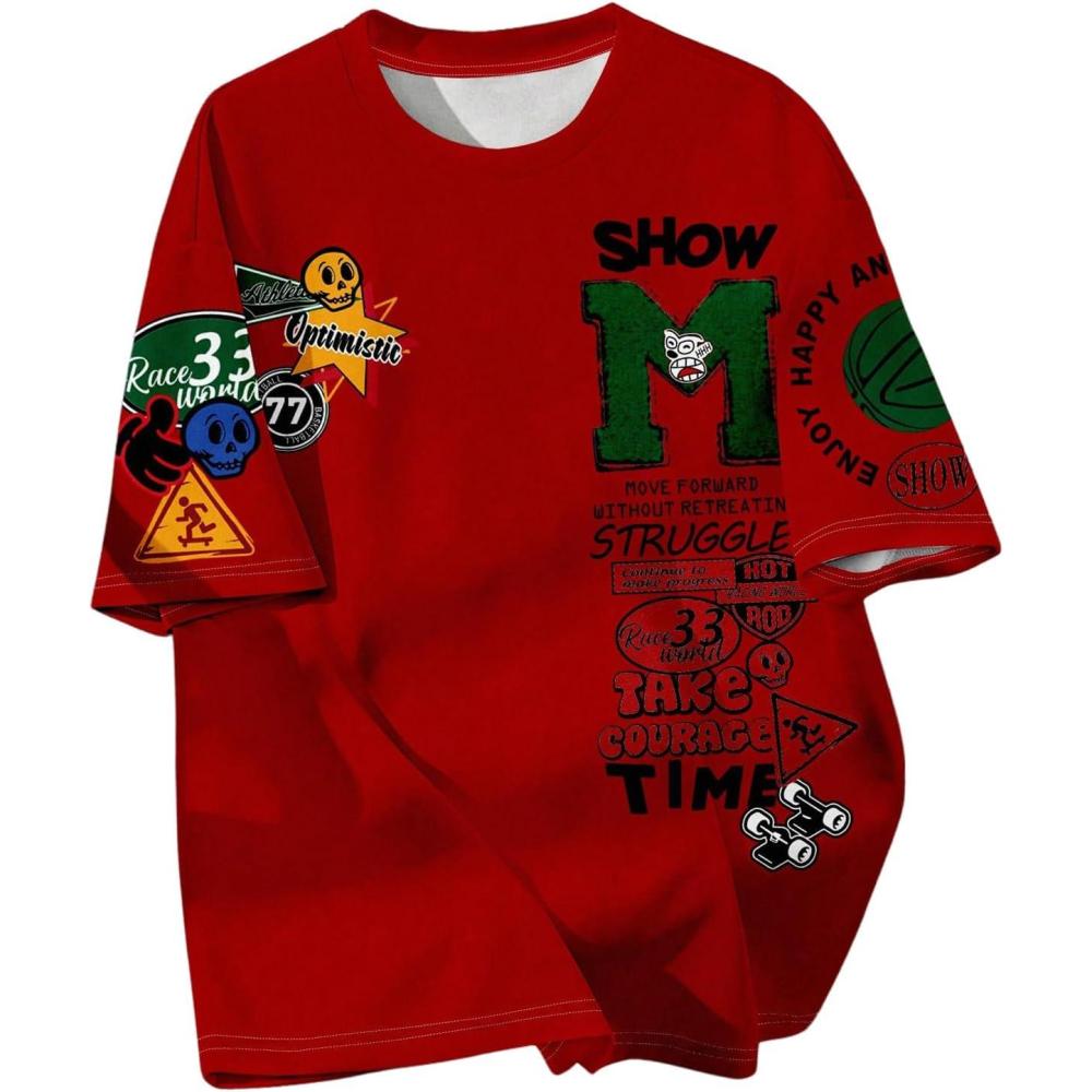 SOLY HUX Boy’s Summer Tops Letter Graphic Short Sleeve Shirts Crew Neck Loose Tee Shirt(Red Graphic)