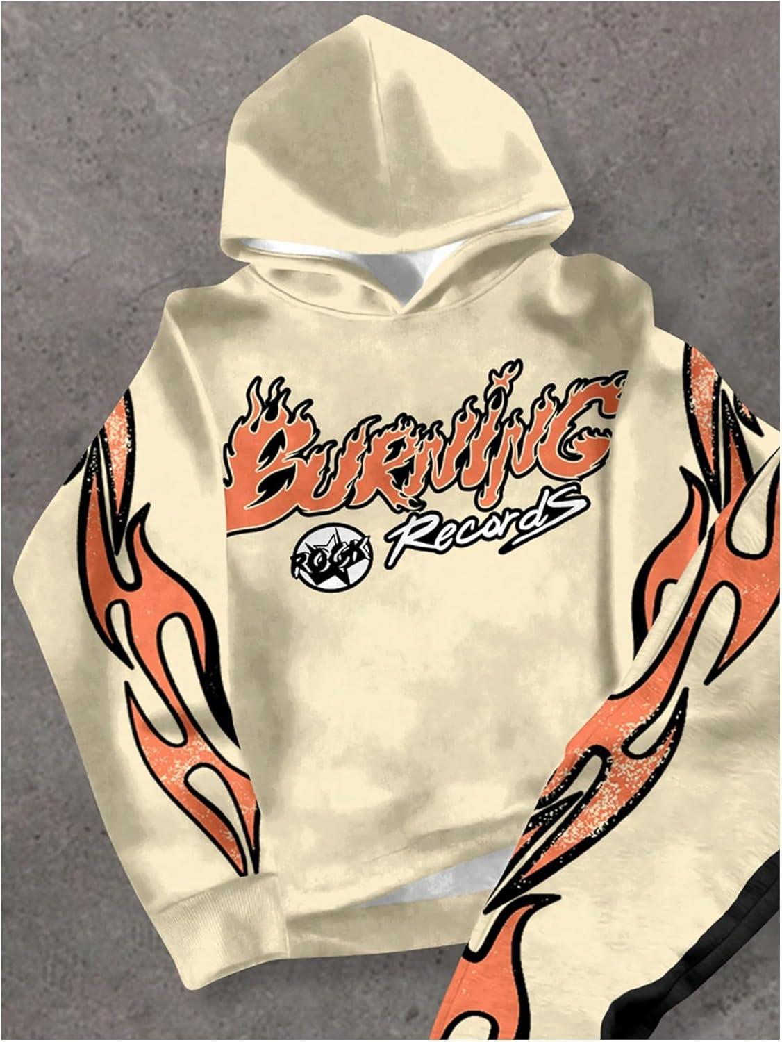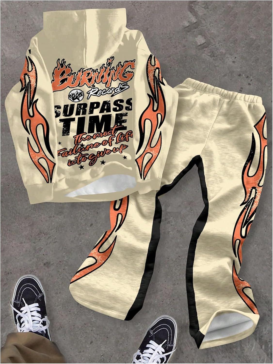 SOLY HUX Boy’s Sweatsuits Graphic Hoodies and Flared Pants Two Piece Outfits Street Clothing Set(Beige Graphic)