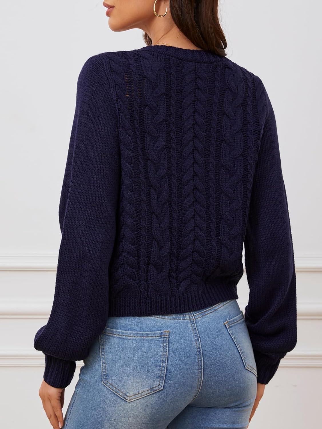 SOLY HUX Cardigan Sweaters for Women Cropped Tie Front Bow Lightweight Cardigan Long Sleeve Trendy Fall Shrugs(Dark Blue)