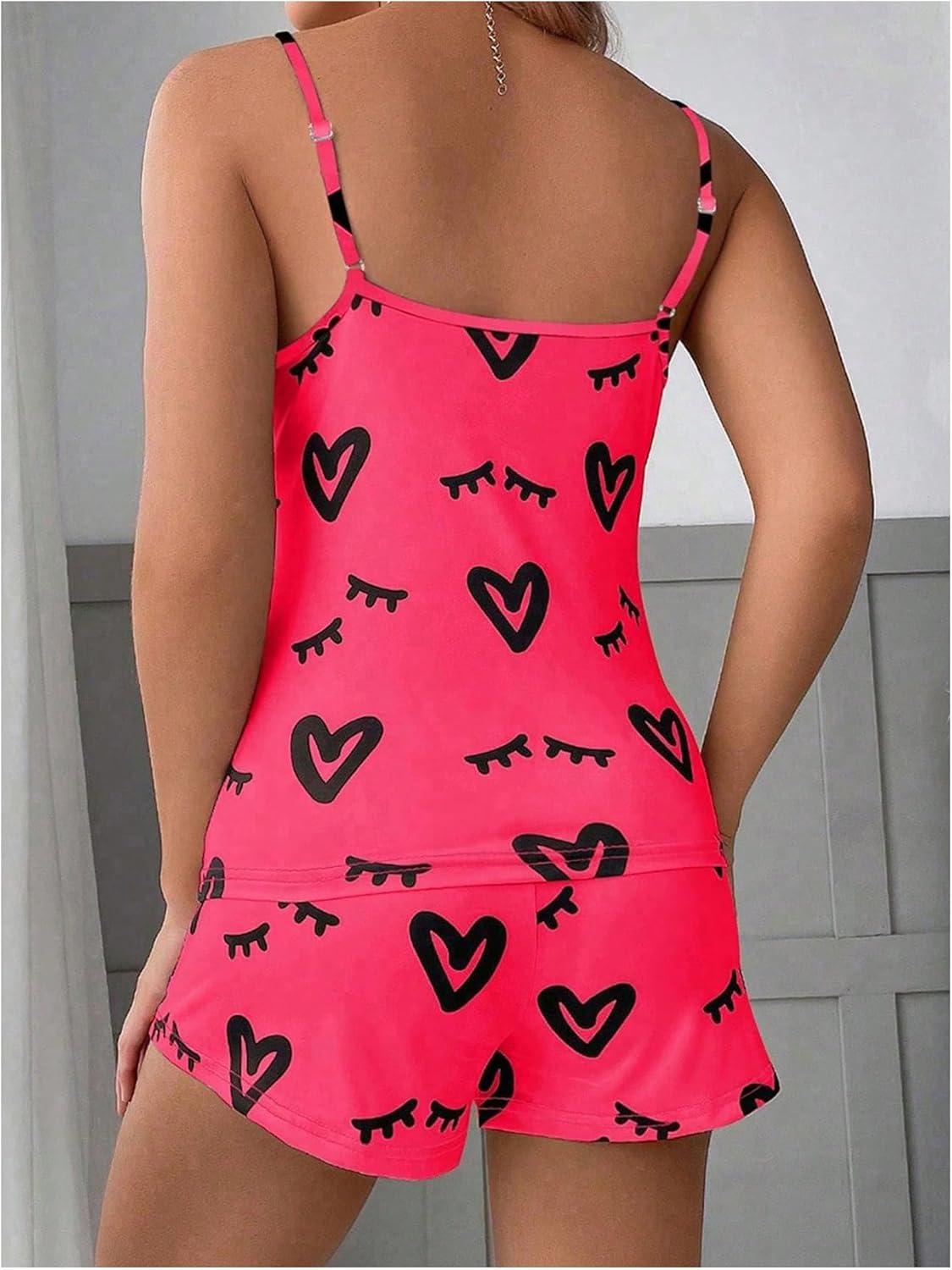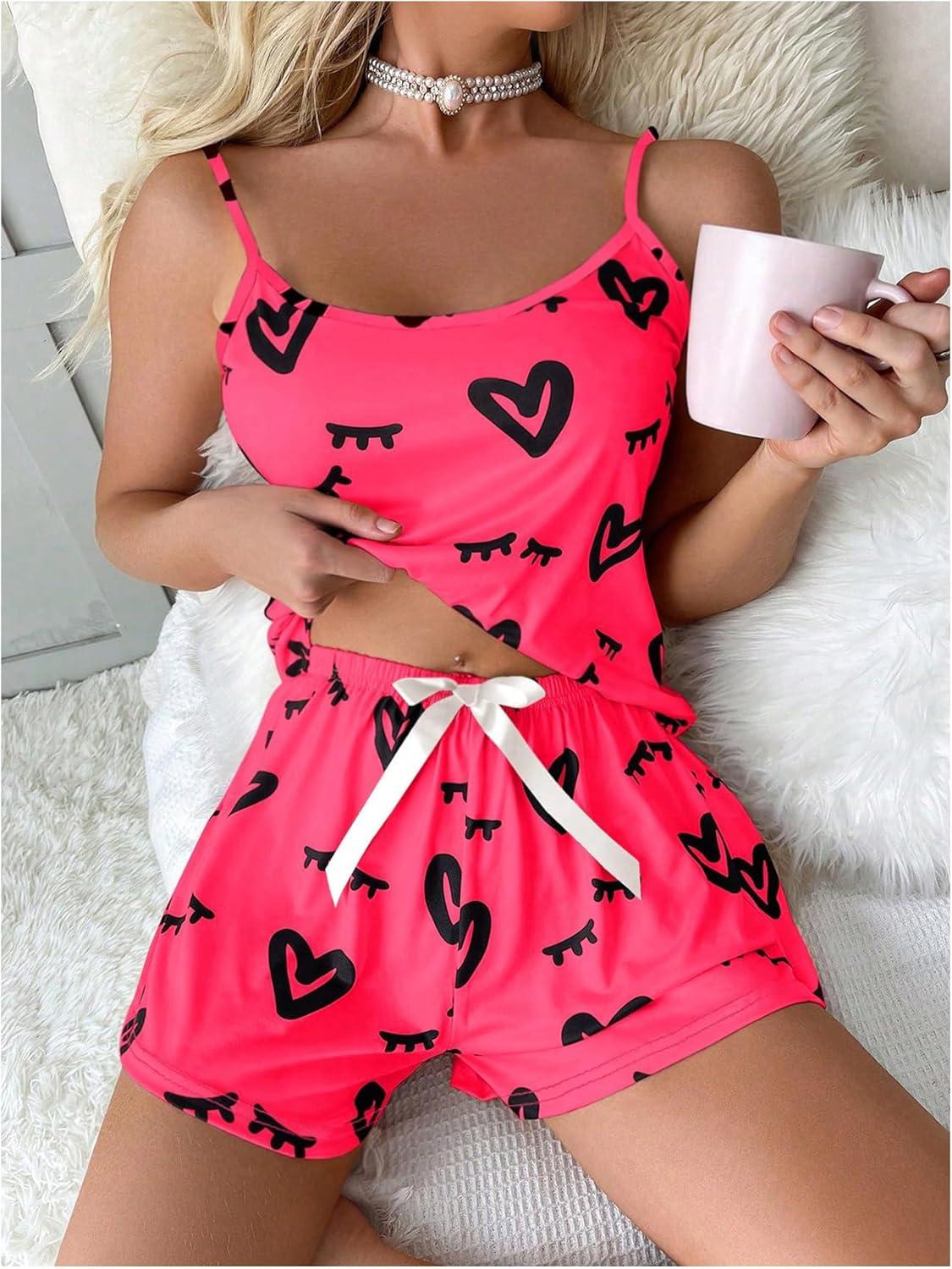 SOLY HUX Cute Pajama Sets for Women 2 Piece Heart Print Sleepwear Cami Tops and Shorts Summer Loungewear(Hotpink Heart)