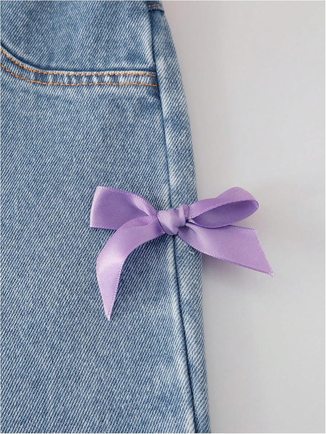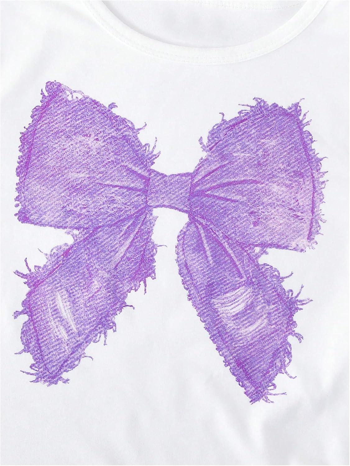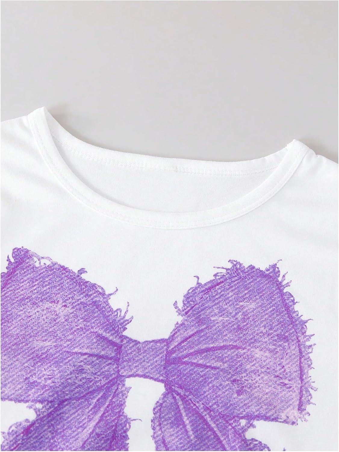 SOLY HUX Girl’s 2 Piece Outfits Cute Bow Graphic Short Sleeve T Shirt and Jean Pants Set Streetwear(Purple Bow Graphic)