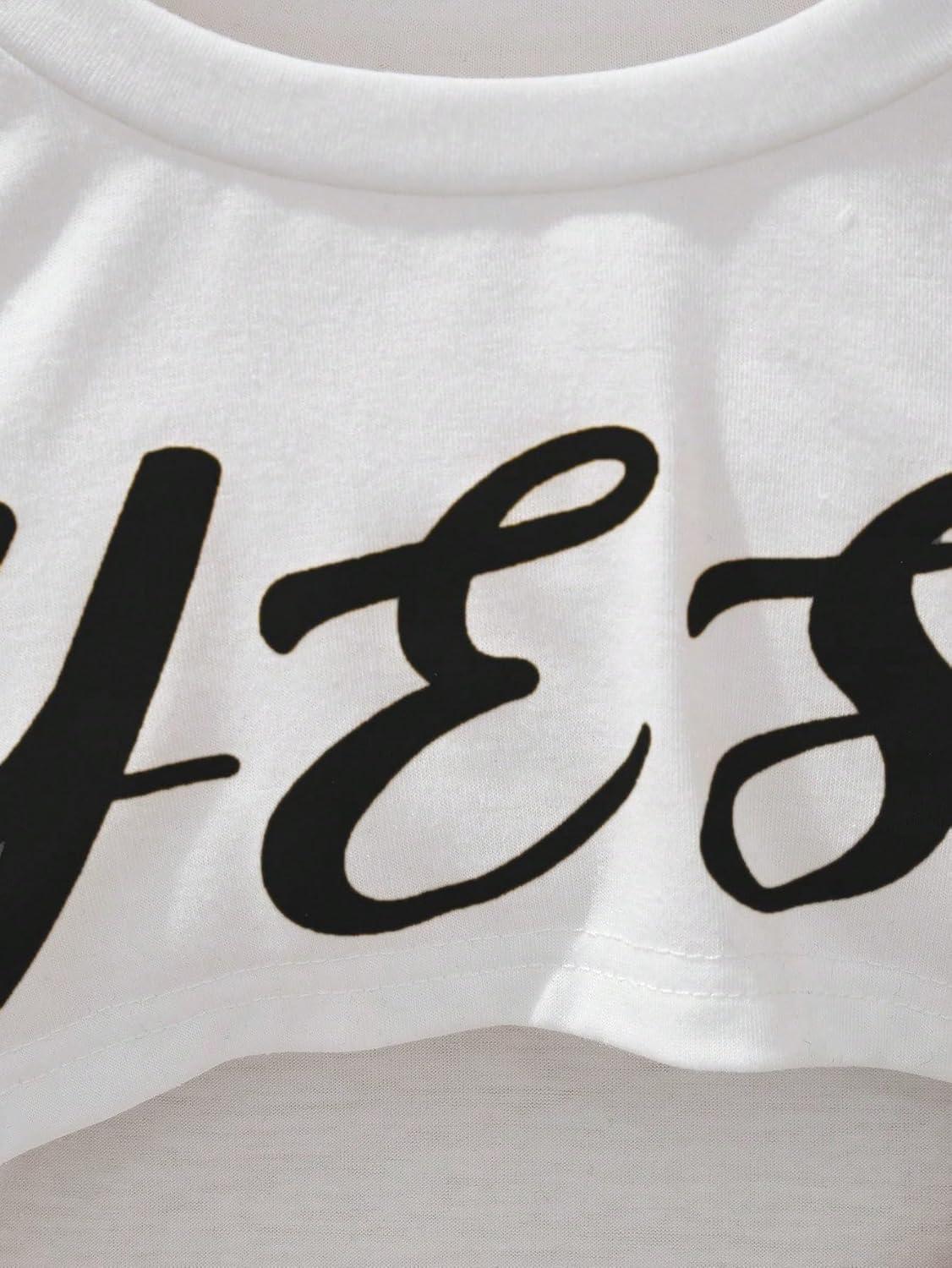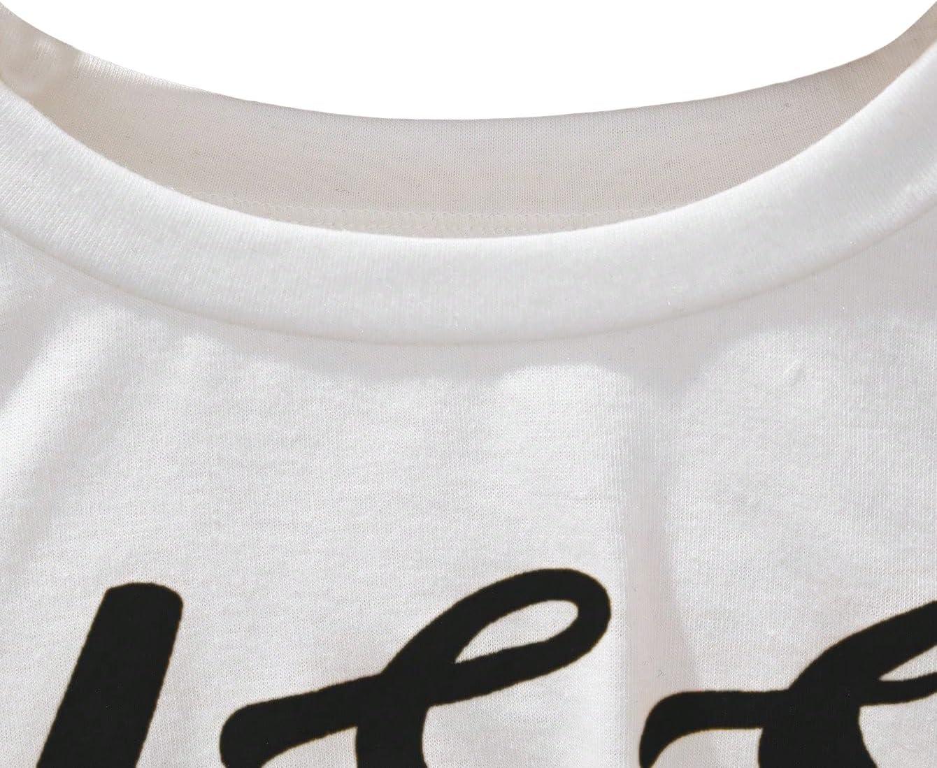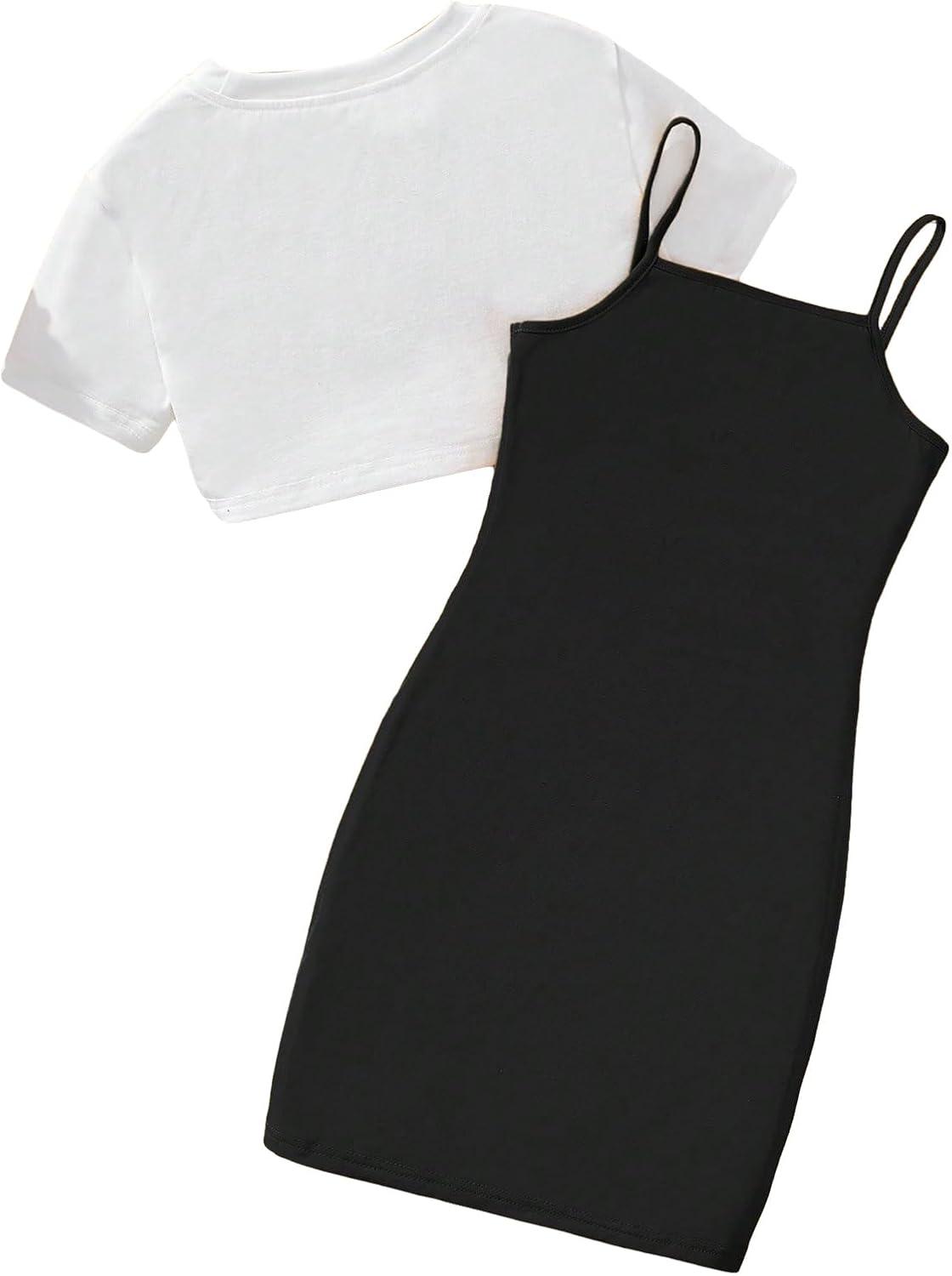SOLY HUX Girl’s 2 Piece Outfits Short Sleeve Crop Top and Cartoon Print Cami Dress Set(Black Letter)