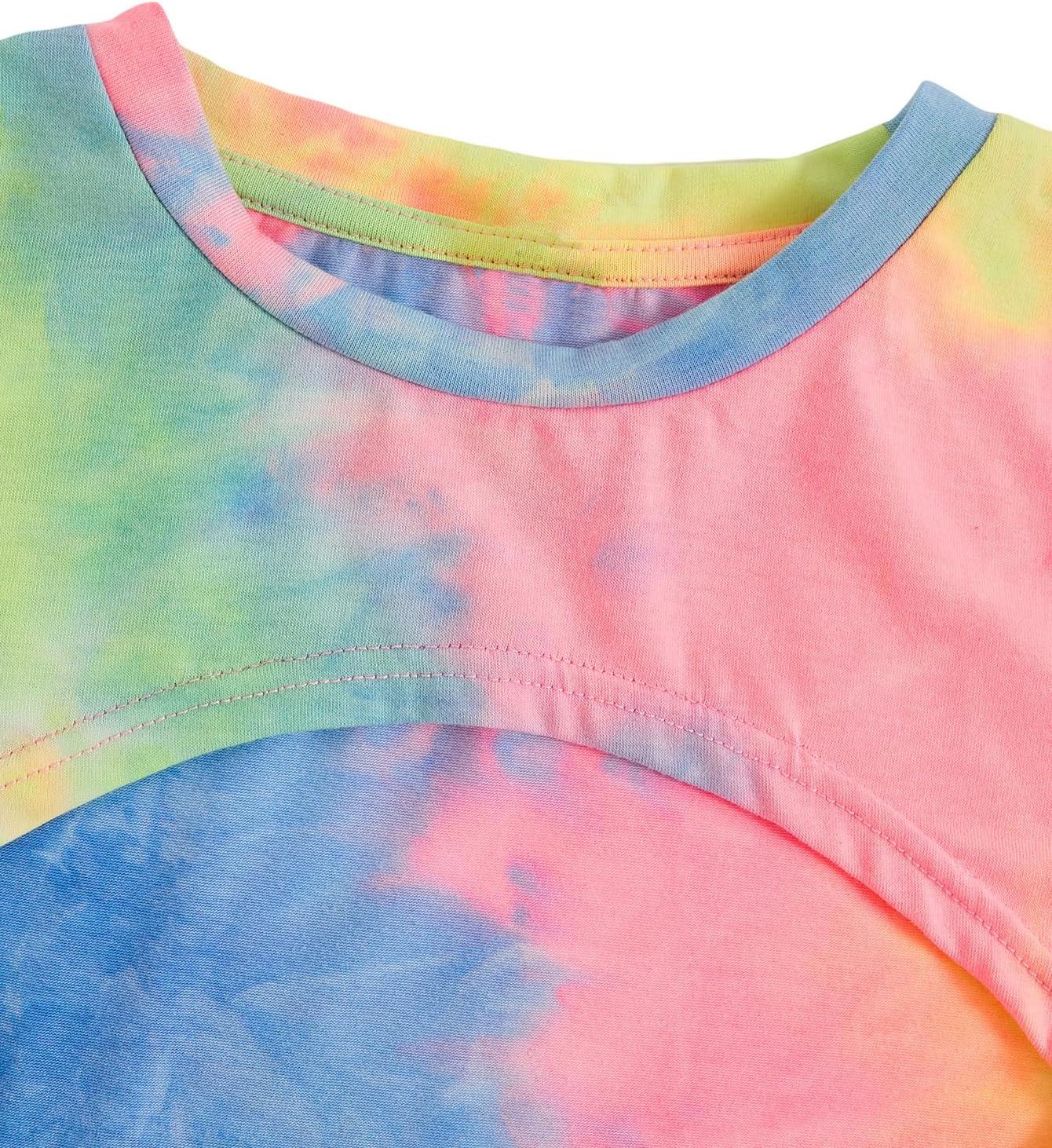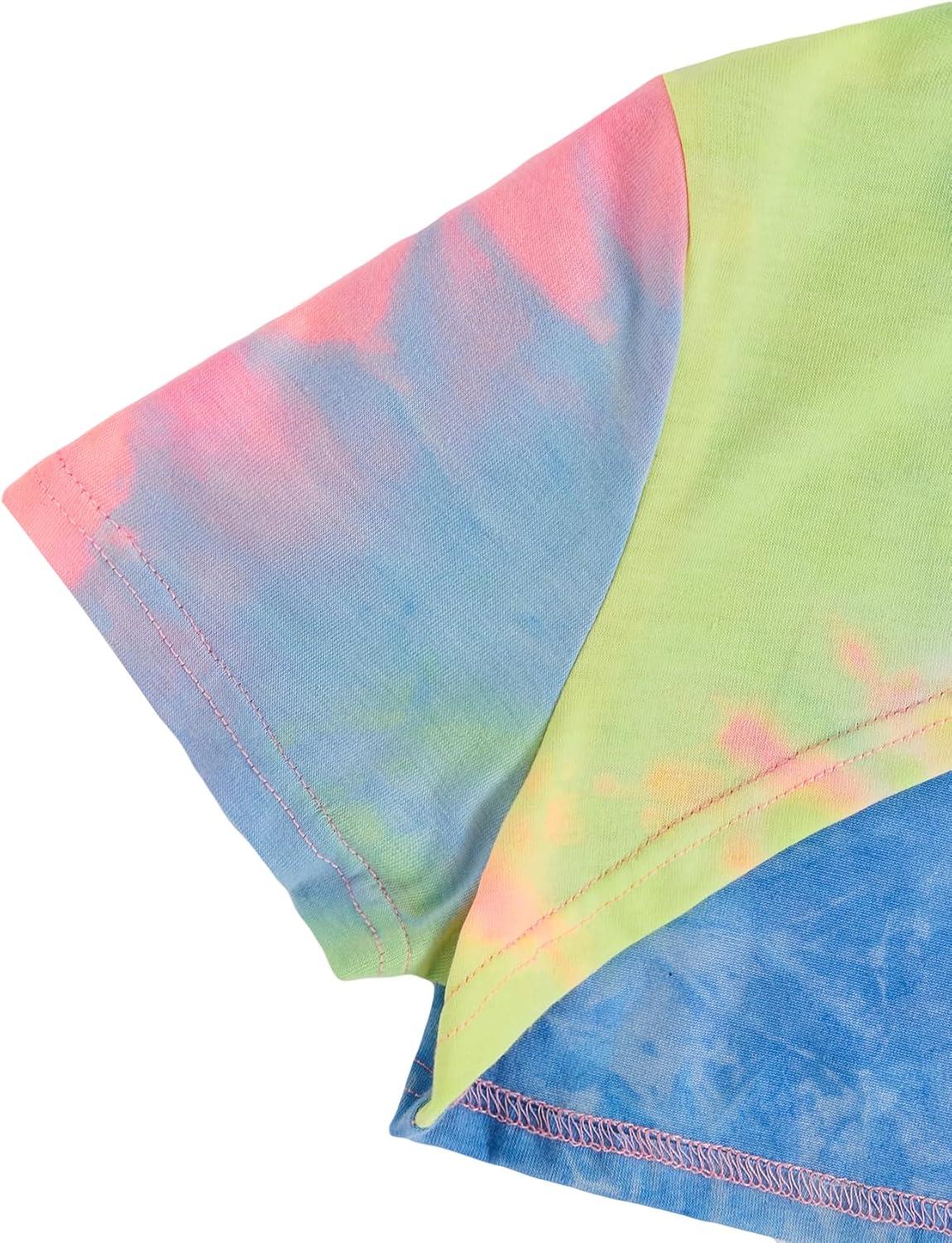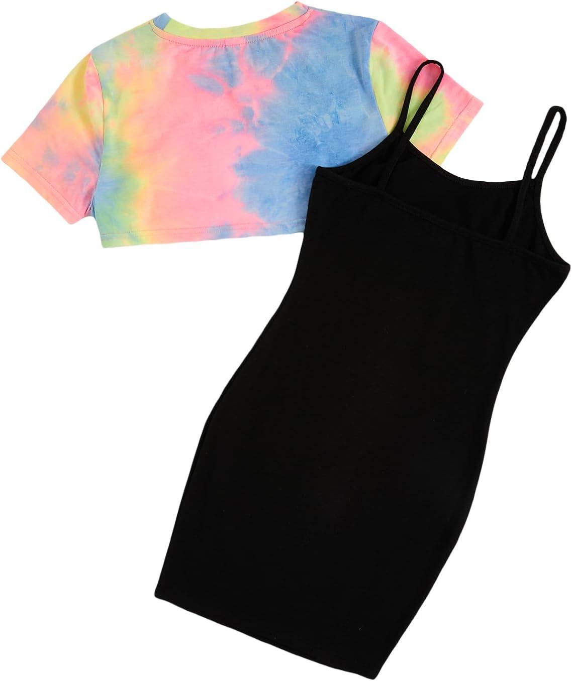 SOLY HUX Girl’s 2 Piece Outfits Short Sleeve Crop Top and Cartoon Print Cami Dress Set(Multicoloured)