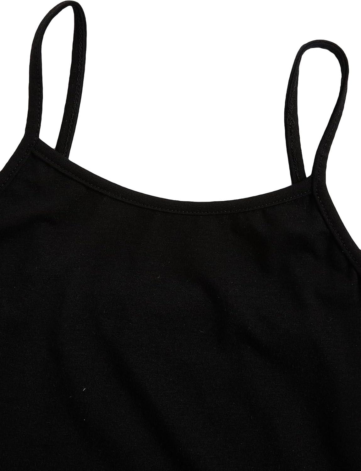 SOLY HUX Girl’s 2 Piece Outfits Short Sleeve Crop Top and Cartoon Print Cami Dress Set(Black Letter)