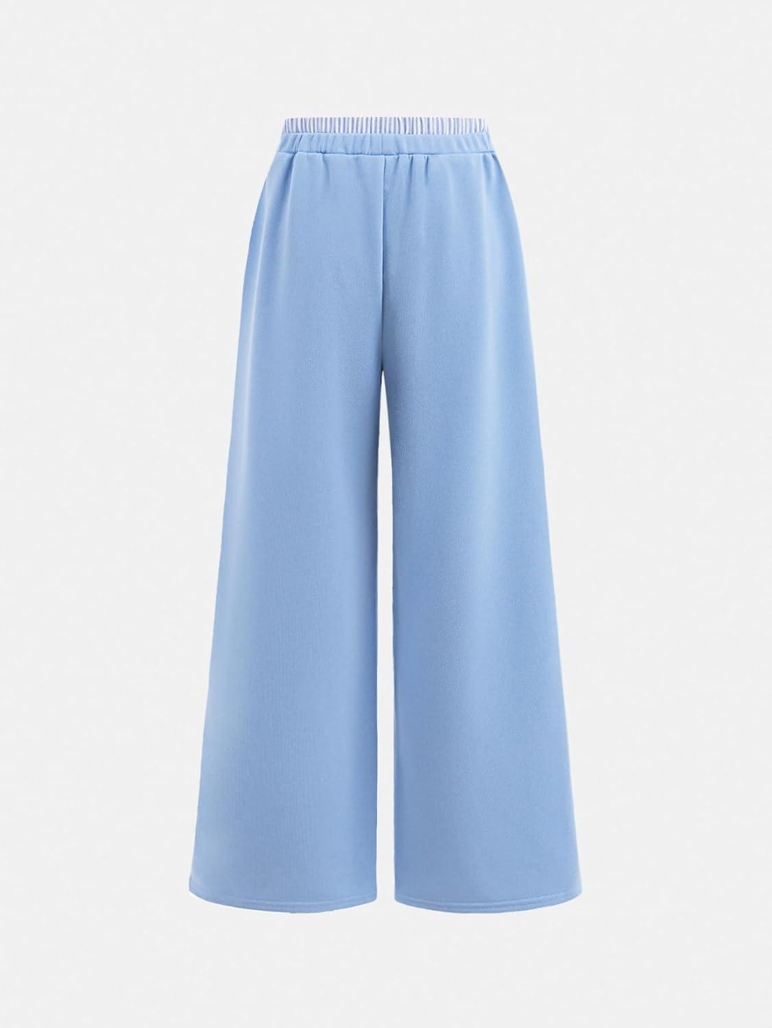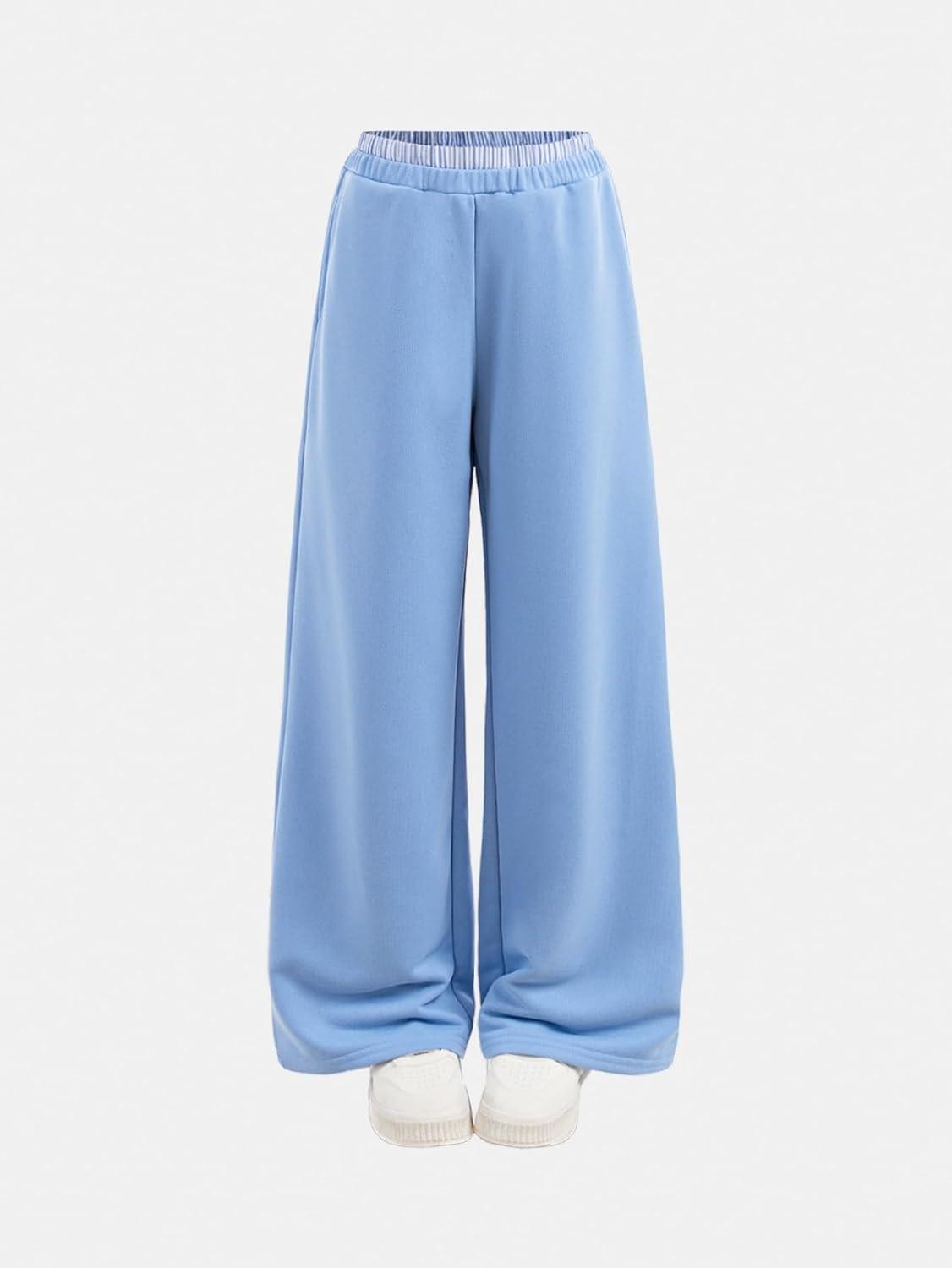 SOLY HUX Girl’s Baggy Sweatpants Elastic Low Rise Wide Leg Track Pants with Pockets(Pure Light Blue)