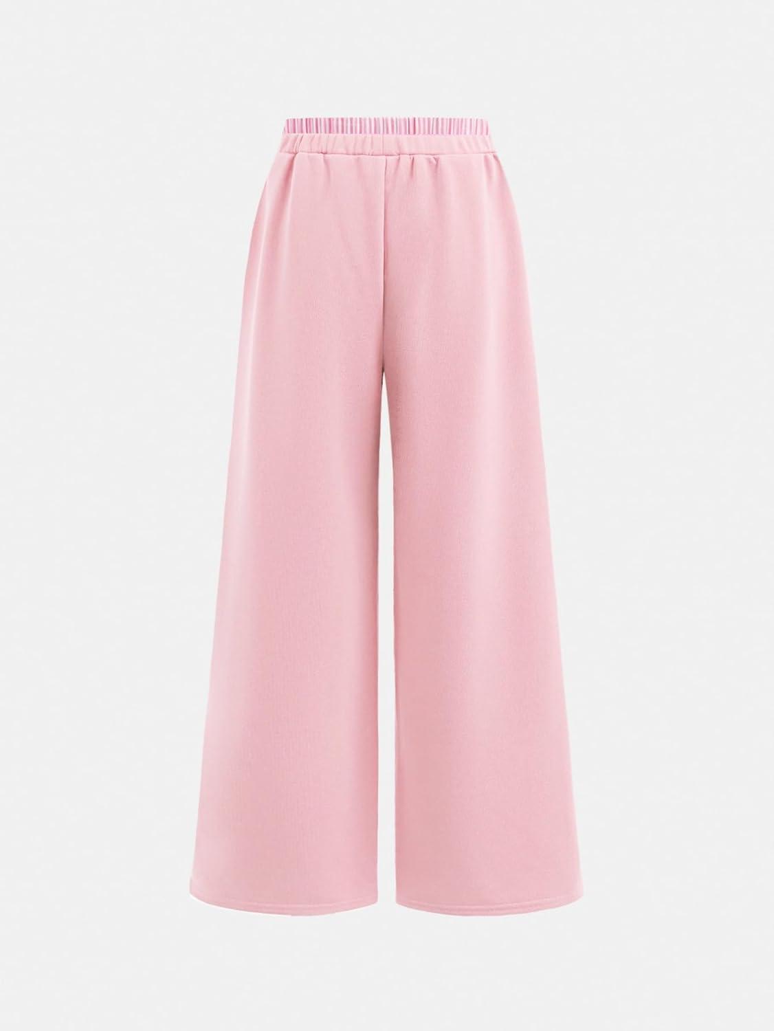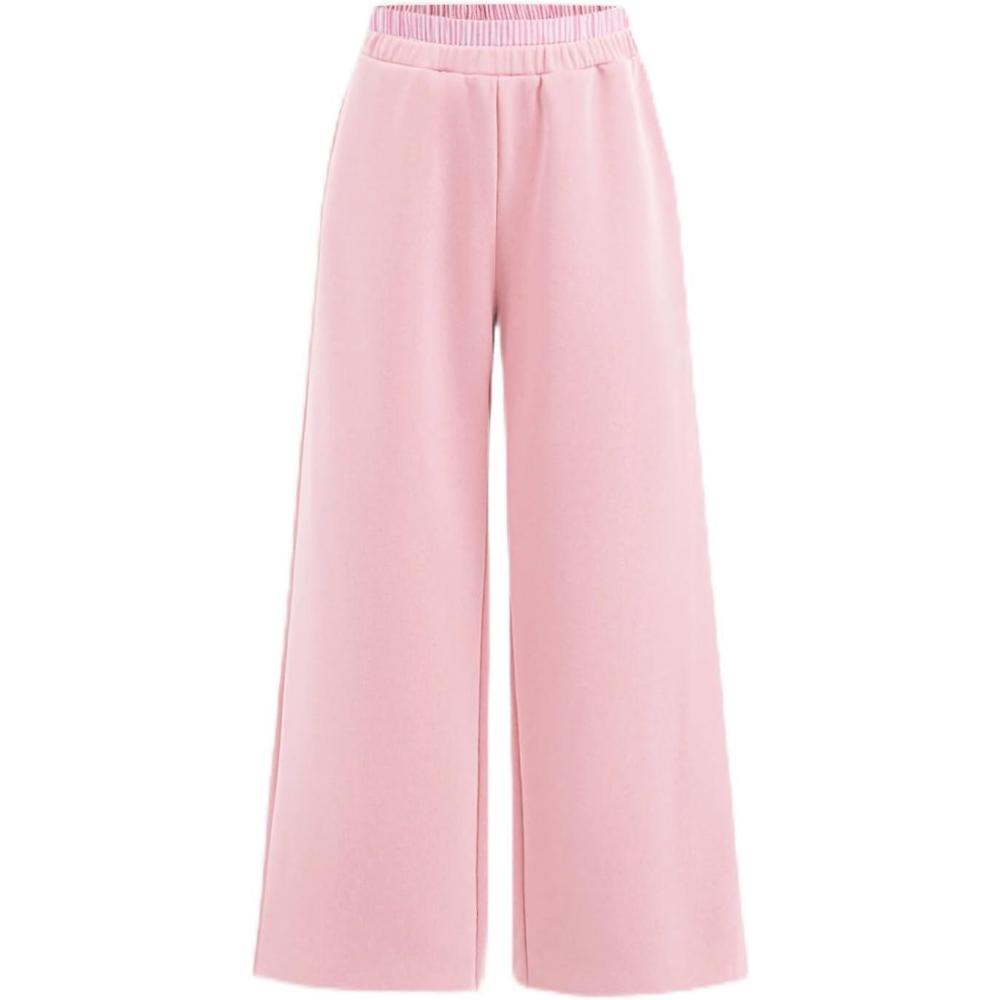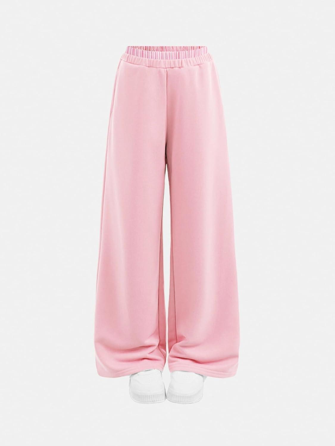 SOLY HUX Girl’s Baggy Sweatpants Elastic Low Rise Wide Leg Track Pants with Pockets(Pure Pink)