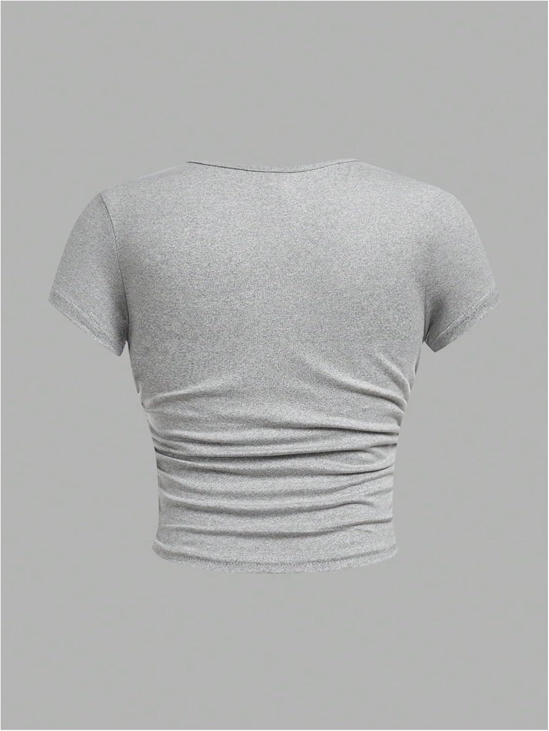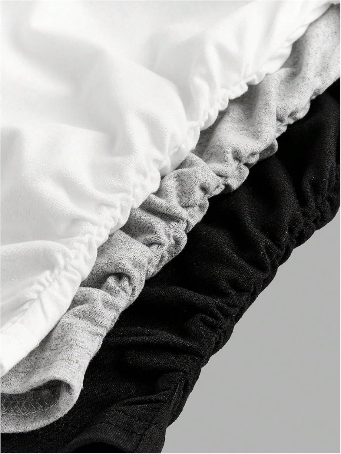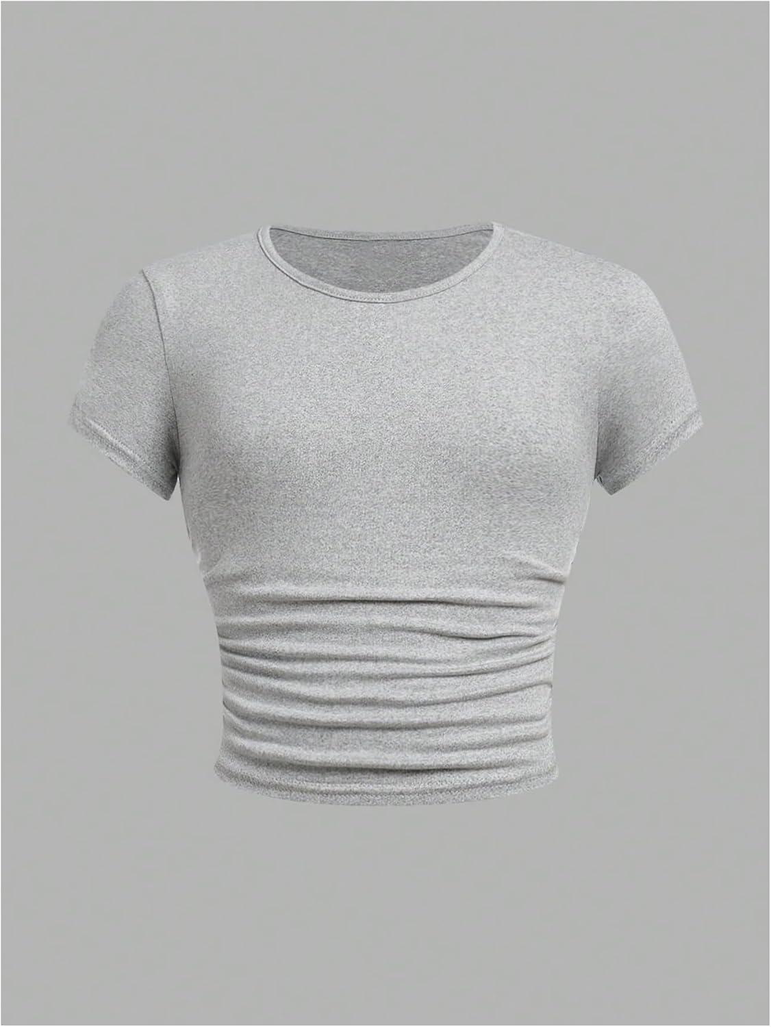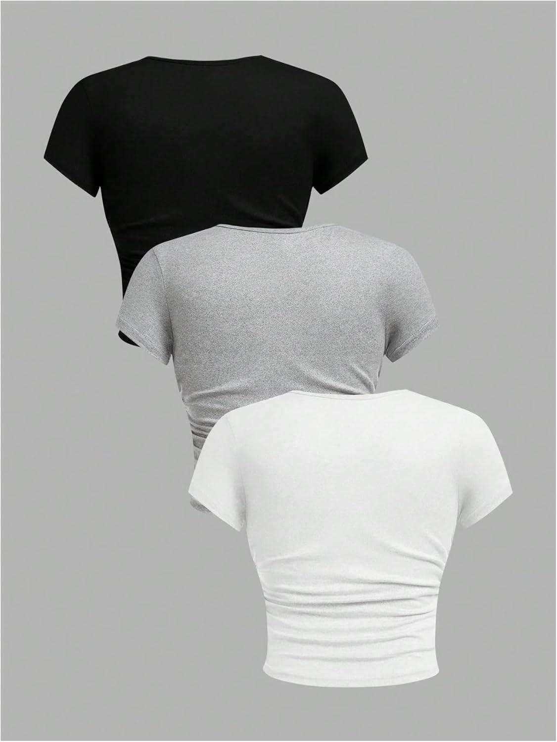 SOLY HUX Girl’s Basic T-Shirts Set Crew Neck Short Sleeve Crop Top 3 Packs Summer Fitted Tees(Dark Grey Black White)