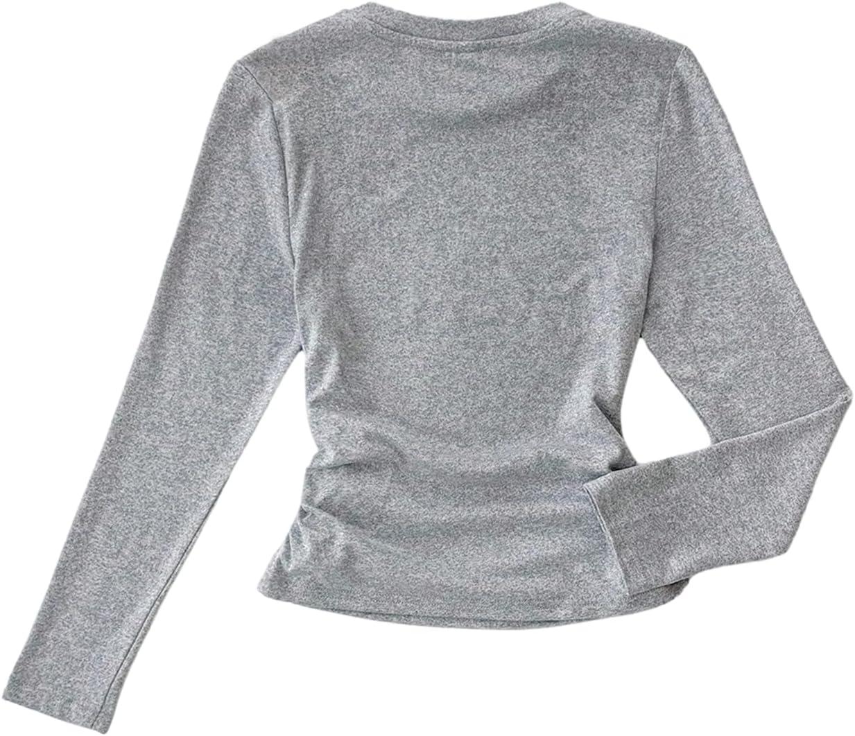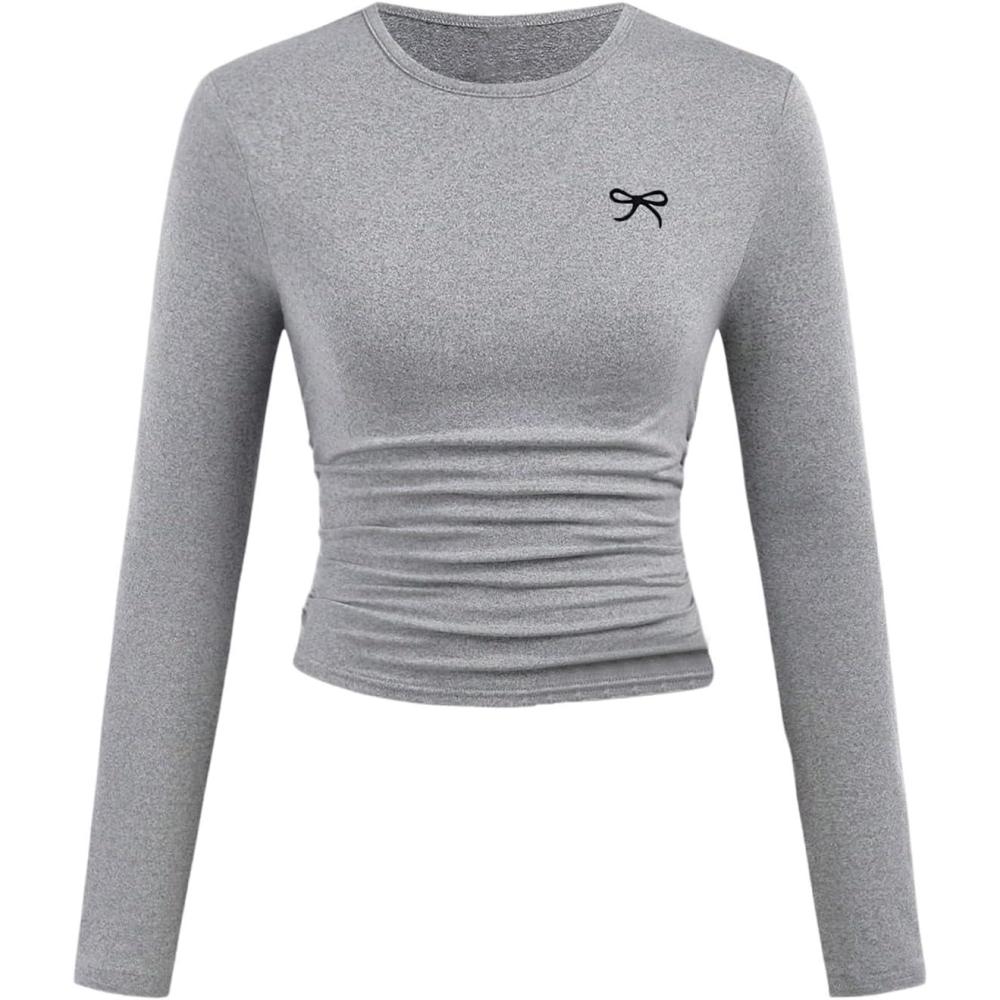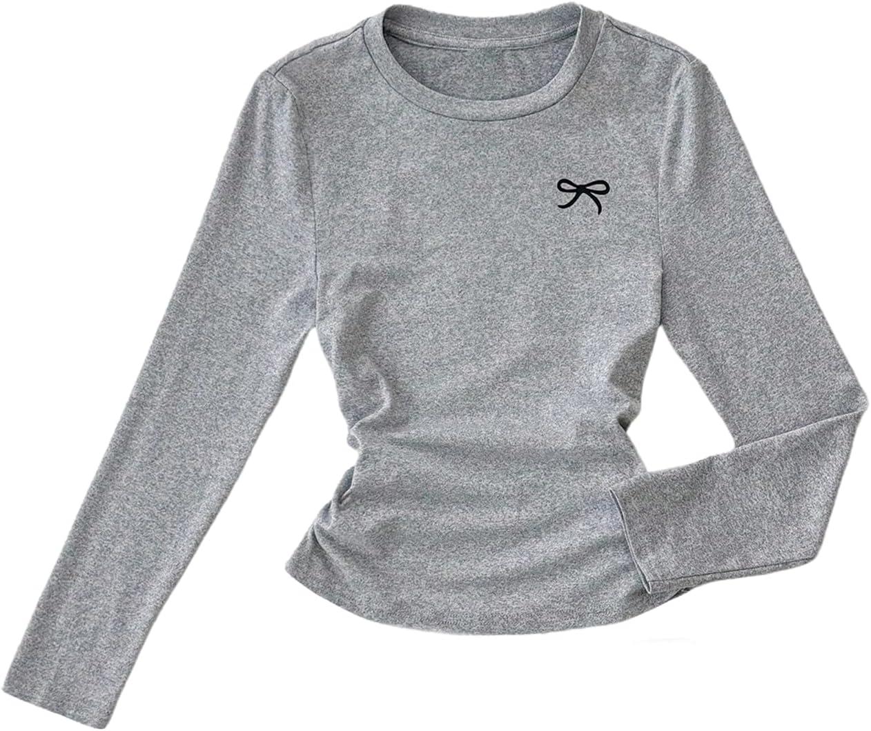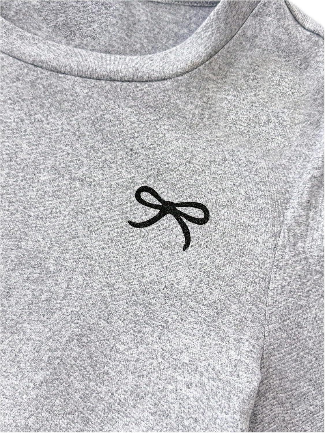 SOLY HUX Girl’s Bow Graphic Tees Y2k Ruched Long Sleeve Crew Neck T Shirt Cute Fall Tops(Light Grey Bow)