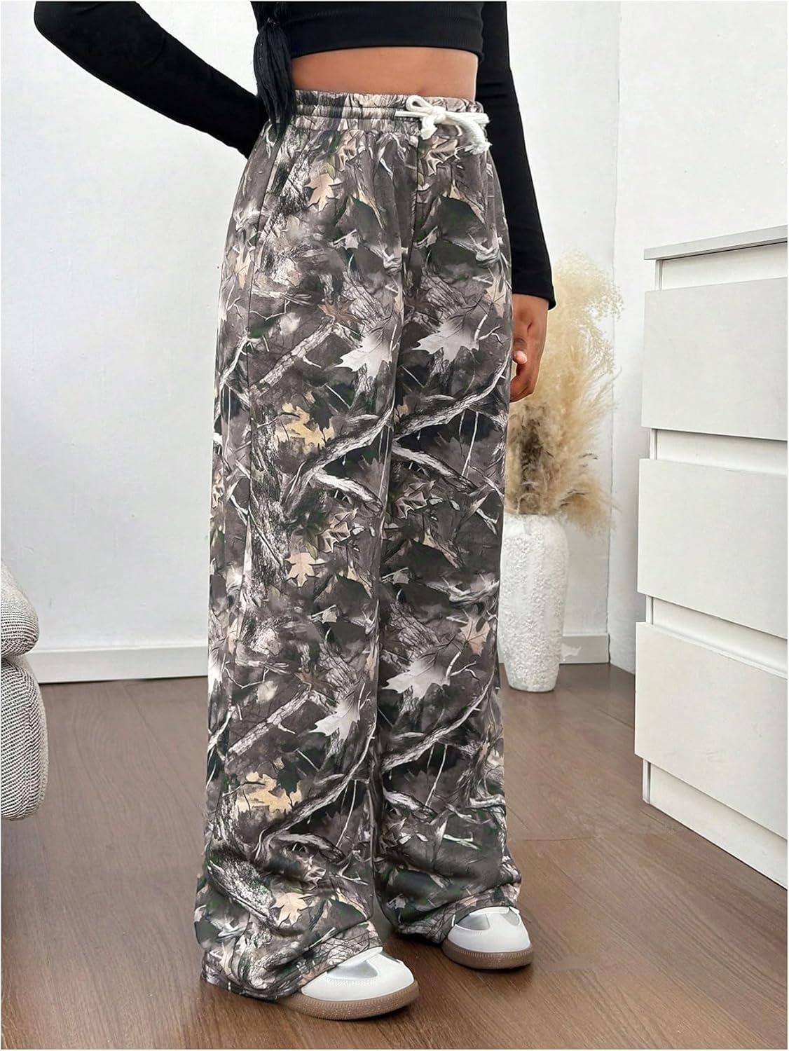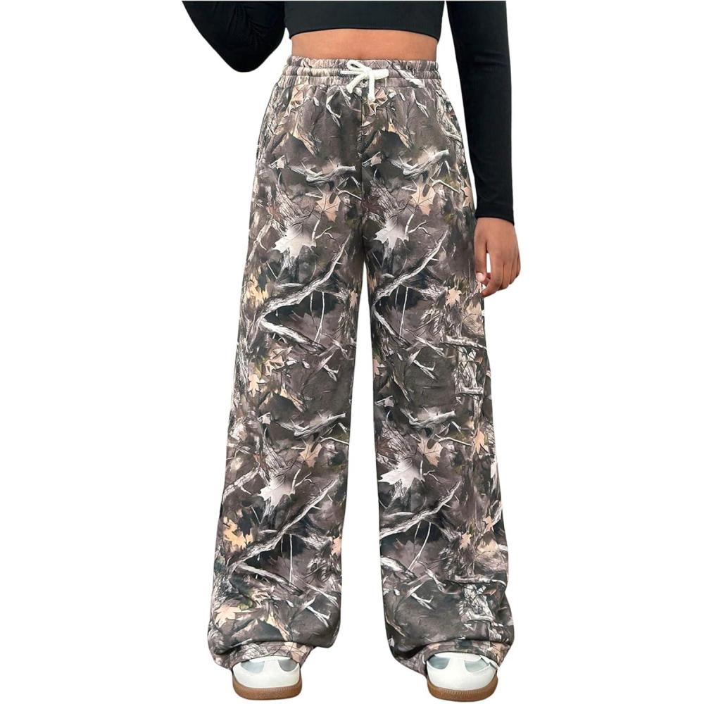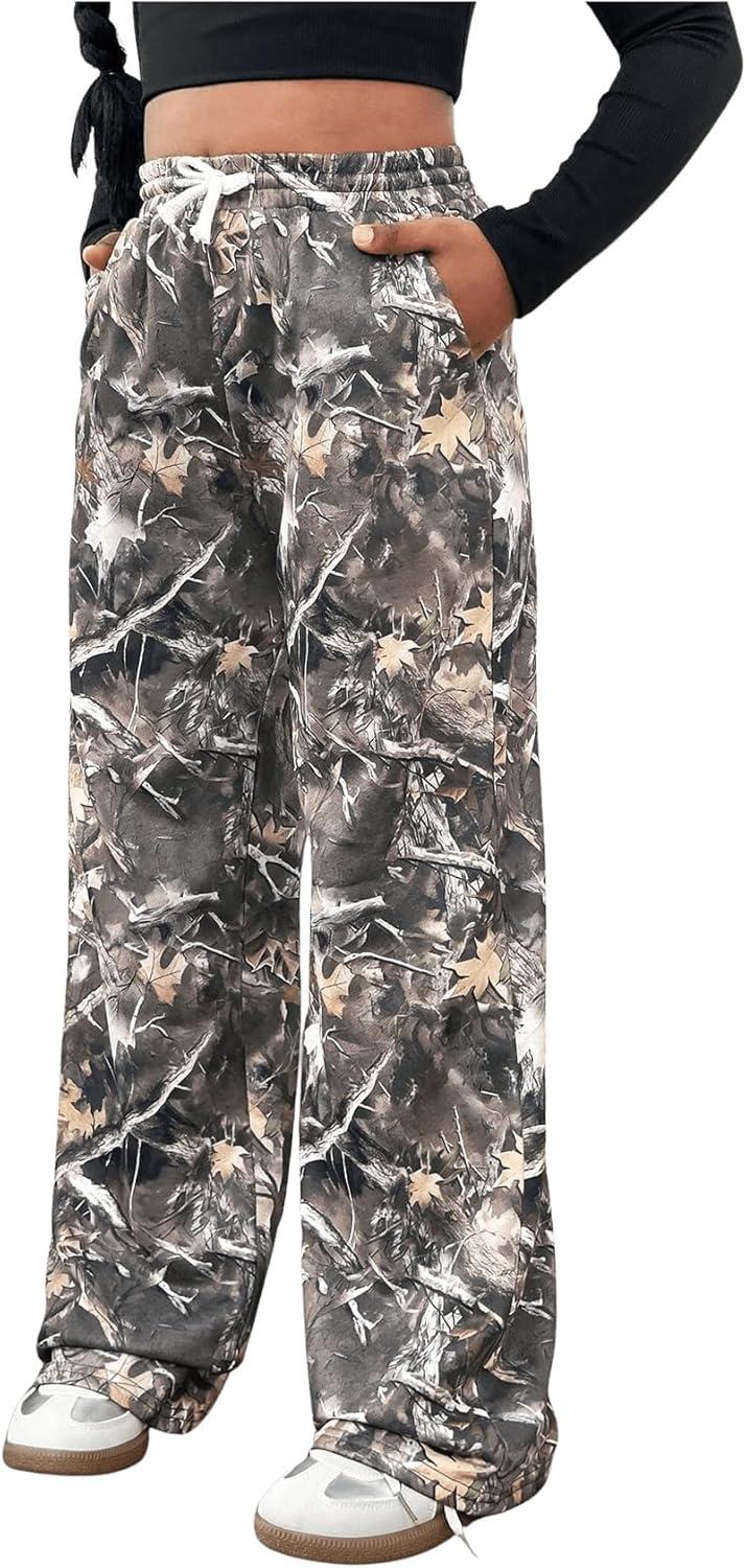 SOLY HUX Girl’s Camo Wide Leg Pants Drawstring Waist Baggy Sweatpants with Pocket(Multicolor)