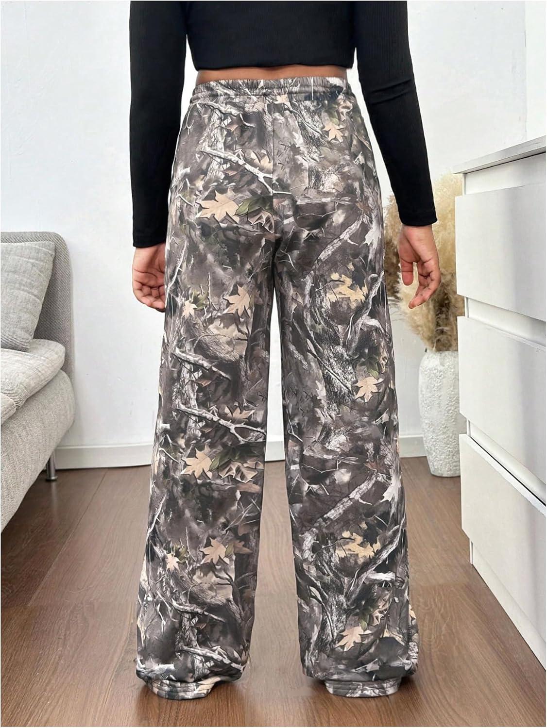 SOLY HUX Girl’s Camo Wide Leg Pants Drawstring Waist Baggy Sweatpants with Pocket(Multicolored)