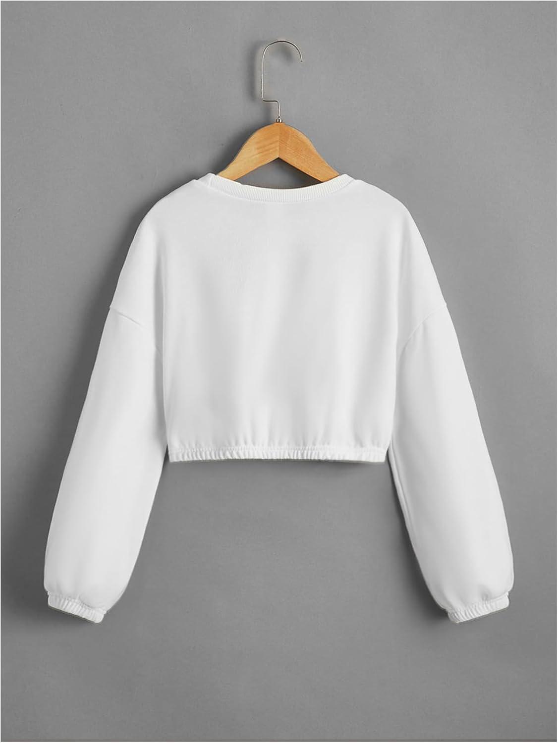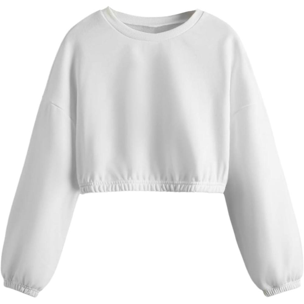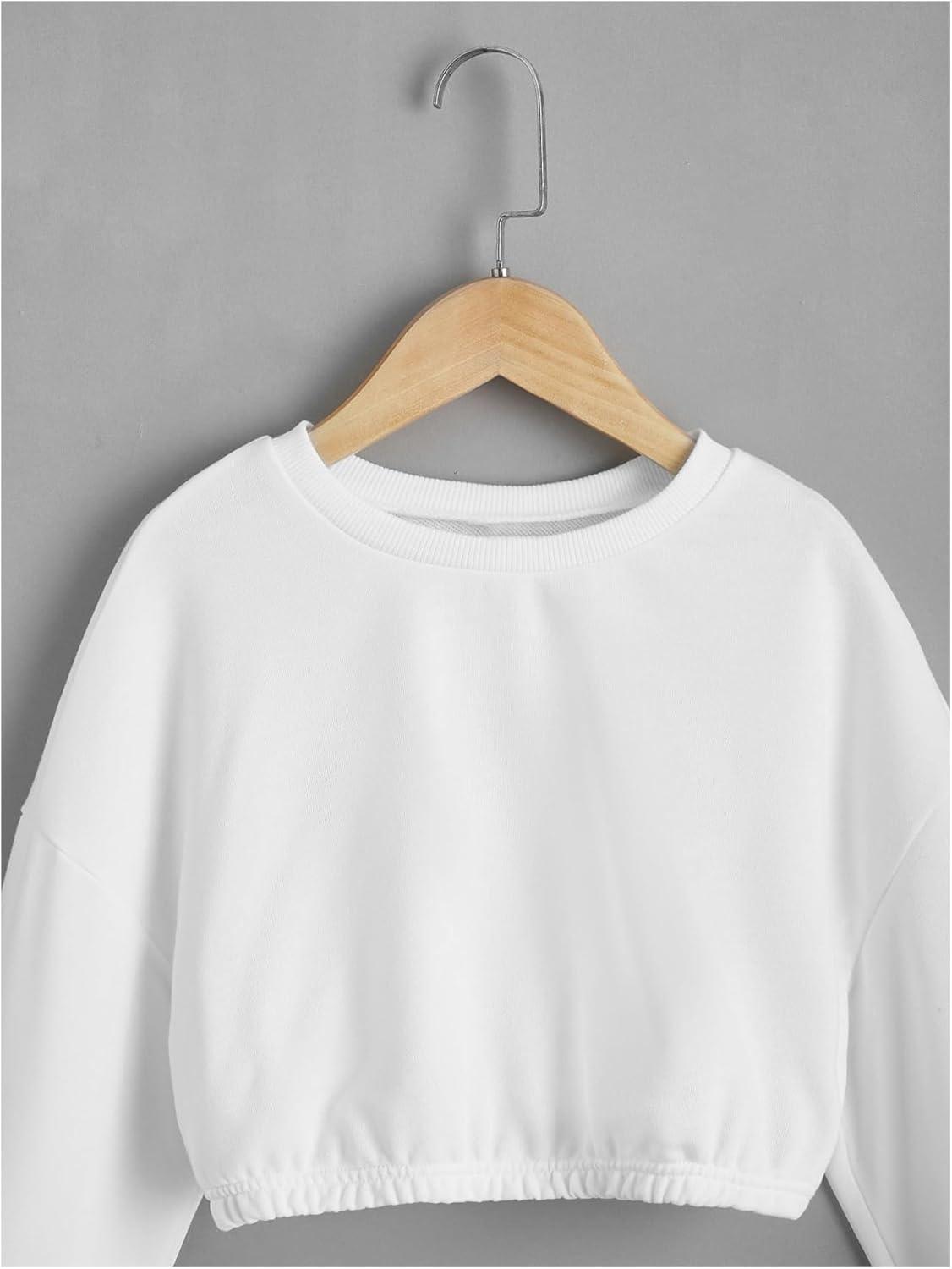 SOLY HUX Girl’s Casual Crewneck Cropped Sweatshirt Long Sleeve Drop Shoulder Pullover Tops(Plain White)