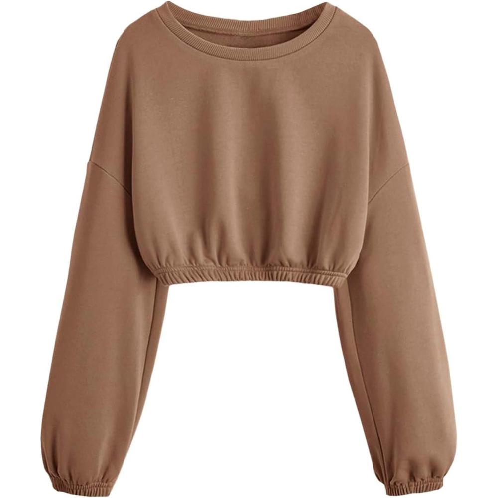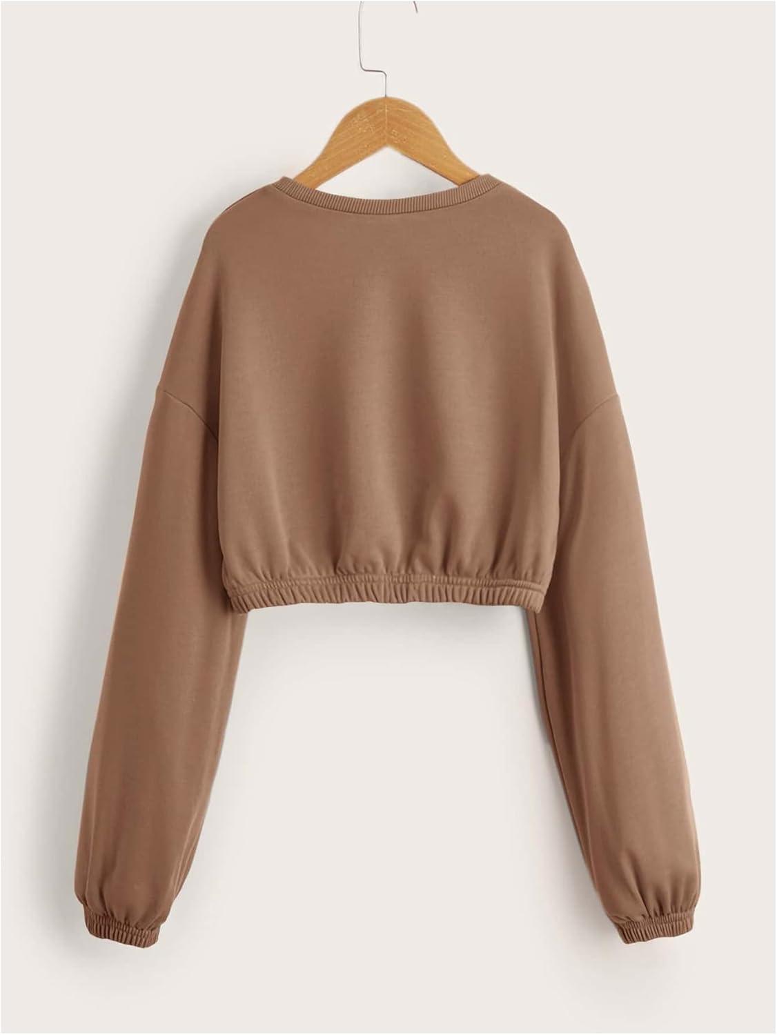 SOLY HUX Girl’s Casual Crewneck Cropped Sweatshirt Long Sleeve Drop Shoulder Pullover Tops(Pure Mocha Brown)