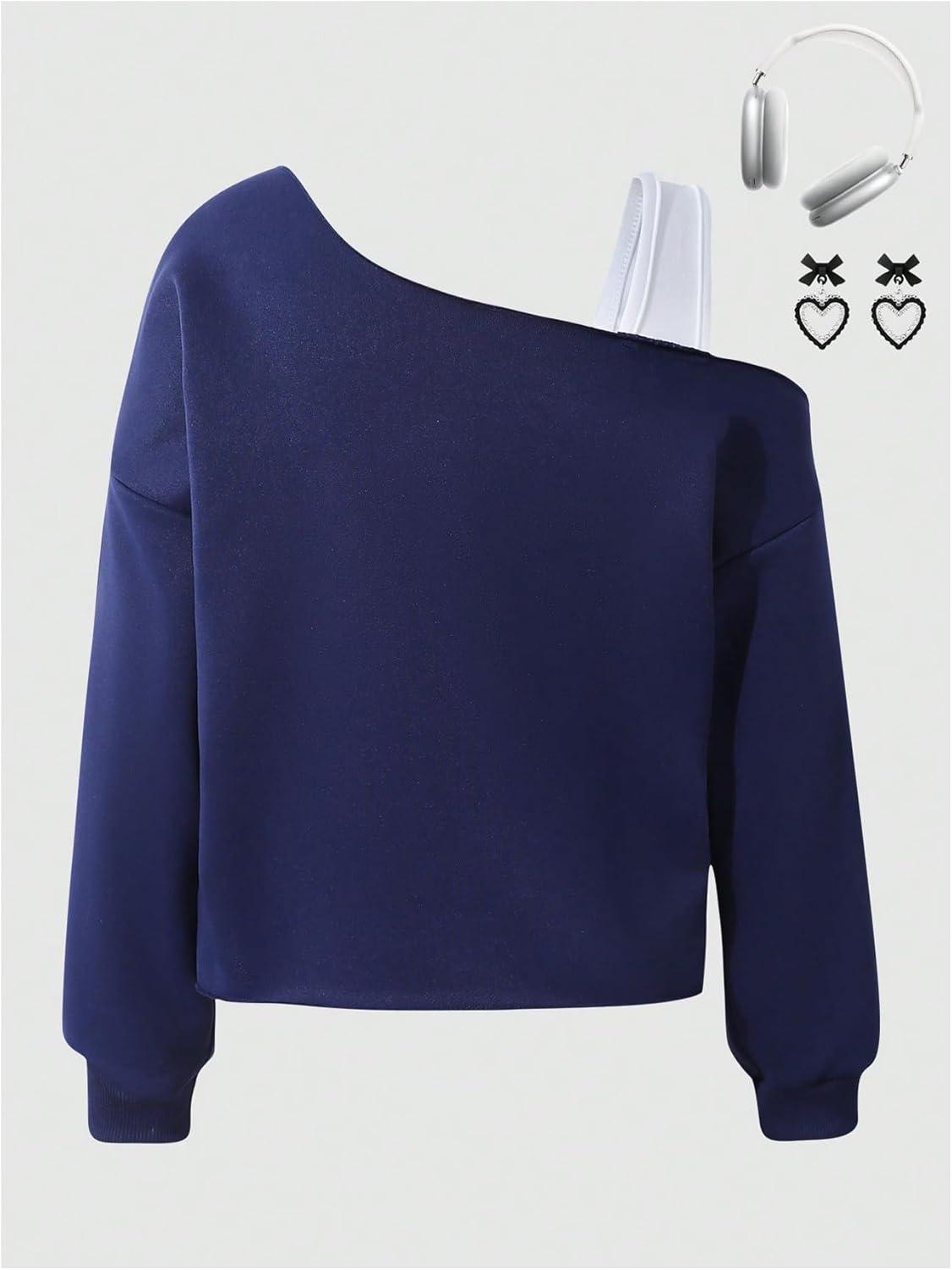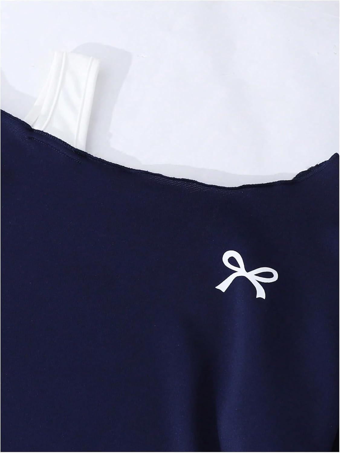 SOLY HUX Girl’s Cold Shoulder Sweatshirts Bow Graphic Long Sleeve Shirts Pullover Fall Clothes(Dark Blue)