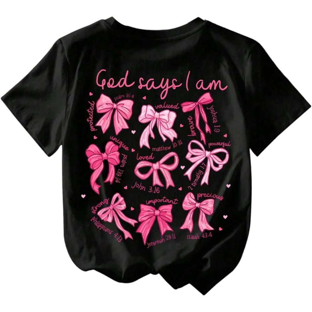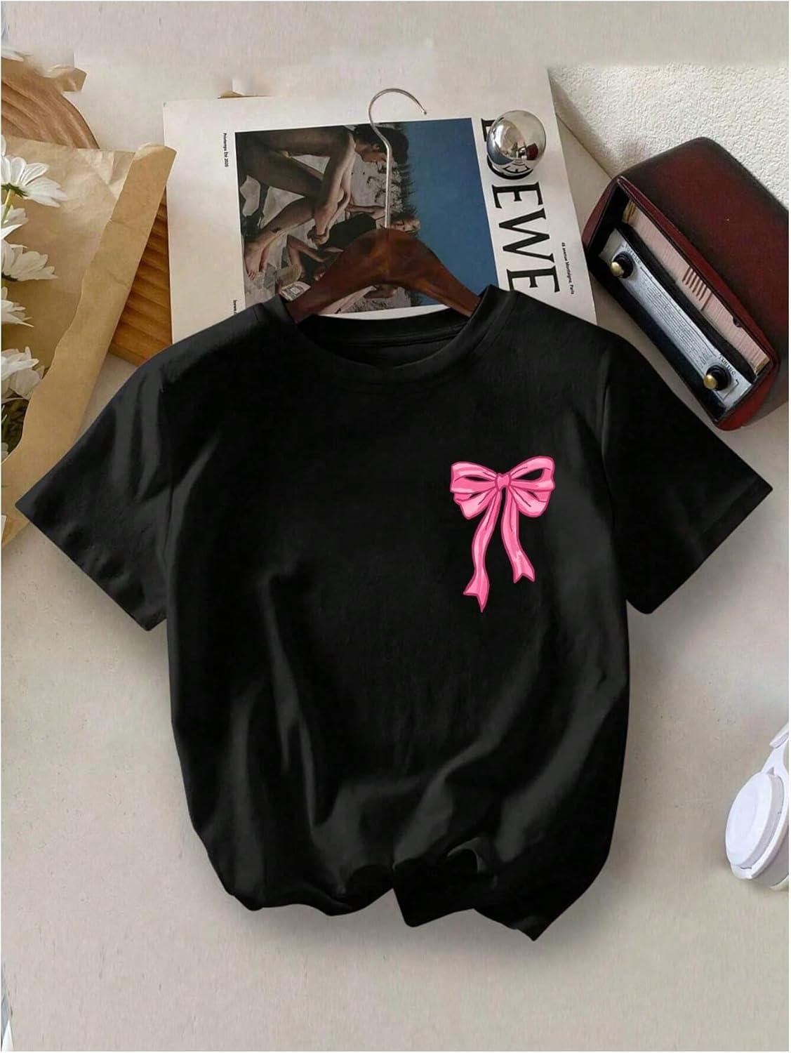 SOLY HUX Girl’s Cute Bow Graphic T Shirts Short Sleeve Crew Neck Loose Fit Summer Casual Tee Tops(Black Graphic)
