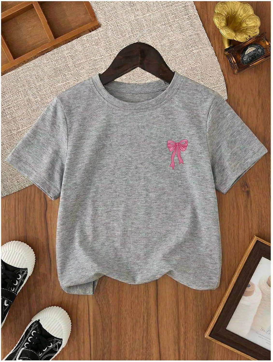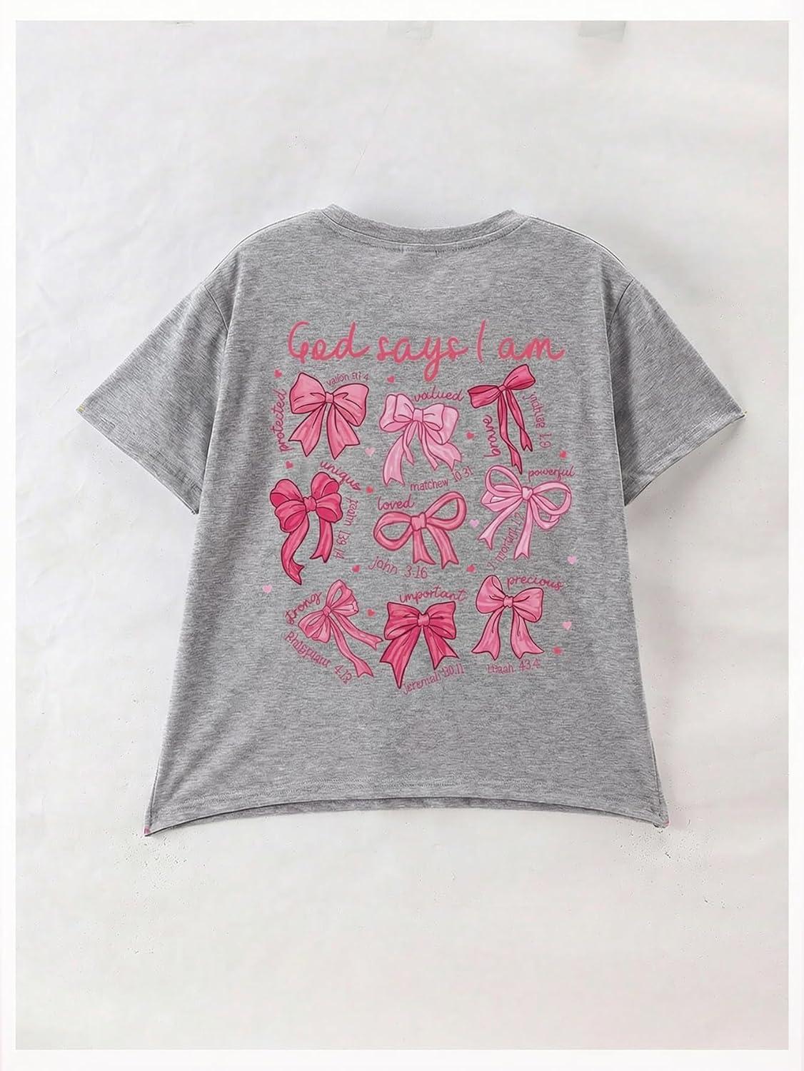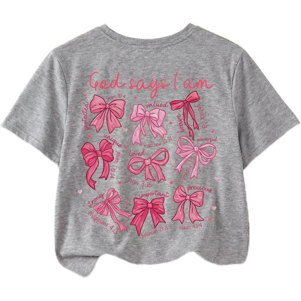 SOLY HUX Girl’s Cute Bow Graphic T Shirts Short Sleeve Crew Neck Loose Fit Summer Casual Tee Tops(Grey Bow)