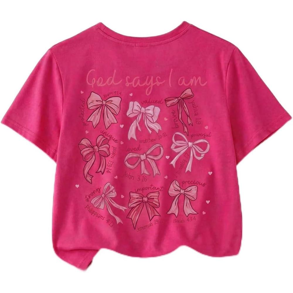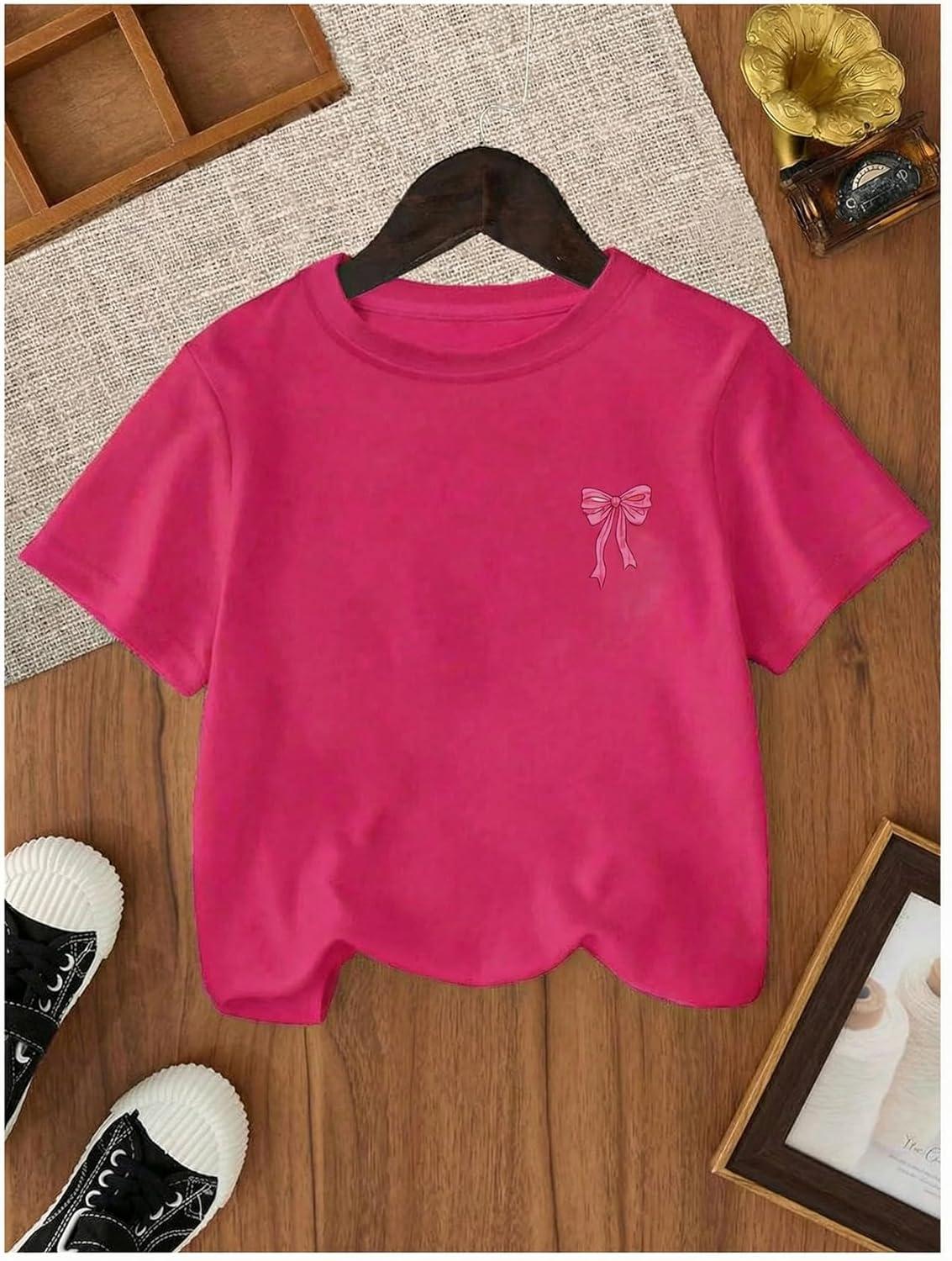 SOLY HUX Girl’s Cute Bow Graphic T Shirts Short Sleeve Crew Neck Loose Fit Summer Casual Tee Tops(Hot Pink)