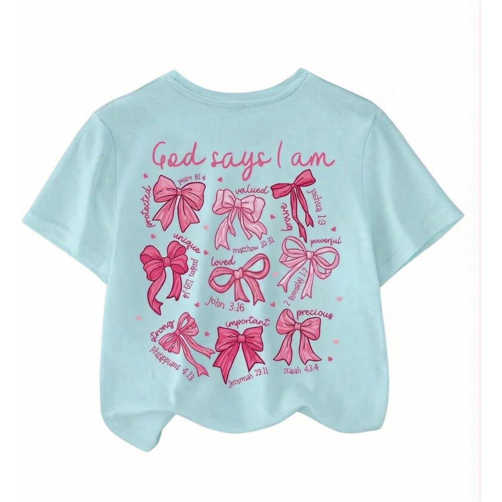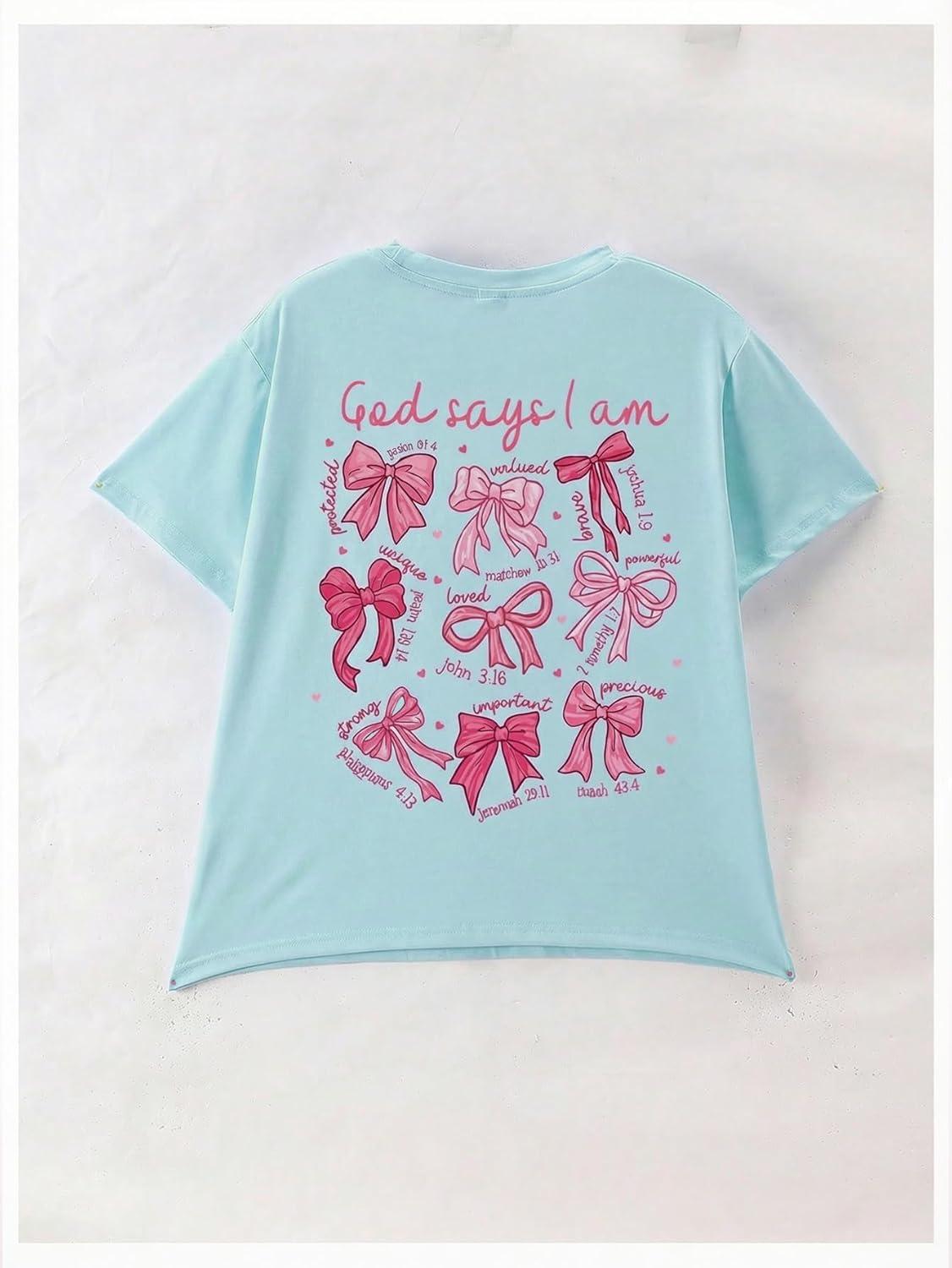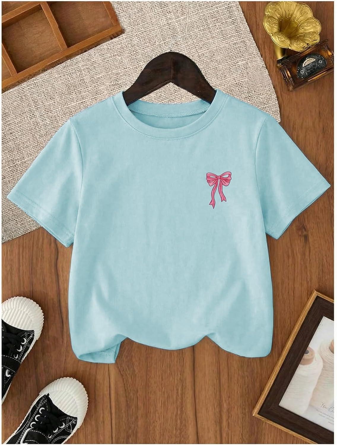 SOLY HUX Girl’s Cute Bow Graphic T Shirts Short Sleeve Crew Neck Loose Fit Summer Casual Tee Tops(Light Blue)