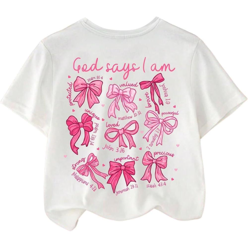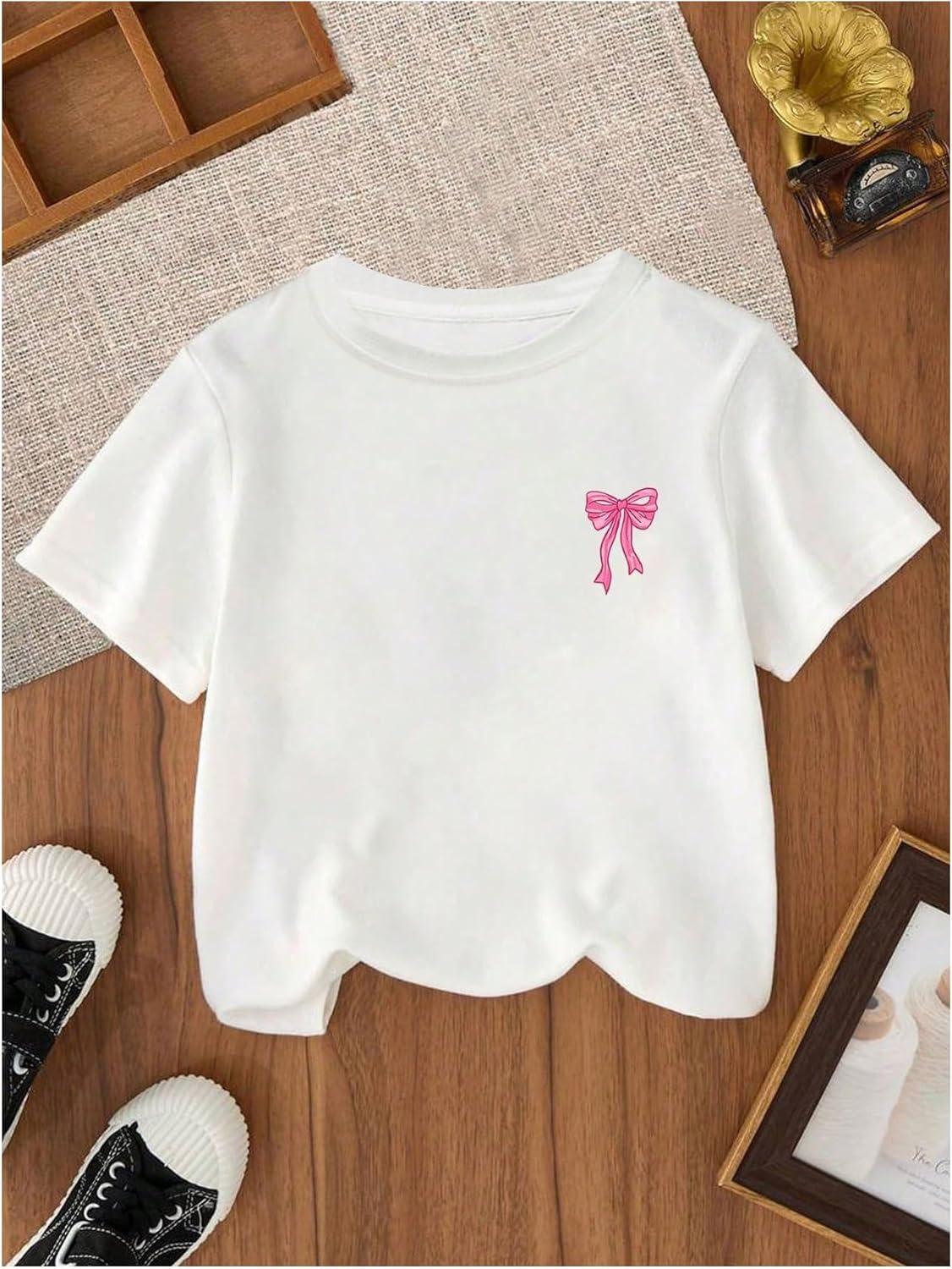 SOLY HUX Girl’s Cute Bow Graphic T Shirts Short Sleeve Crew Neck Loose Fit Summer Casual Tee Tops(White Graphic)