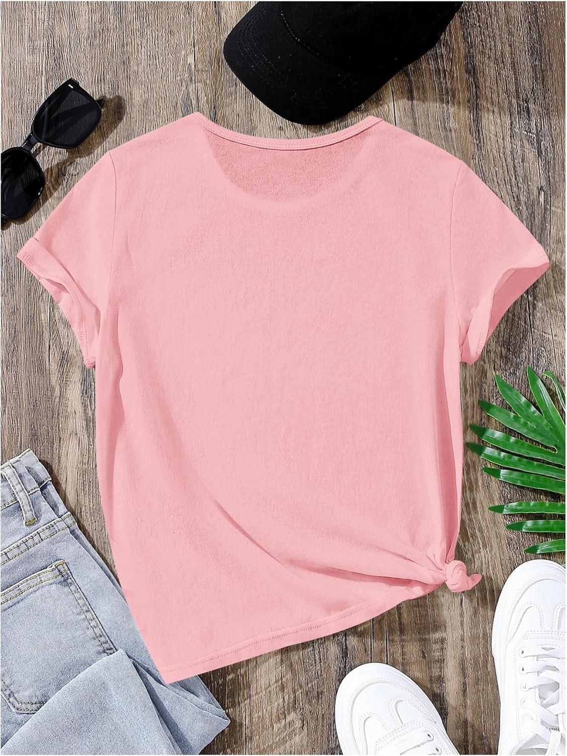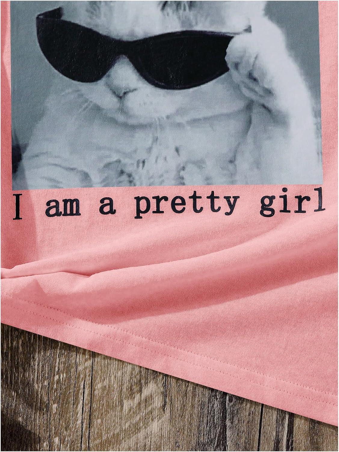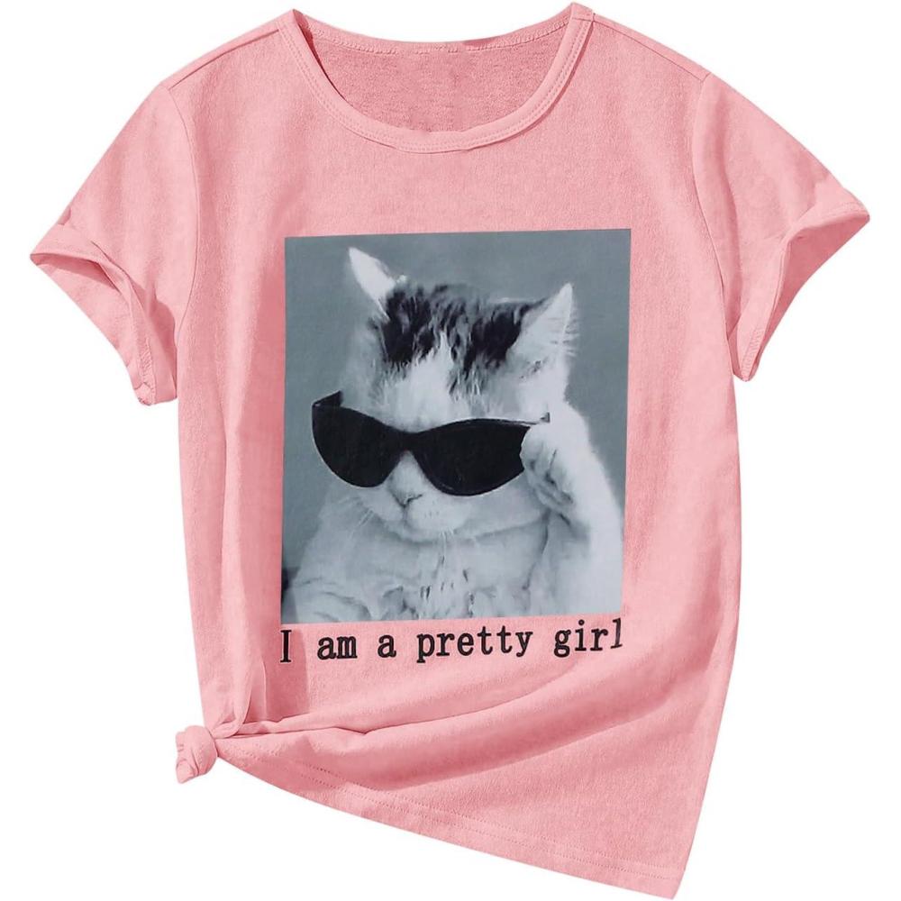 SOLY HUX Girl’s Cute Cat Graphic Tees Letter Print Short Sleeve T Shirts Preppy Clothes Summer Tops(Pink Cat)