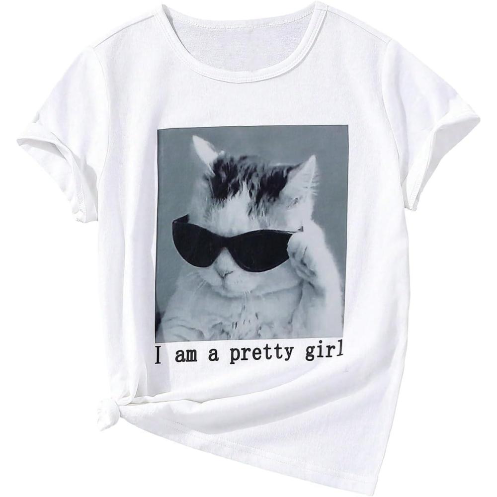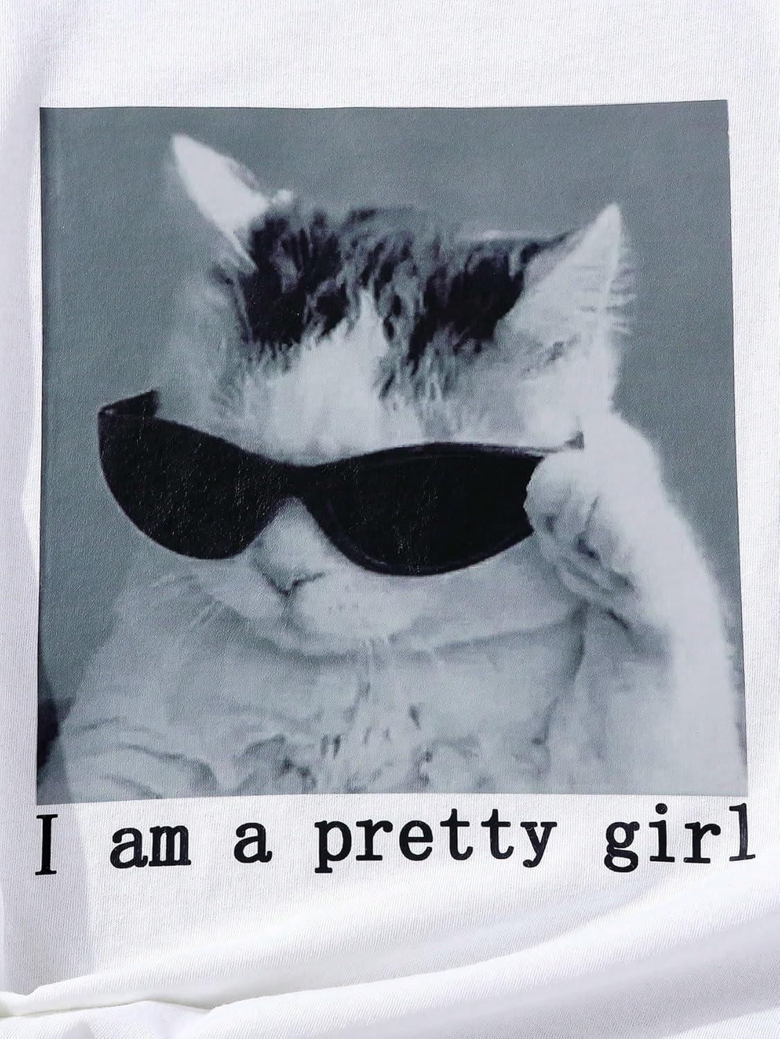 SOLY HUX Girl’s Cute Cat Graphic Tees Letter Print Short Sleeve T Shirts Preppy Clothes Summer Tops(White Slogan)