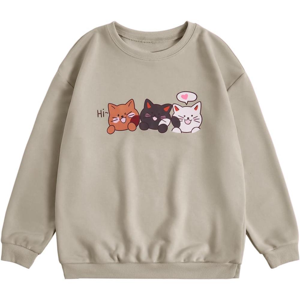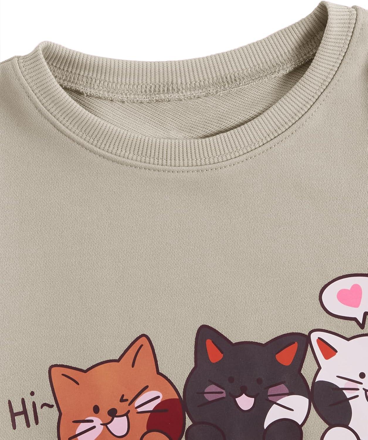 imageSOLY HUX Girls Cute Graphic Crew Neck Sweatshirt Long Sleeve Pullover Tops T ShirtWhite Cat