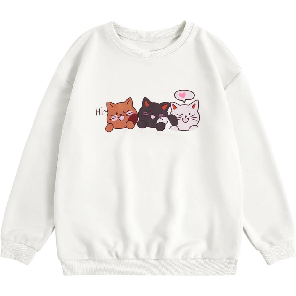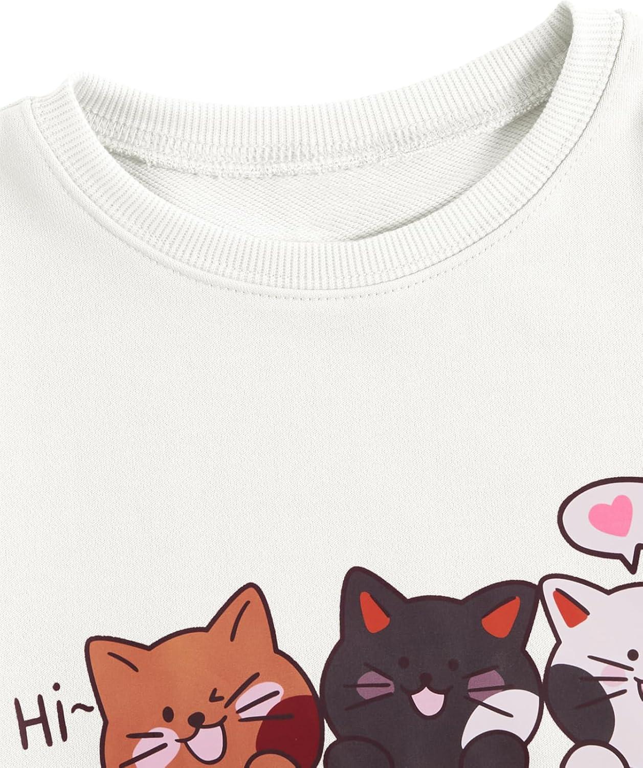 SOLY HUX Girl’s Cute Graphic Crew Neck Sweatshirt Long Sleeve Pullover Tops T Shirt(White Cat)