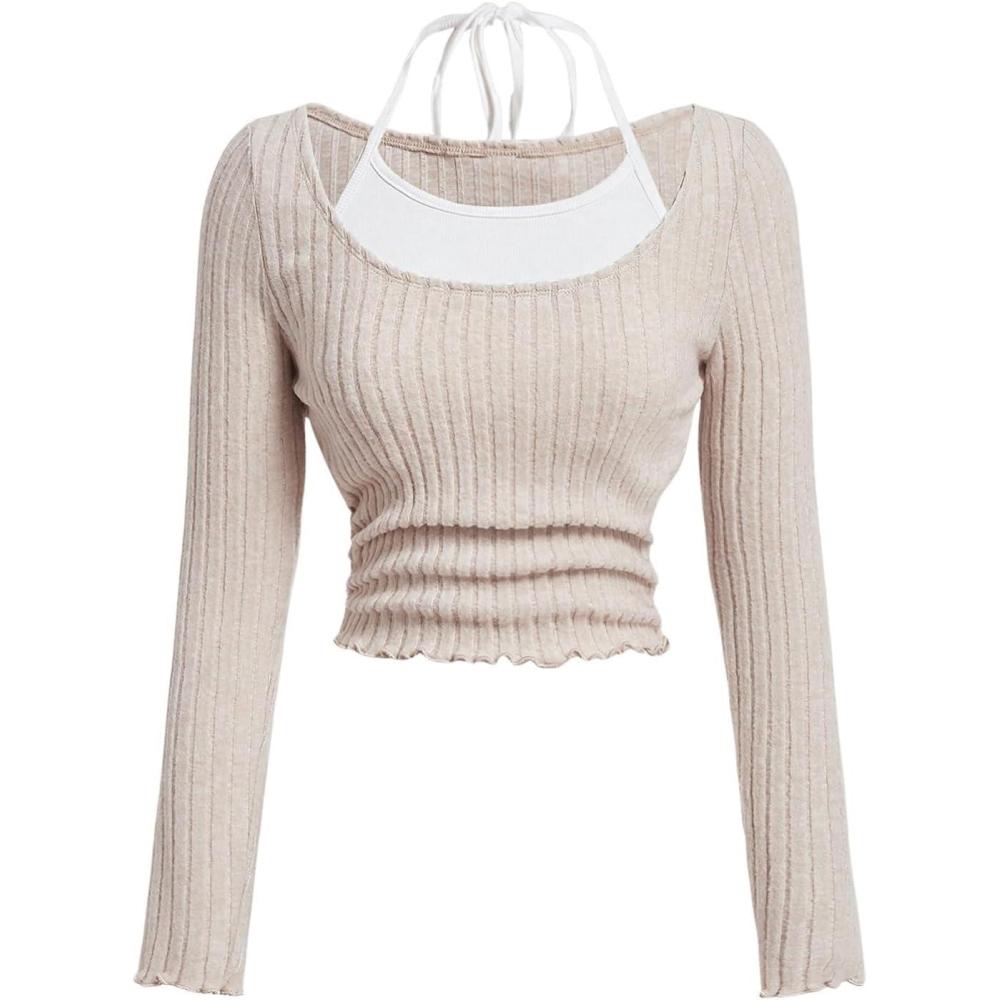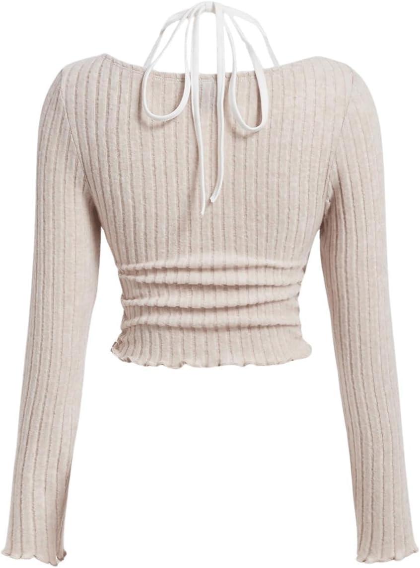 SOLY HUX Girl’s Cute Long Sleeve Crop Tops Preppy T Shirts Casual Halter Tops Cute Clothes for Girls Size 8-12(Apricot and White)