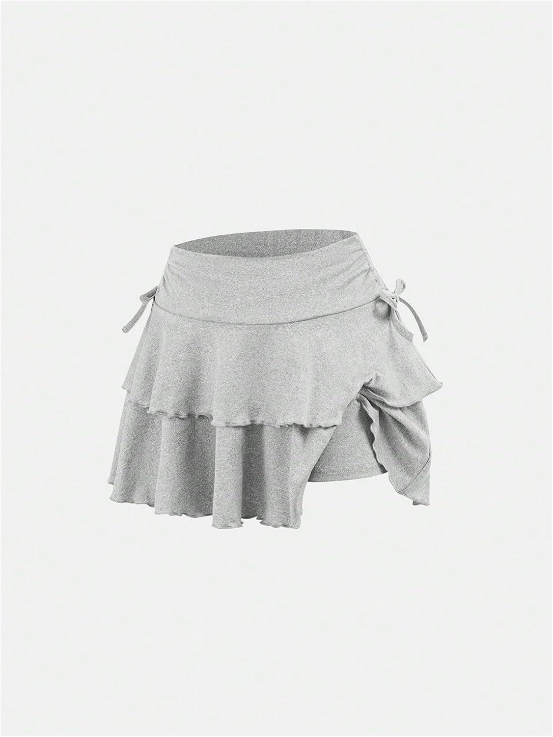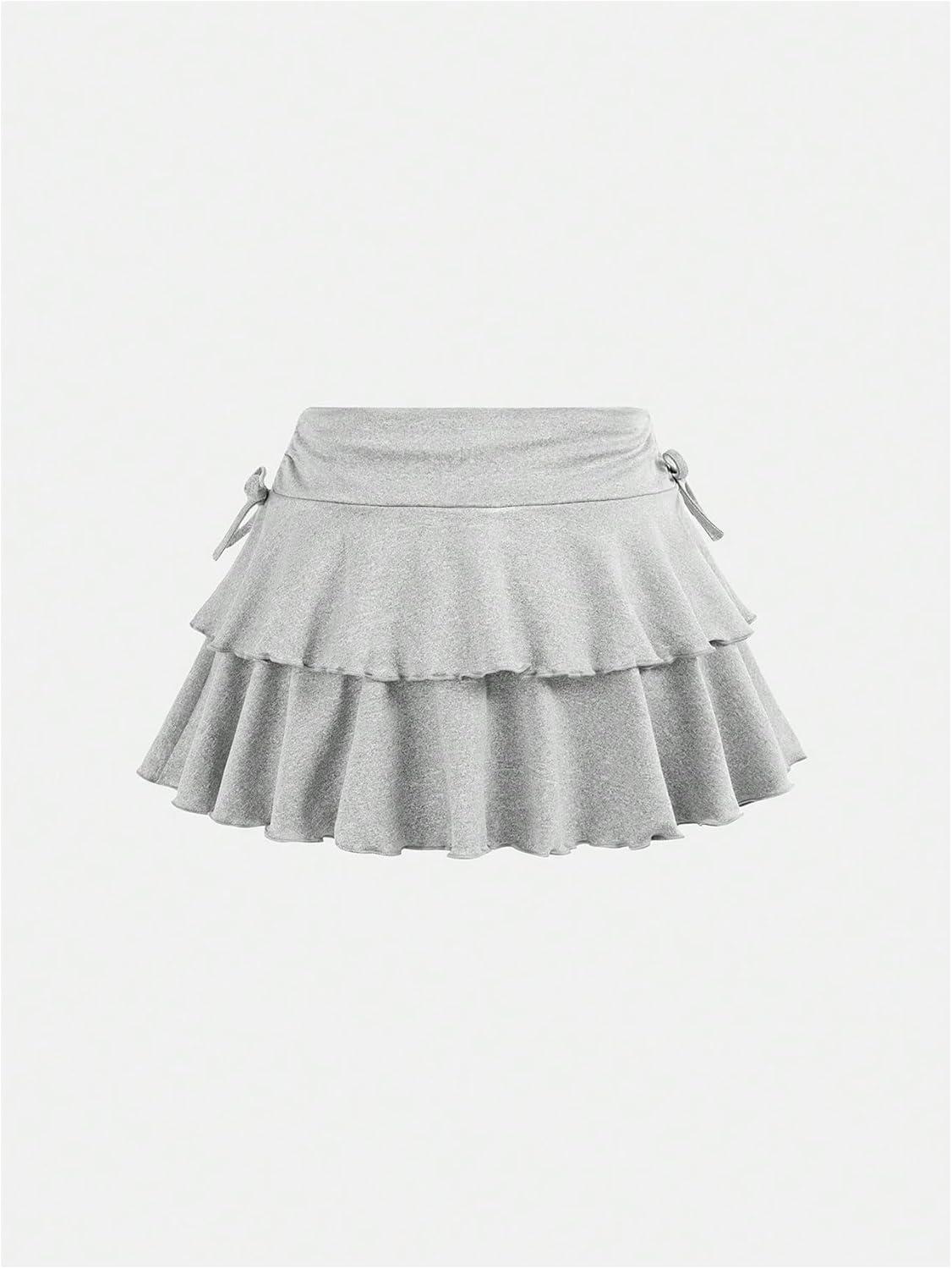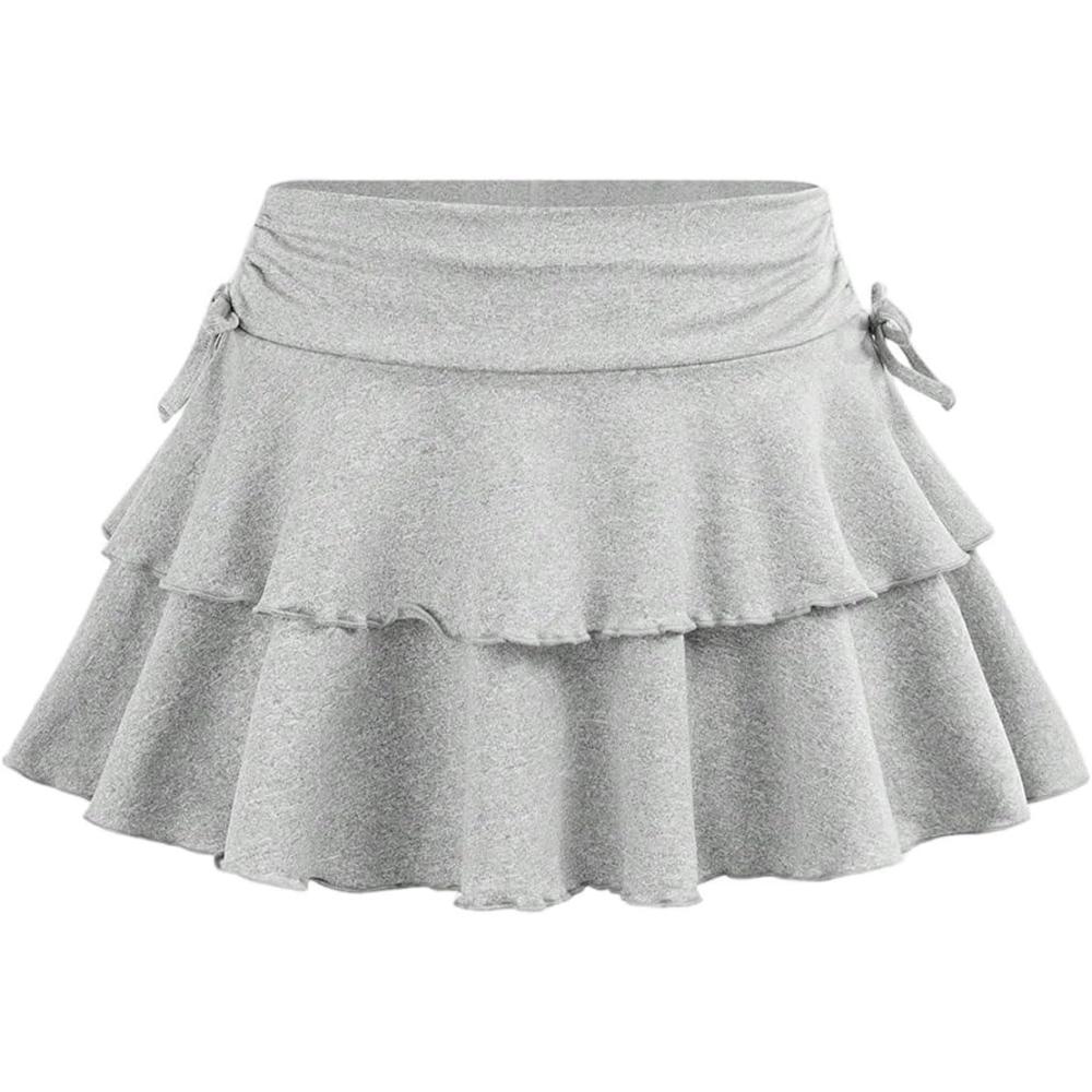 SOLY HUX Girl’s Cute Mini Skirts High Waisted Ruffle Layered Skirts Swing Flowy Skater Tennis Skirt(Light Grey)