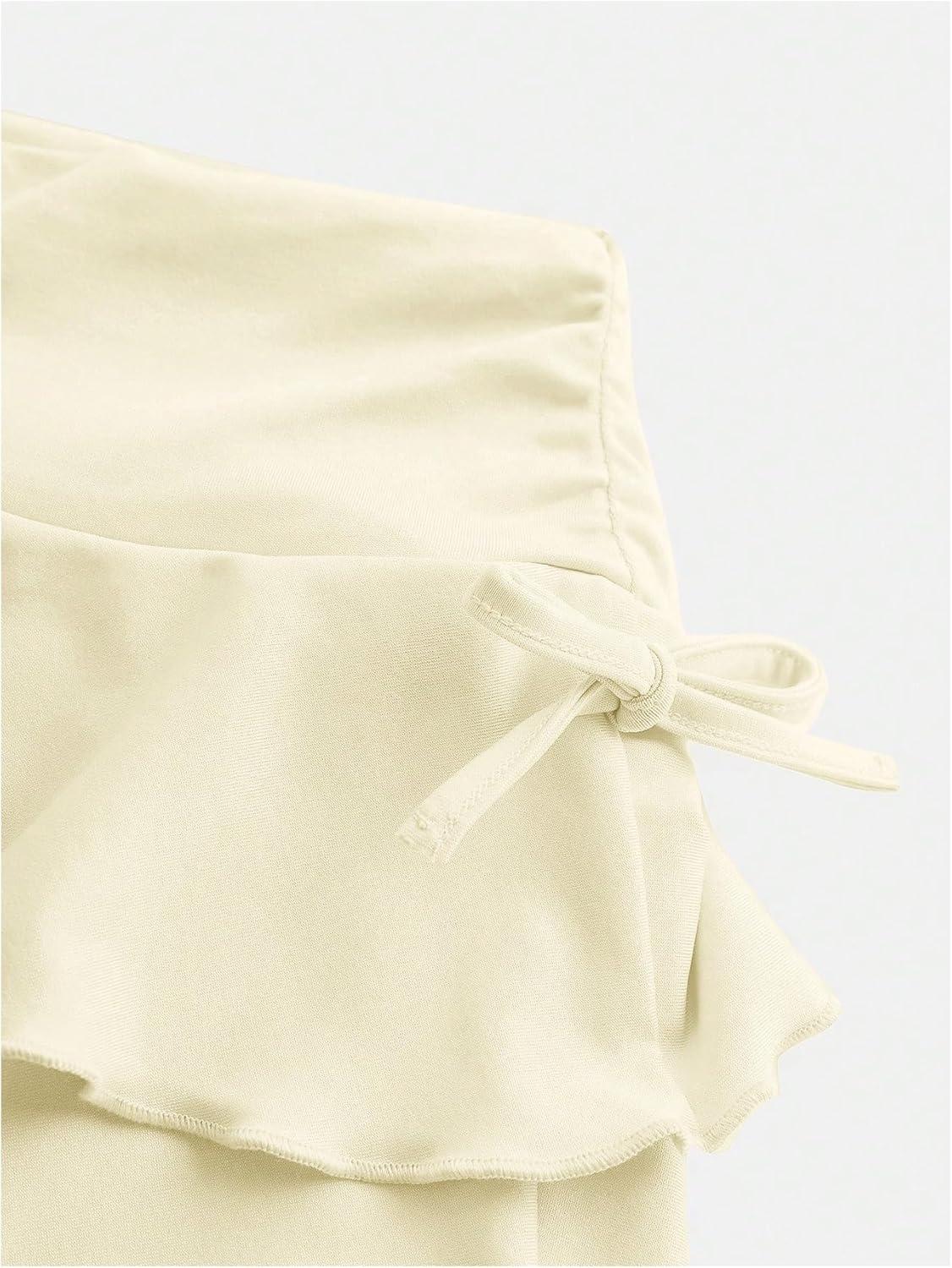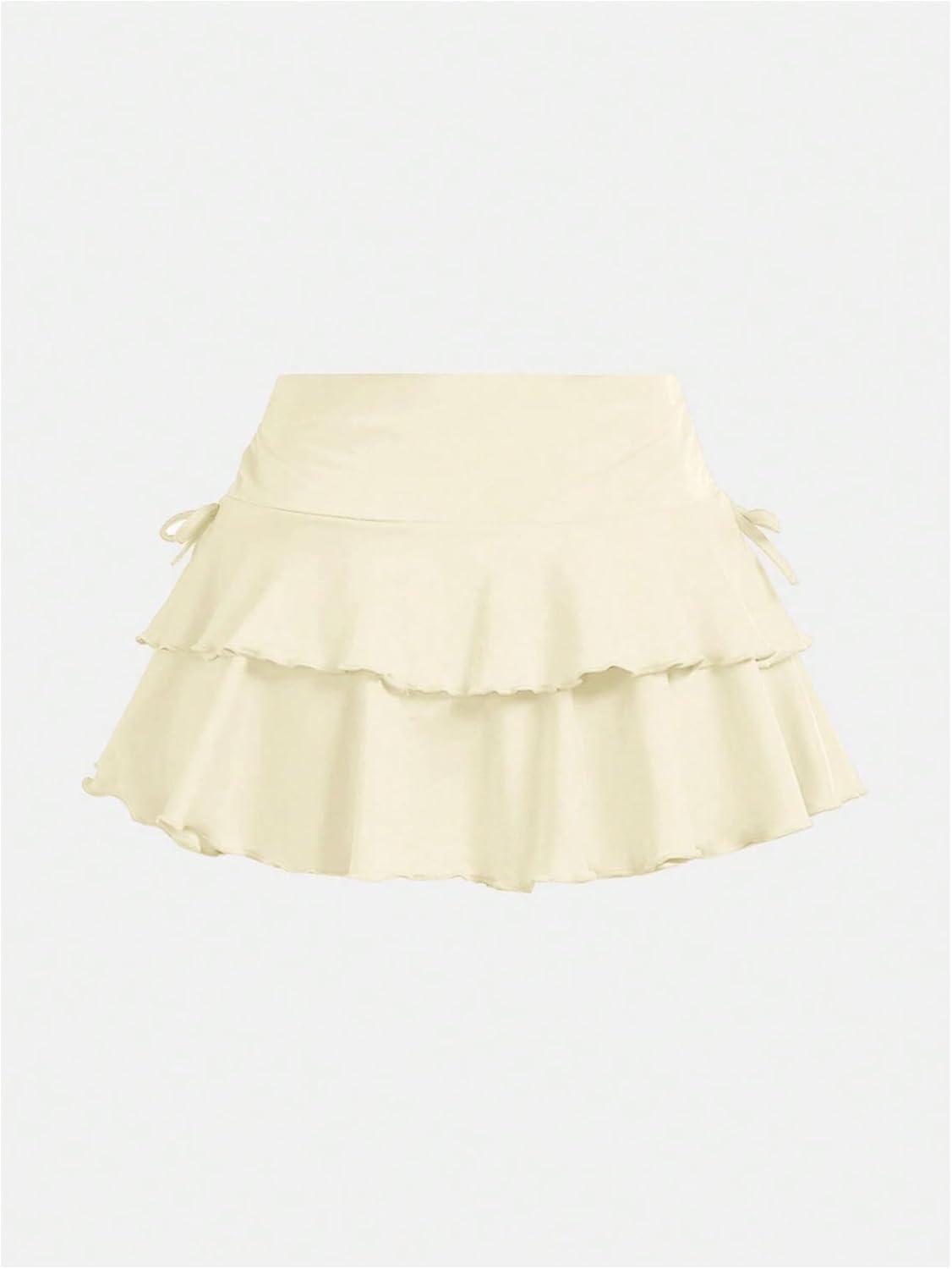 SOLY HUX Girl’s Cute Mini Skirts High Waisted Ruffle Layered Skirts Swing Flowy Skater Tennis Skirt(Plain Beige)