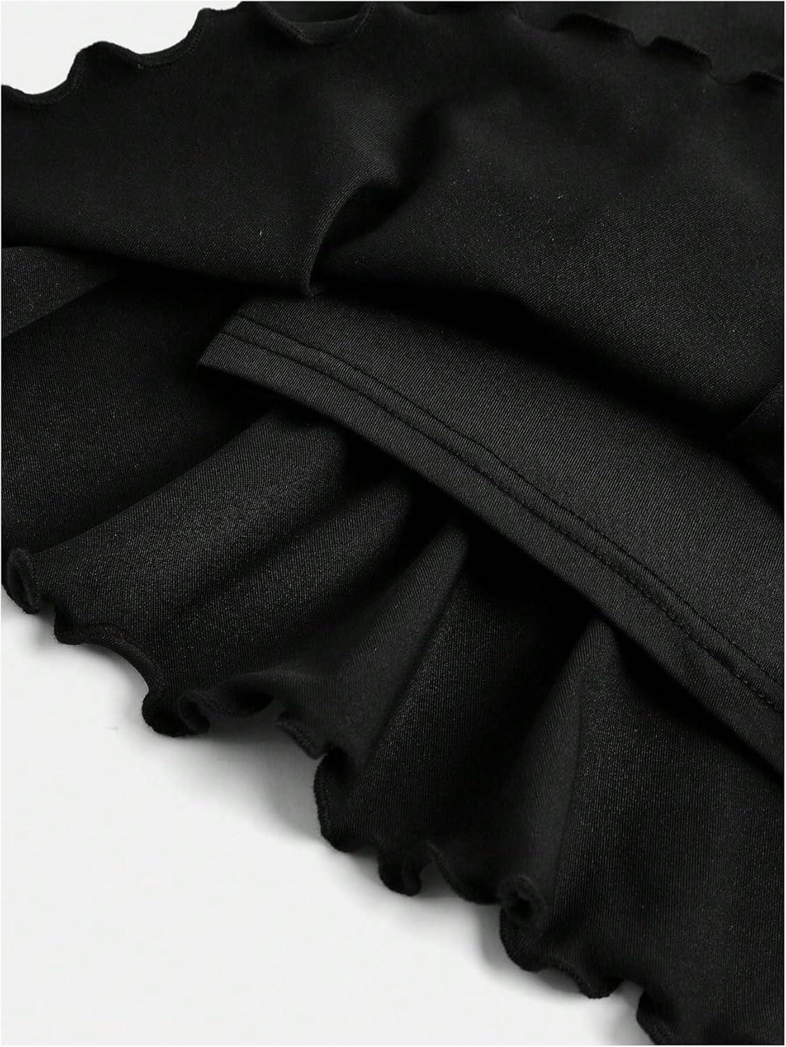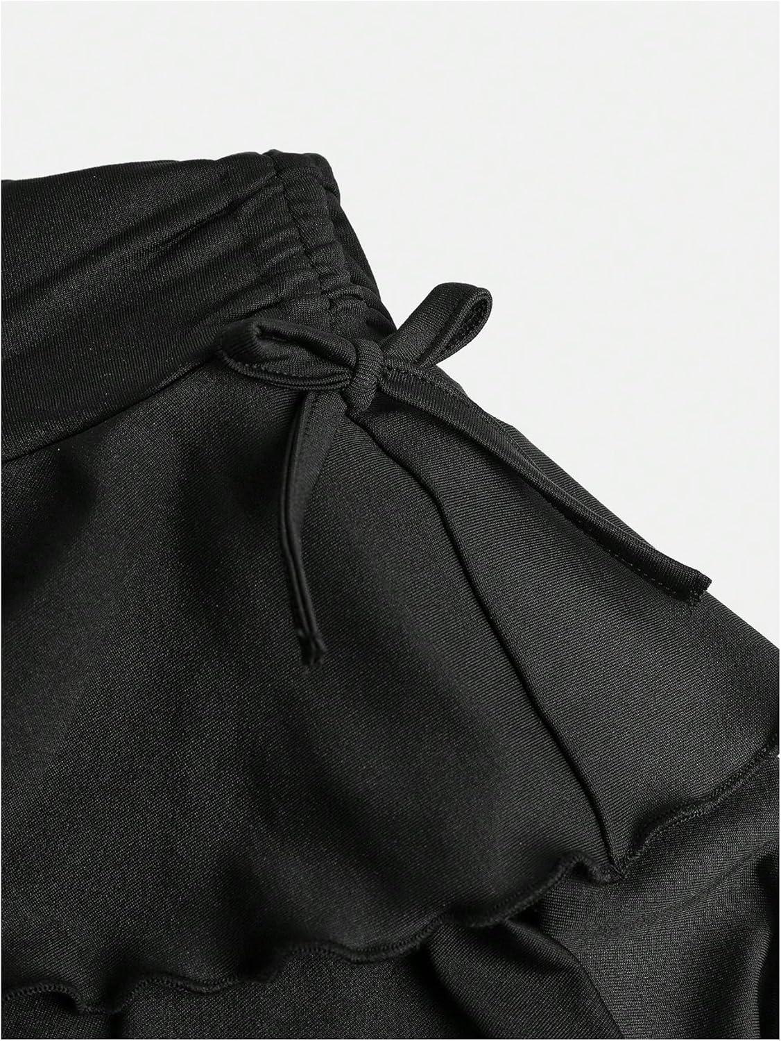 SOLY HUX Girl’s Cute Mini Skirts High Waisted Ruffle Layered Skirts Swing Flowy Skater Tennis Skirt(Plain Black)