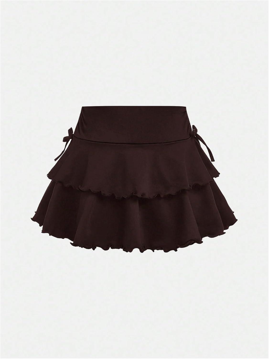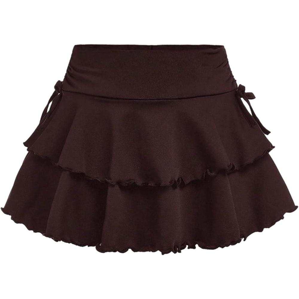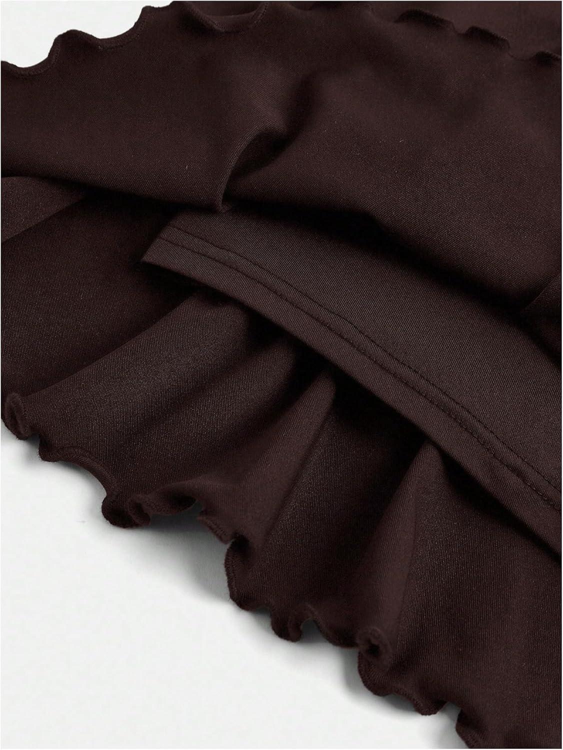 SOLY HUX Girl’s Cute Mini Skirts High Waisted Ruffle Layered Skirts Swing Flowy Skater Tennis Skirt(Plain Brown)