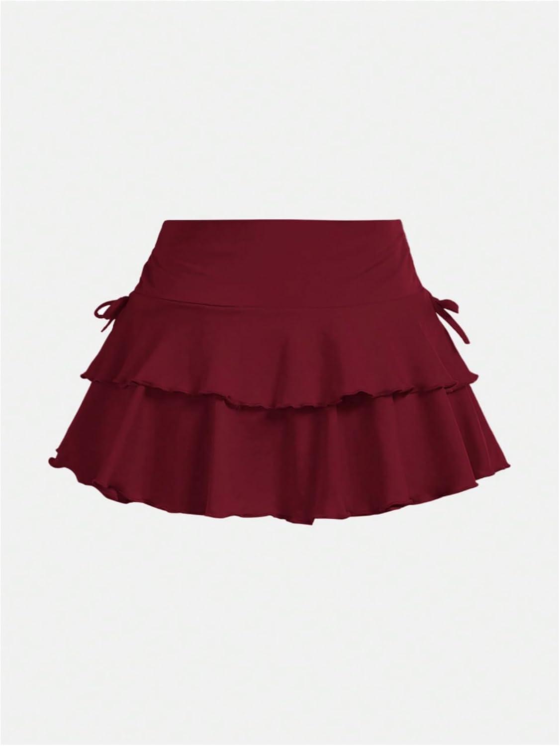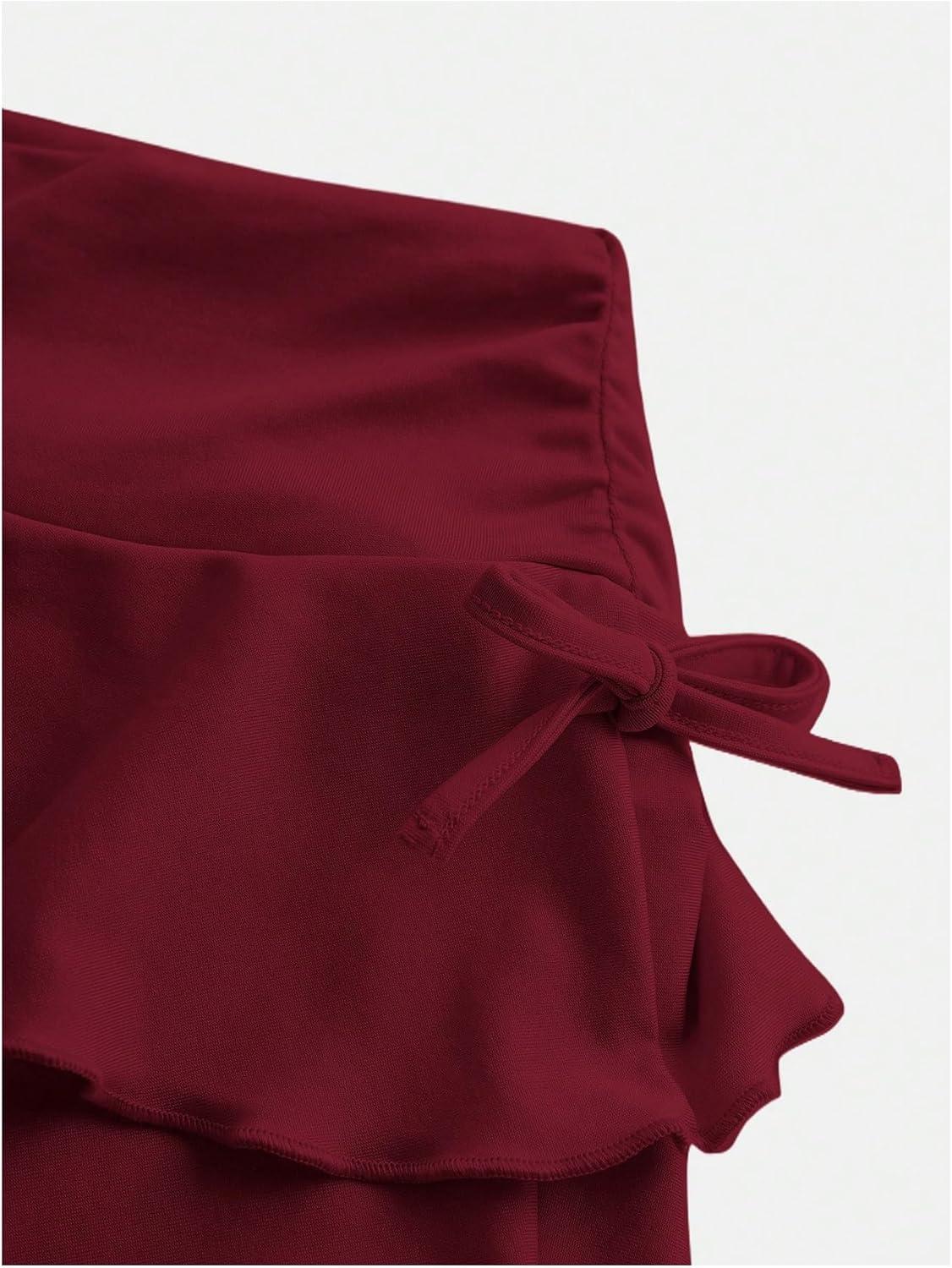SOLY HUX Girl’s Cute Mini Skirts High Waisted Ruffle Layered Skirts Swing Flowy Skater Tennis Skirt(Plain Burgundy)