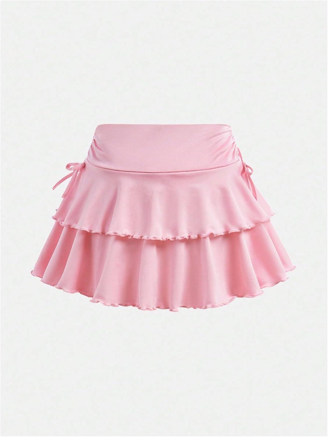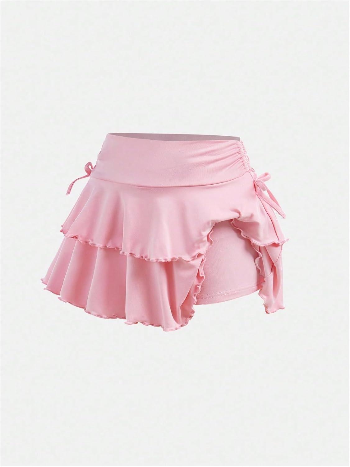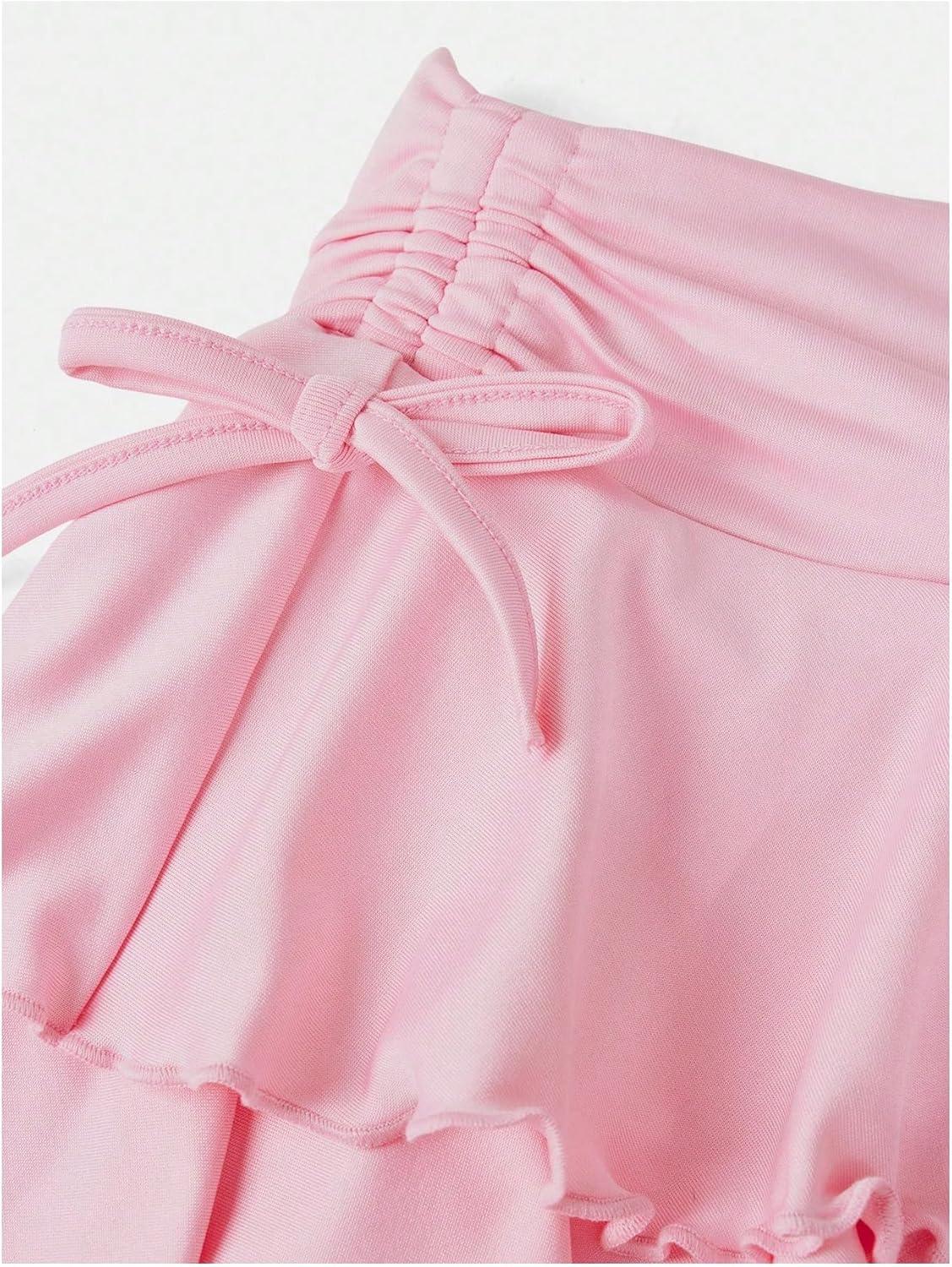 SOLY HUX Girl’s Cute Mini Skirts High Waisted Ruffle Layered Skirts Swing Flowy Skater Tennis Skirt(Plain Pink)