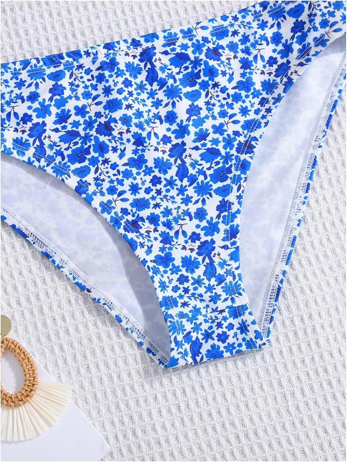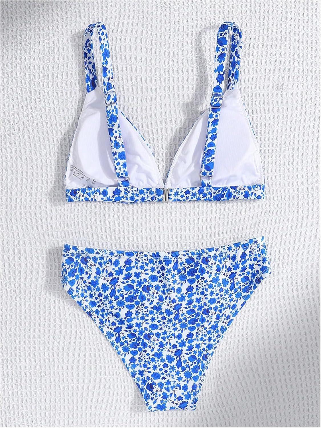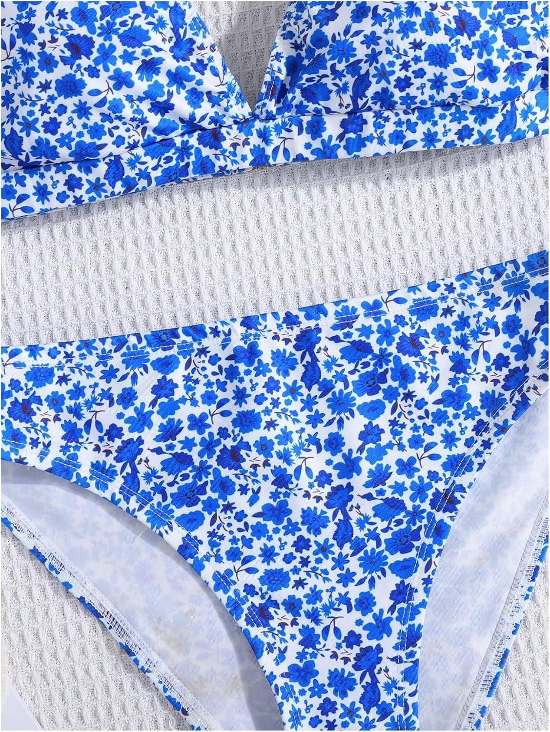SOLY HUX Girl’s Floral Print Bikini Set V Neck Spaghetti Strap Bathing Suit Two Piece Swimsuit(Blue Floral)