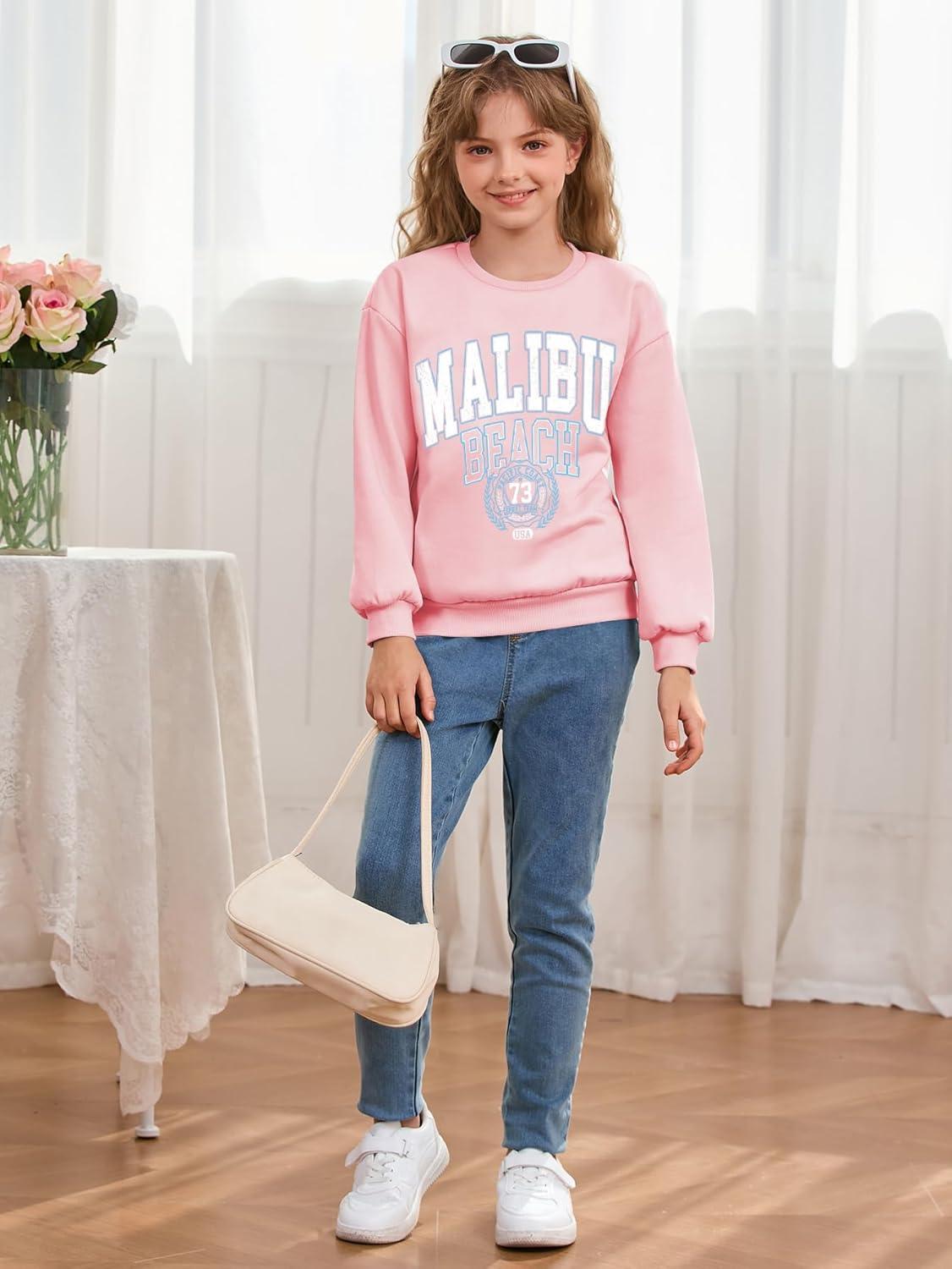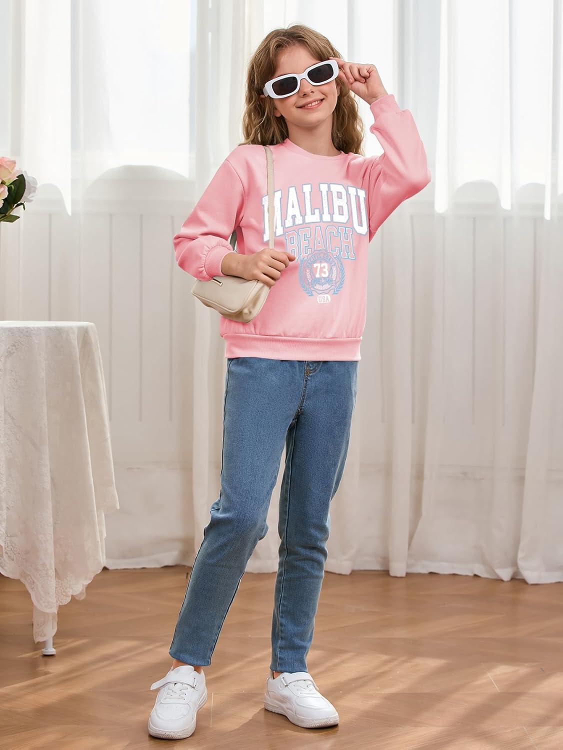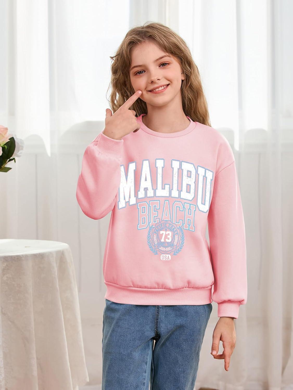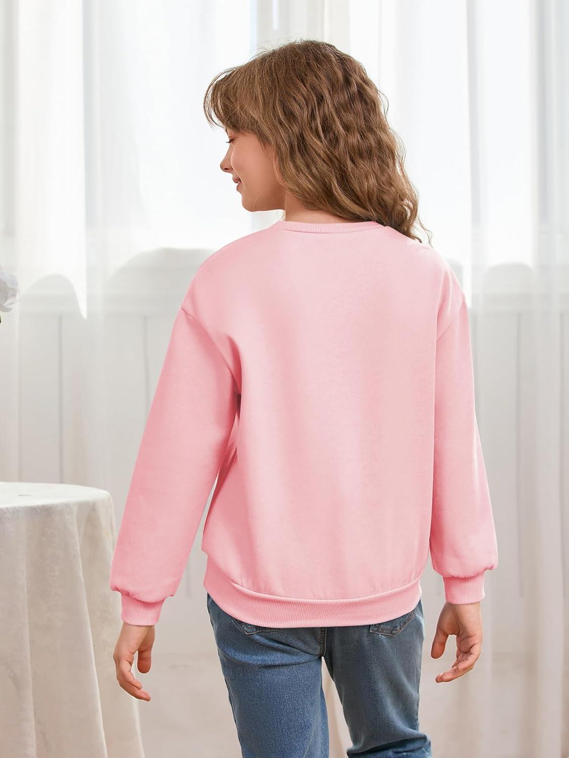 SOLY HUX Girl’s Graphic Letter Print Sweatshirt Crewneck Long Sleeve Cute Drop Shoulder Pullover Tops(Pink Letter)