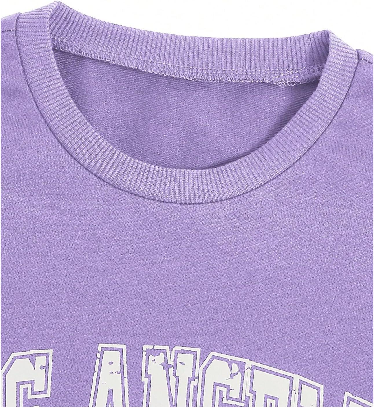 SOLY HUX Girl’s Graphic Sweatshirt Color Block Letter Print Long Sleeve Crewneck Casual Pullover Tops(Purple Letter)
