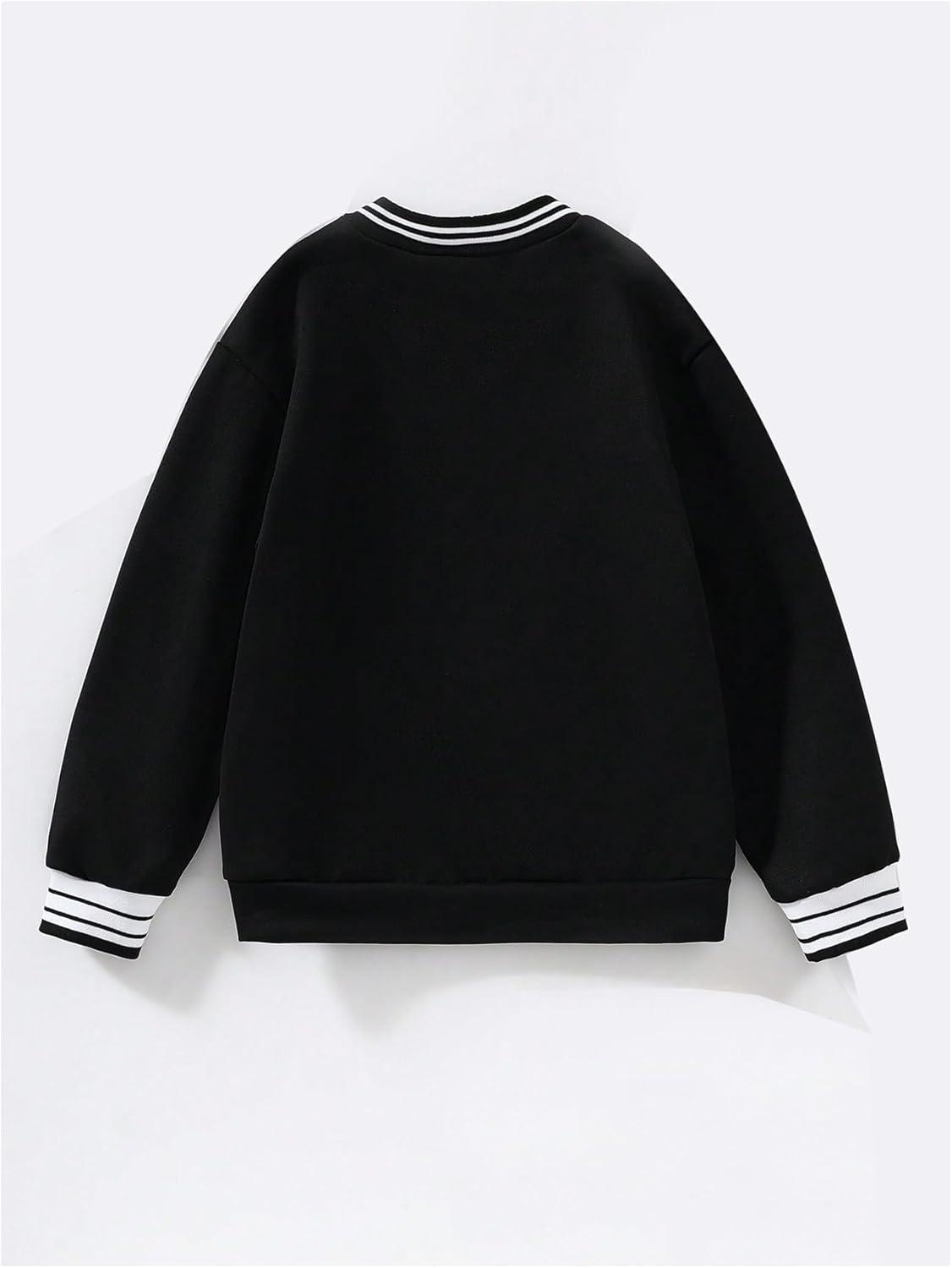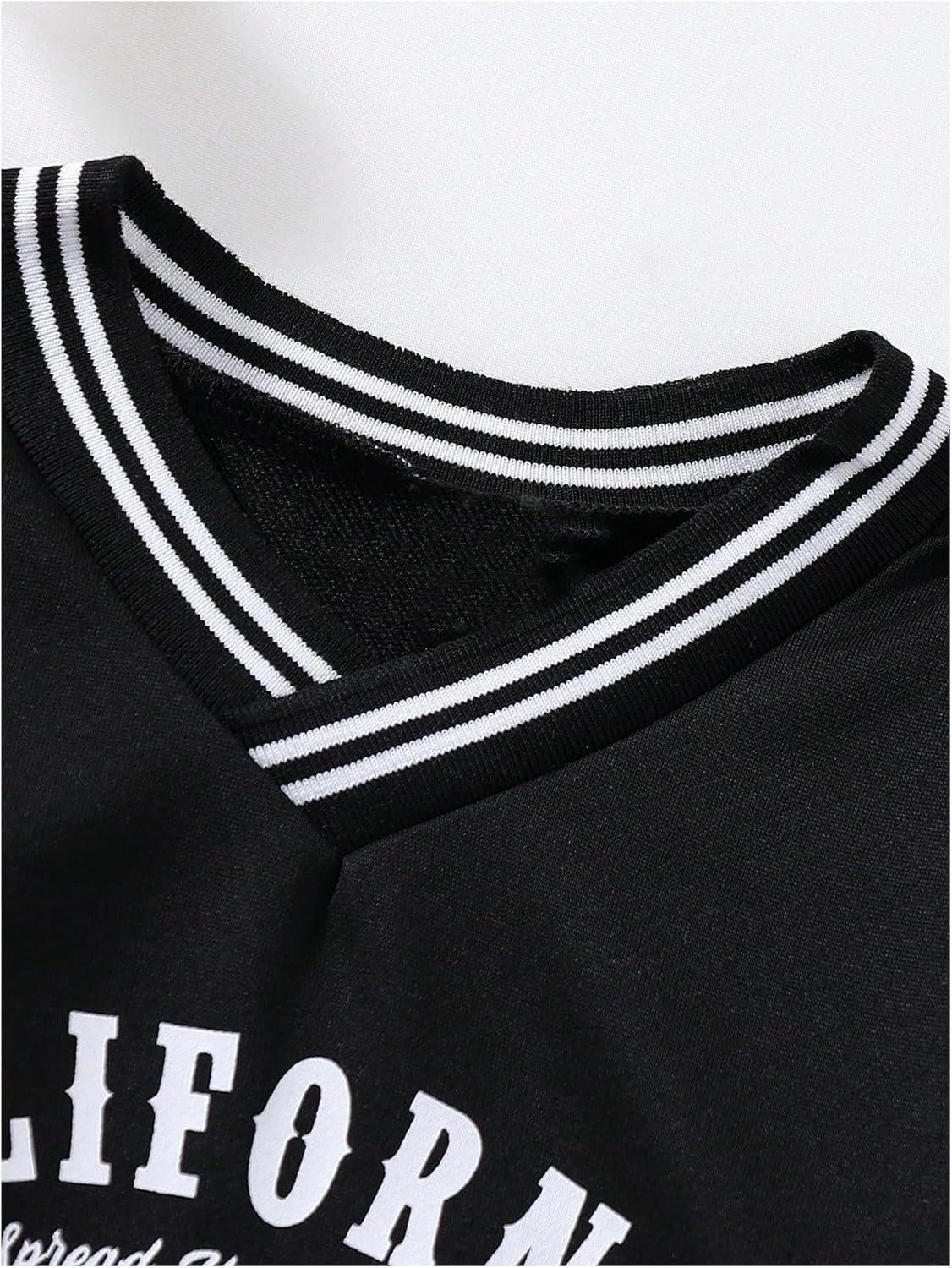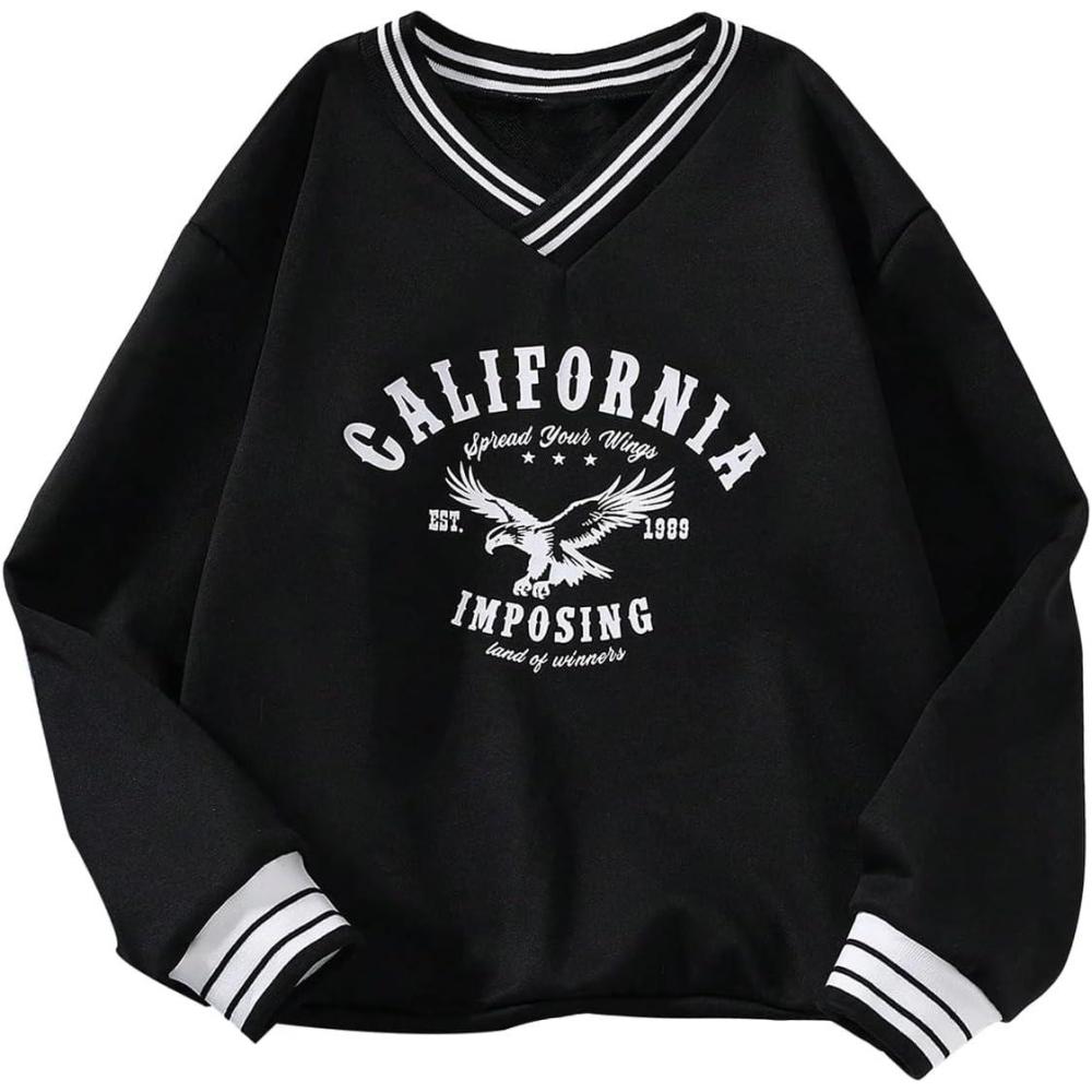 SOLY HUX Girl’s Graphic Sweatshirt Letter Print V Neck Drop Shoulder Long Sleeve Preppy Casual Pullover Tops(Black Letter)