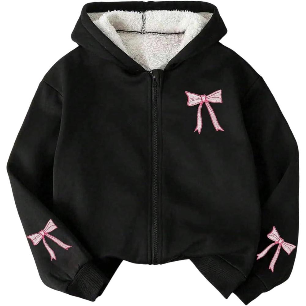 SOLY HUX Girl’s Graphic Zip Up Hoodie Sweatshirt Cute Bow Long Sleeve Hooded Casual Jacket(Black Bow Embroidery)
