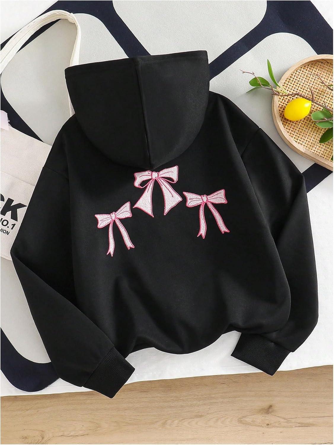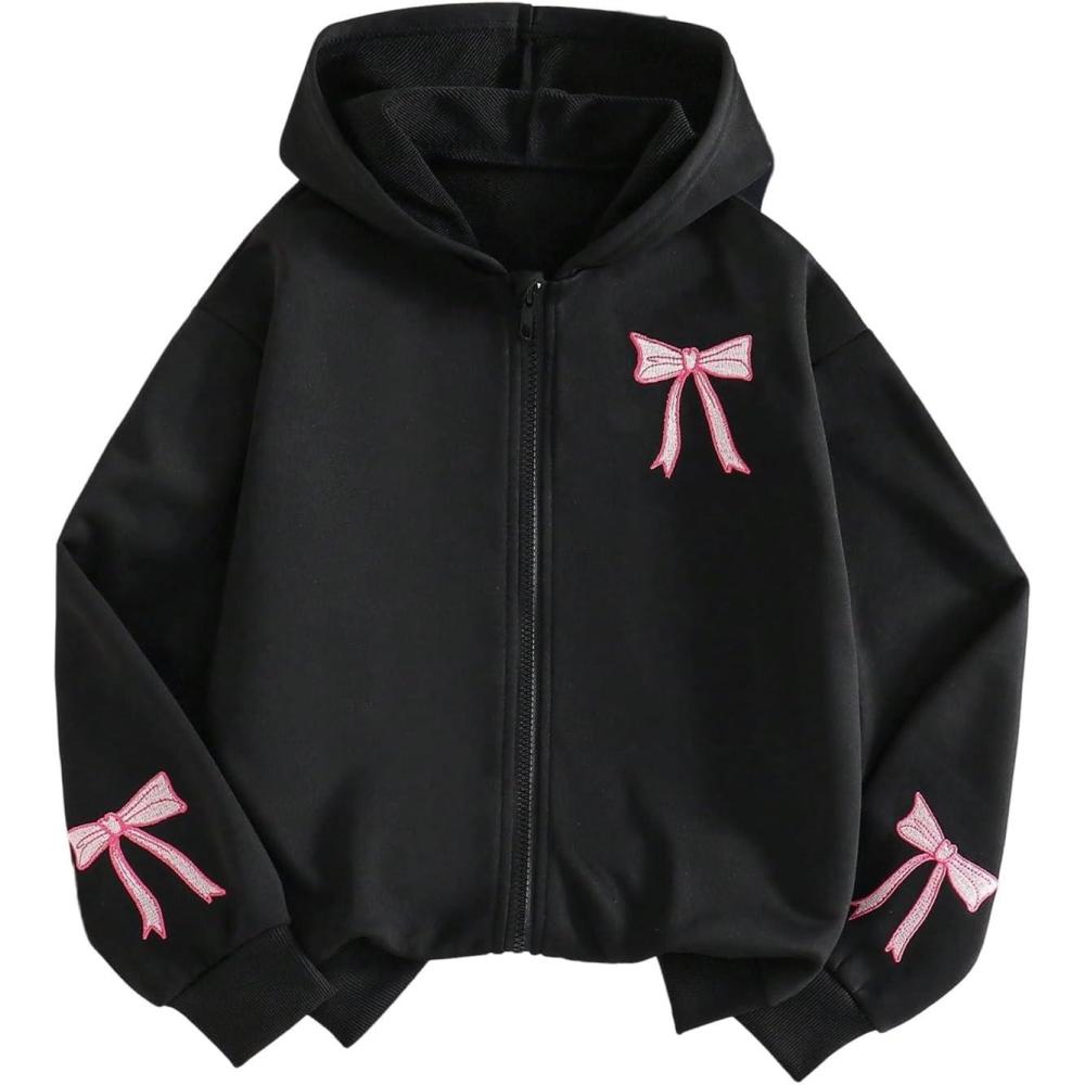 SOLY HUX Girl’s Graphic Zip Up Hoodie Sweatshirt Cute Bow Long Sleeve Hooded Casual Jacket(Black Bow)