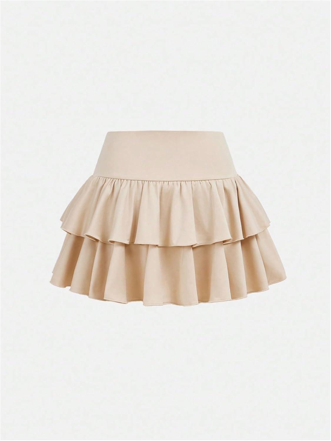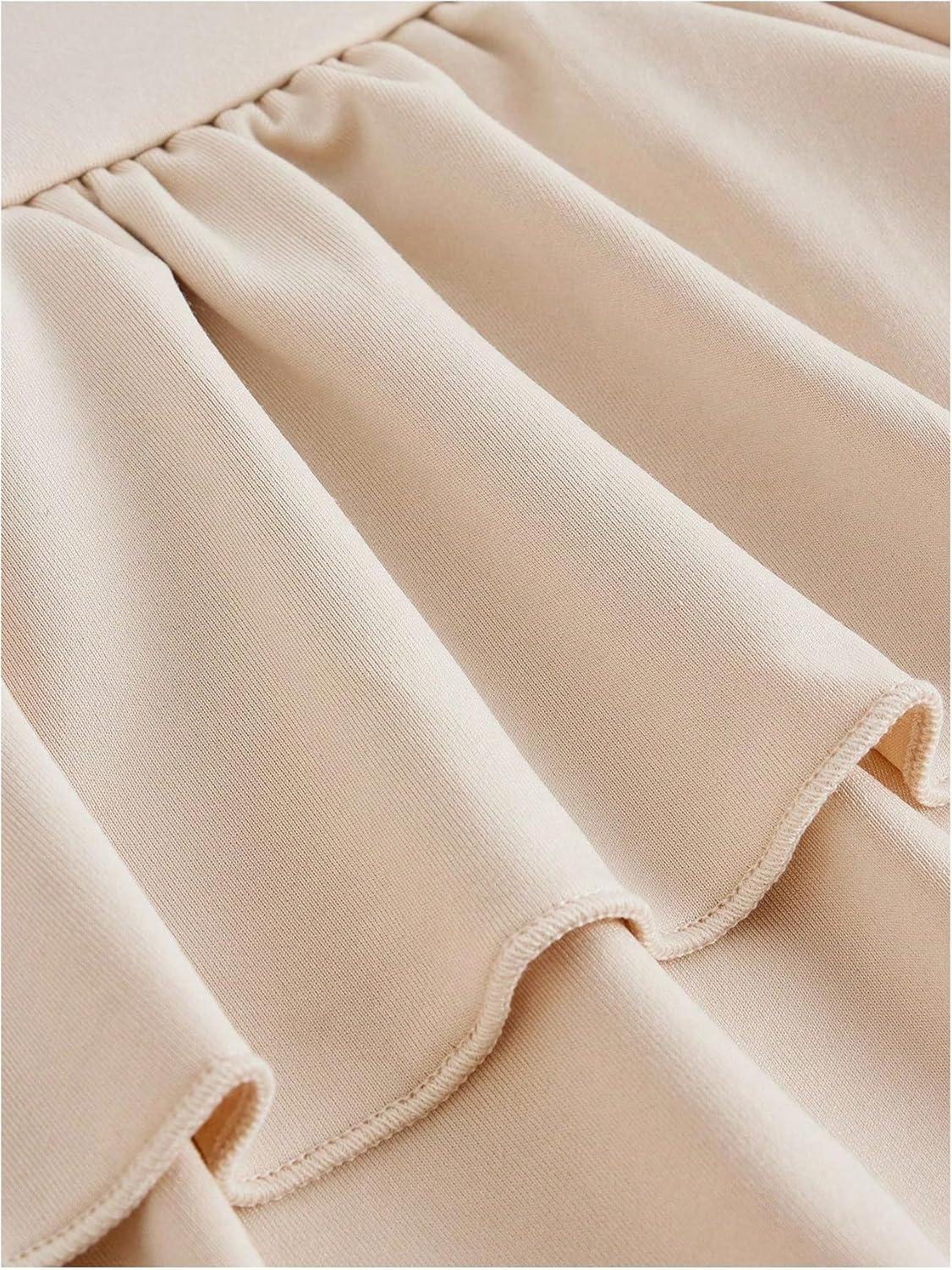 SOLY HUX Girl’s High Waisted Ruffle Short Tennis Skirts Skort Skater Golf Skirt with Shorts Underneath(Plain Apricot)