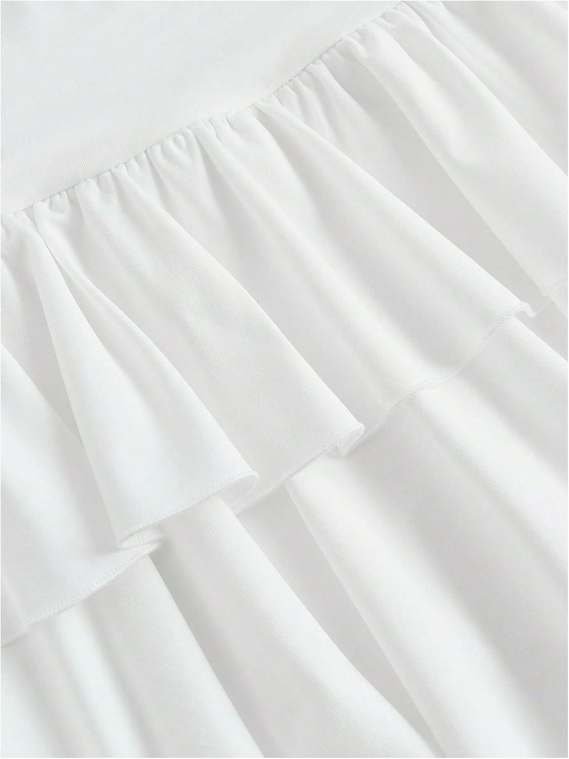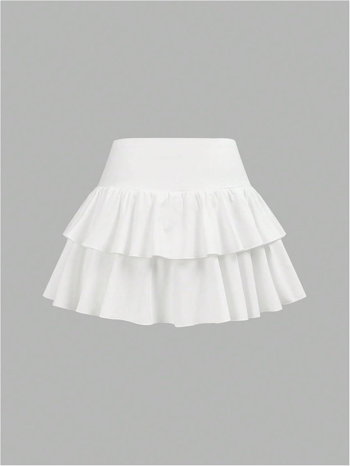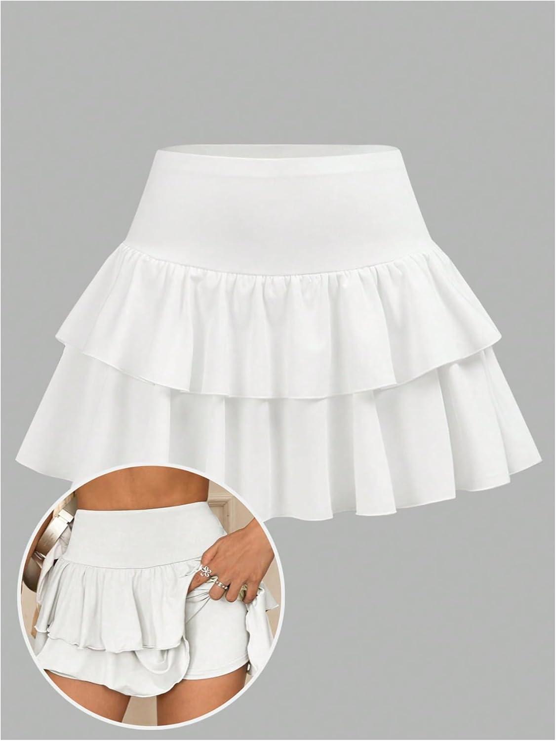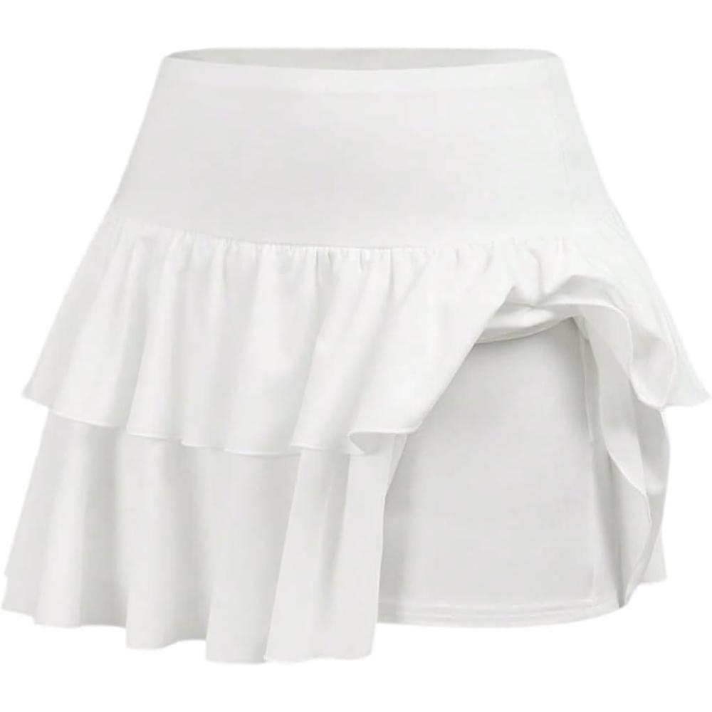 SOLY HUX Girl’s High Waisted Ruffle Short Tennis Skirts Skort Skater Golf Skirt with Shorts Underneath(Plain White)